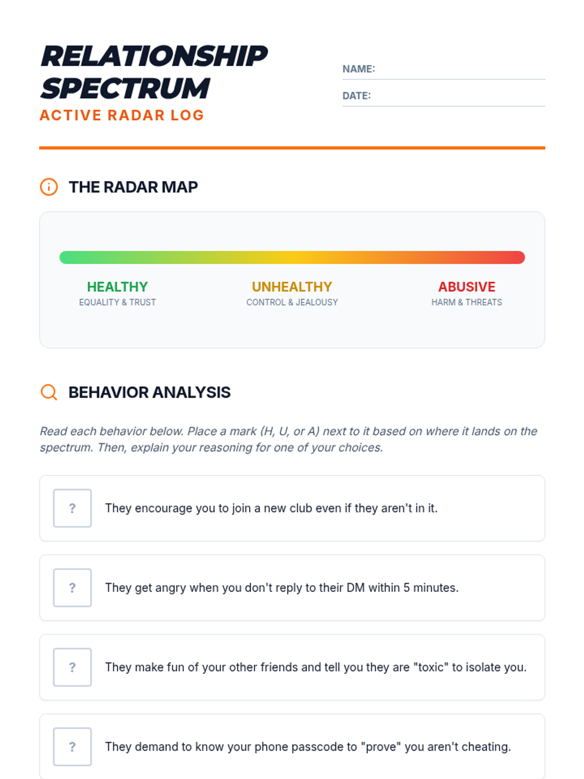 Relationship Spectrum Worksheet