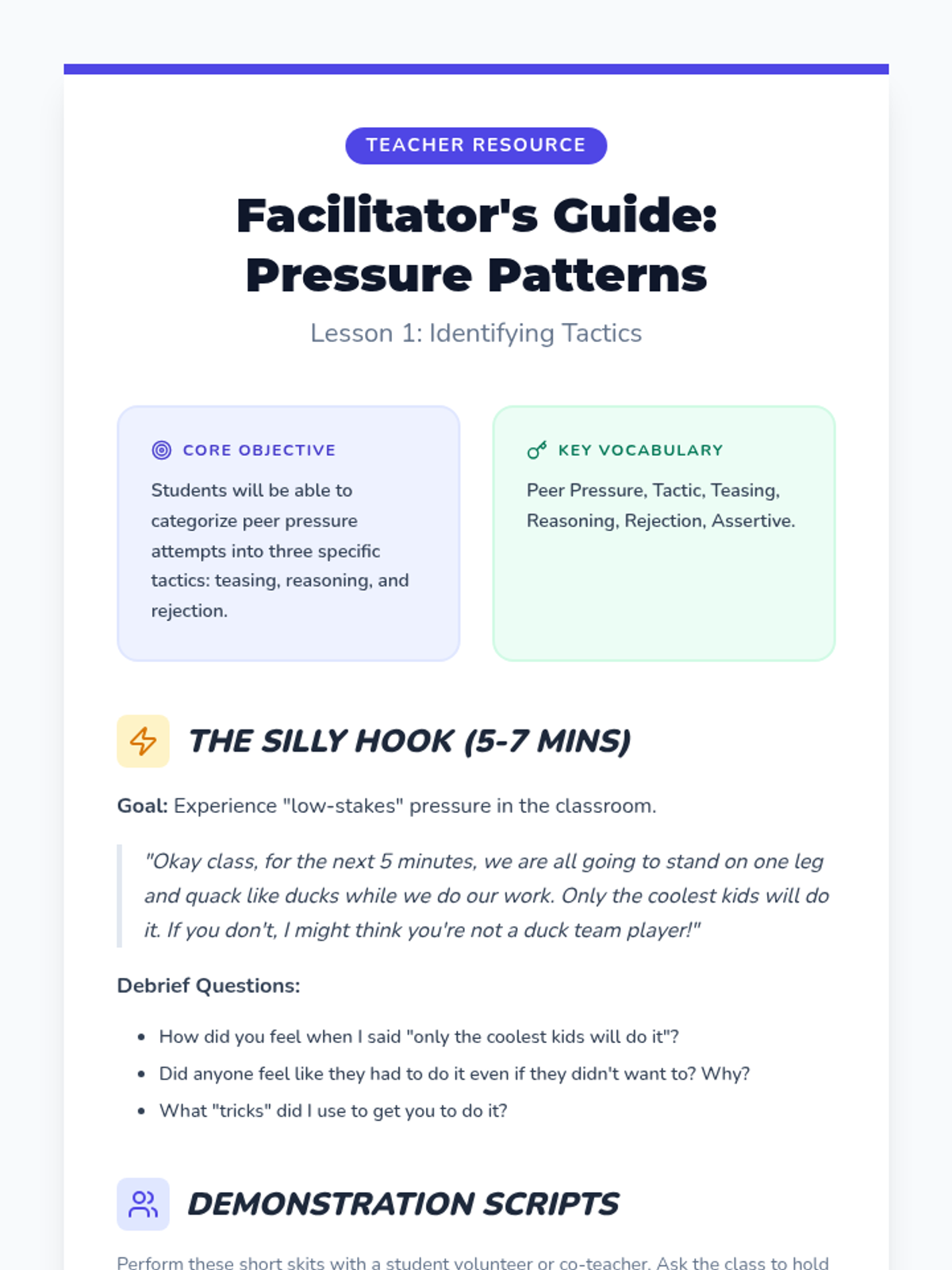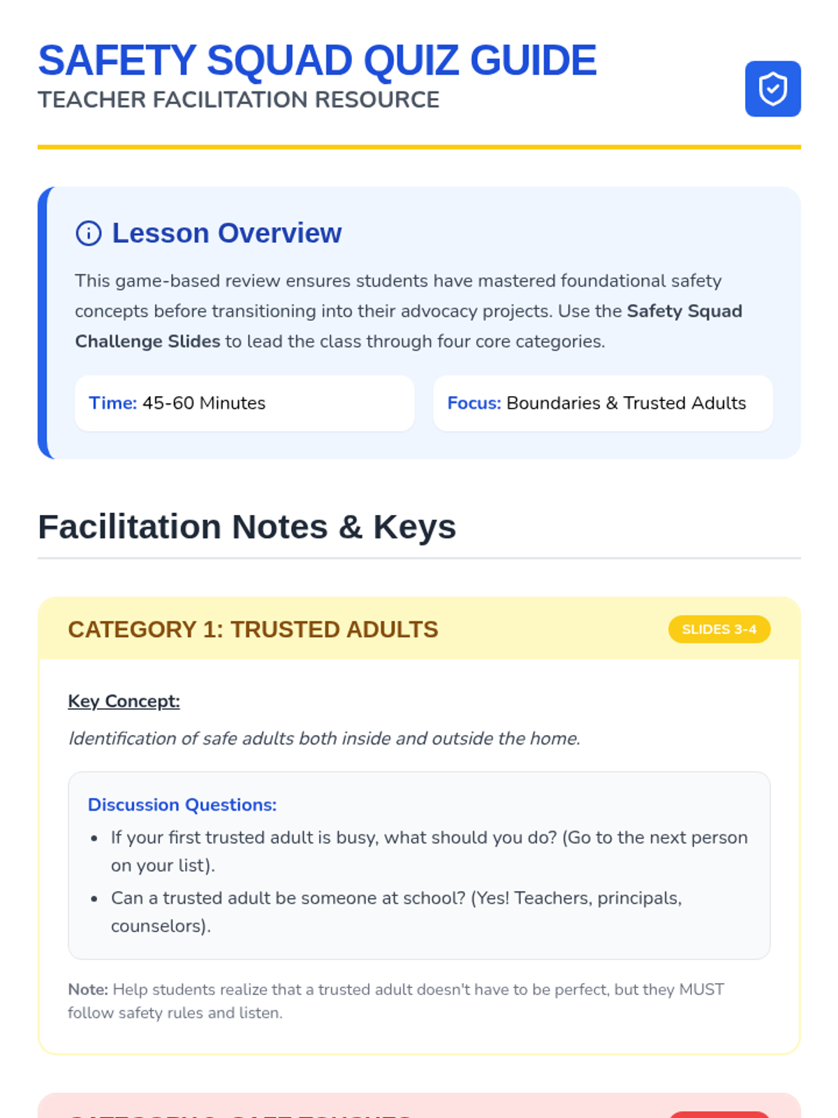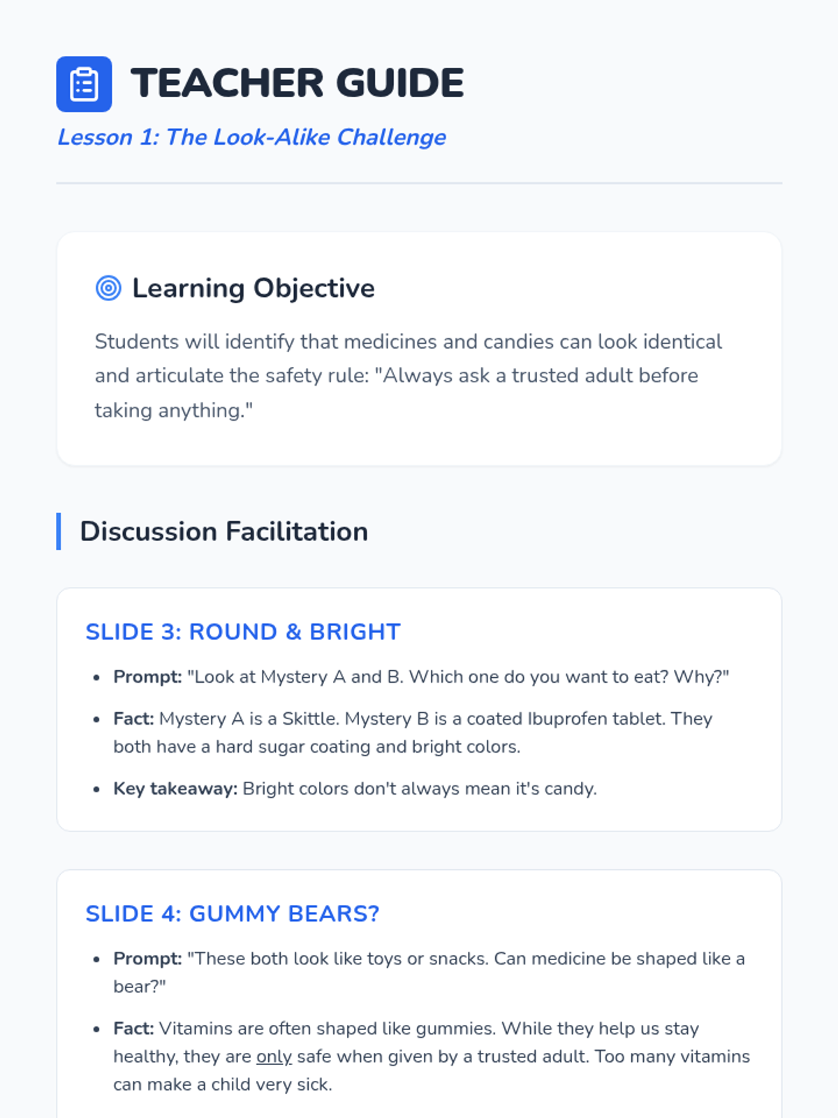 Tricky vs Safe Teacher Guide