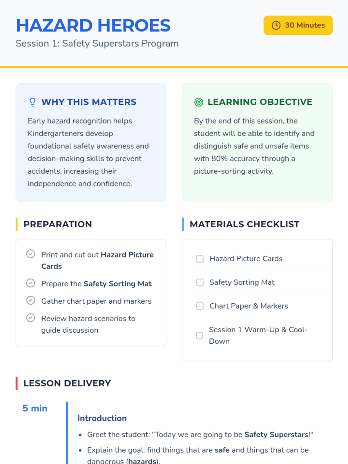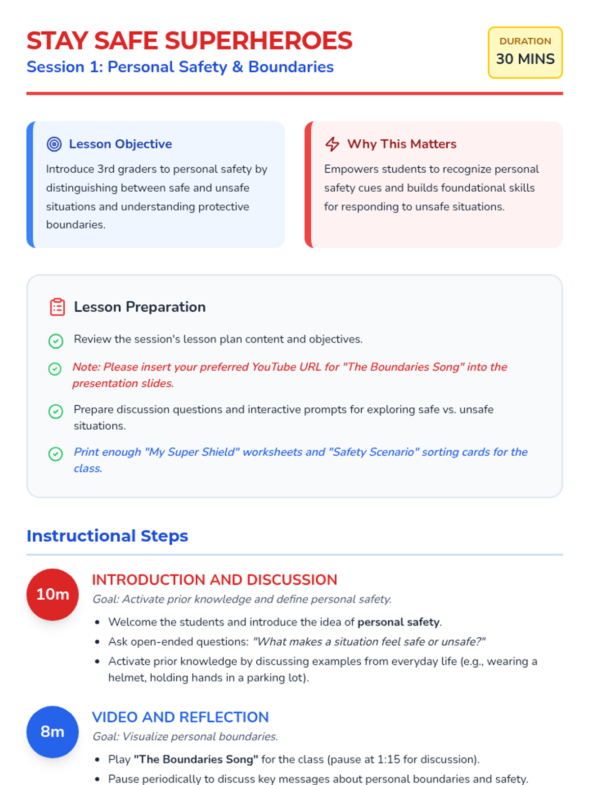 Safety Superheroes Session 1 Teacher Guide