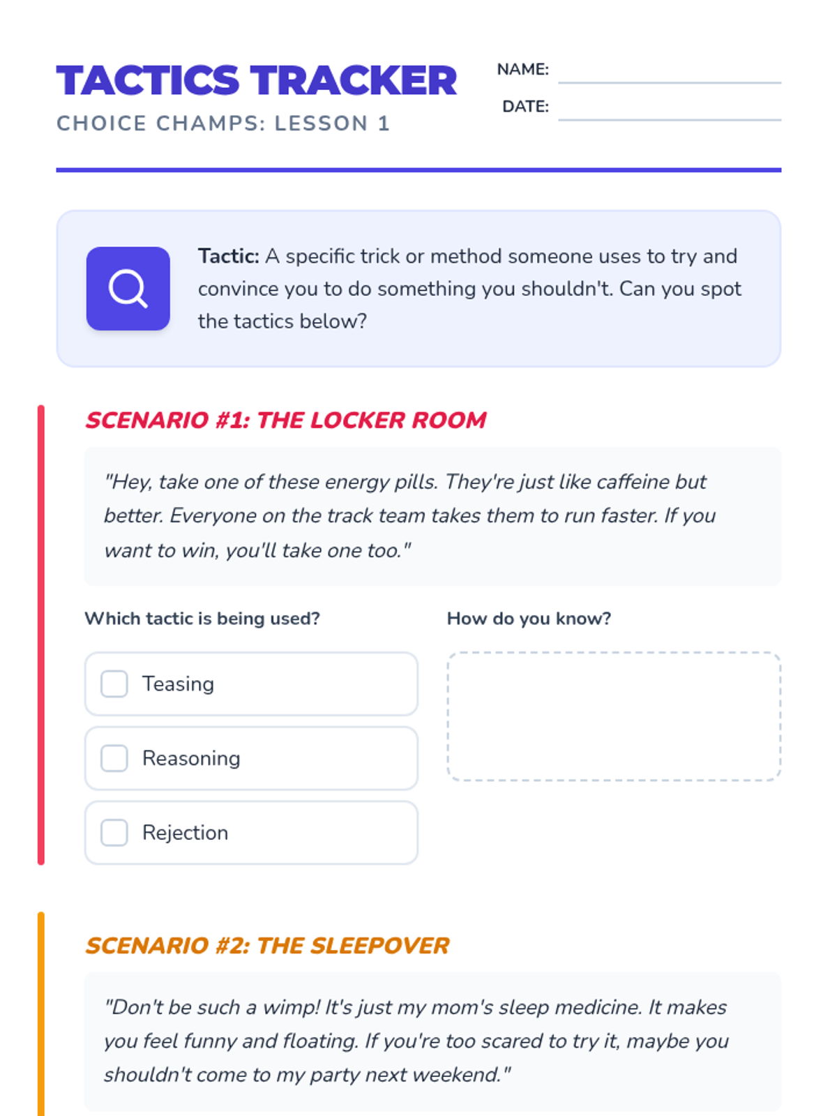 Tactics Tracker Worksheet