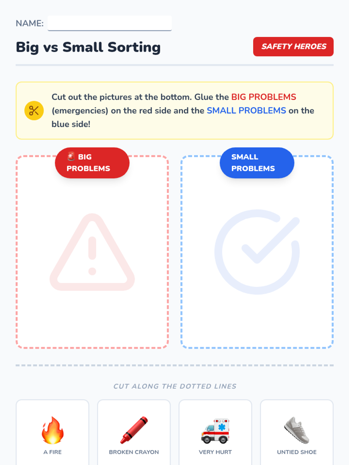 Tricky vs Safe Checklist Worksheet