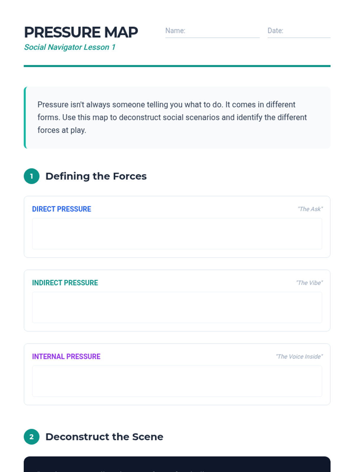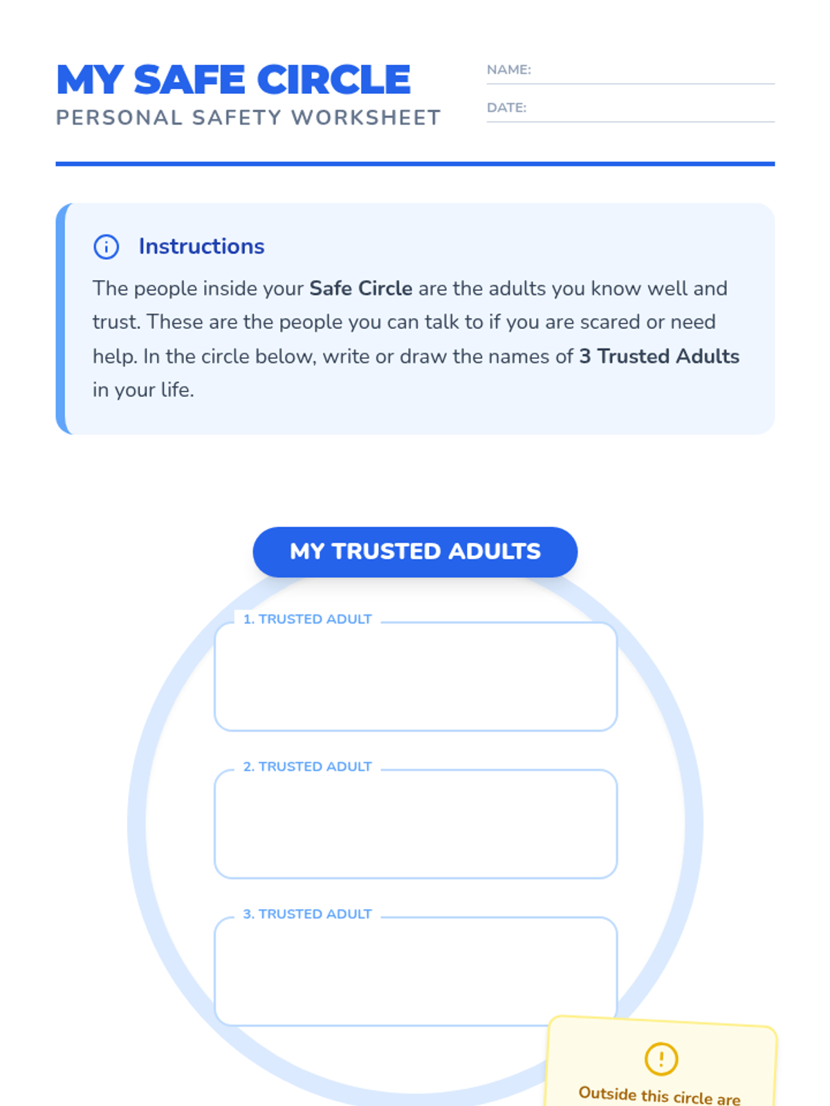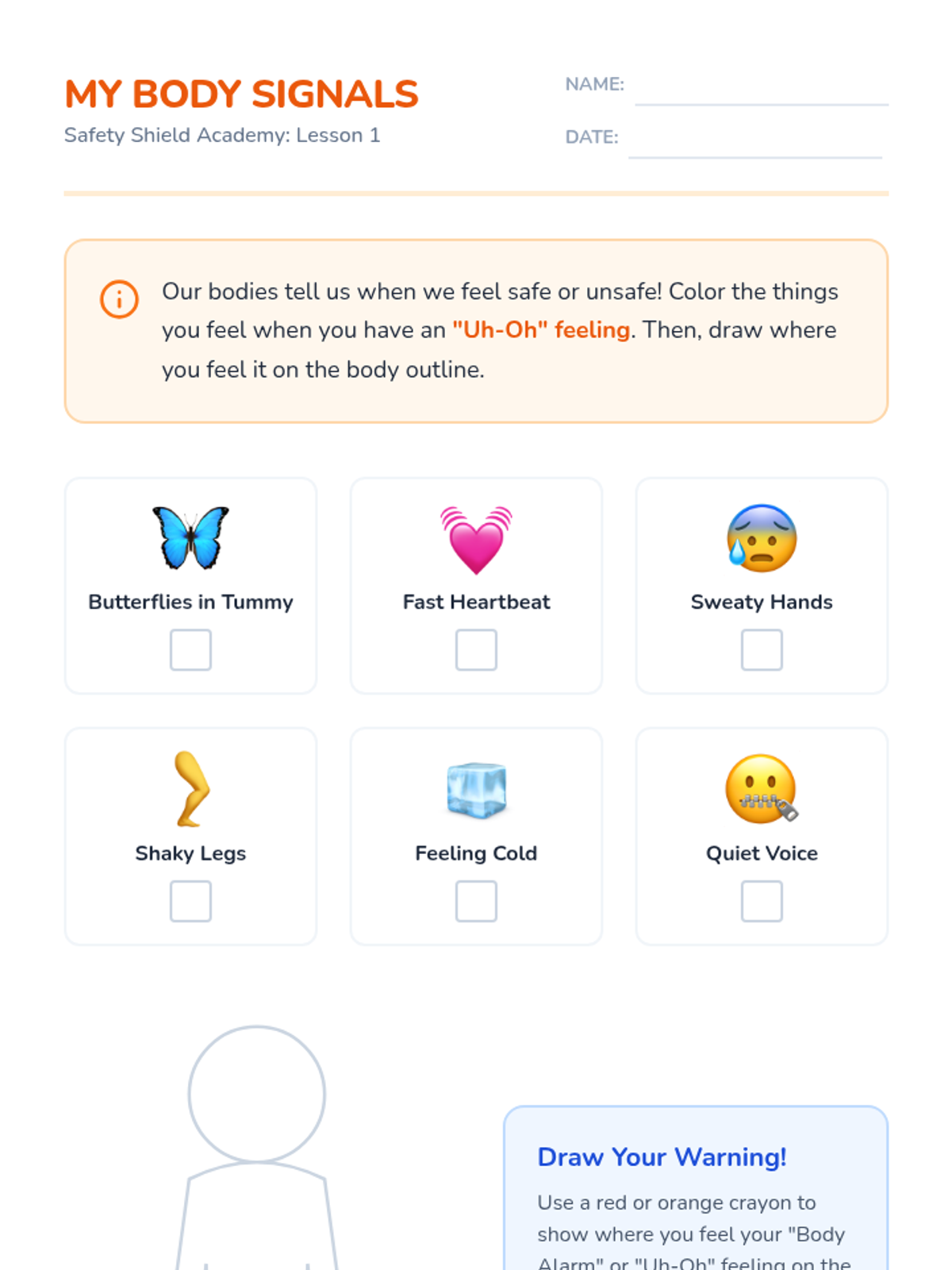 Recognizing Unsafe SituationsIdentifies physical and social cues that signal danger in various environments. Strengthens situational awareness and boundary-setting skills to help students navigate potential risks safely.