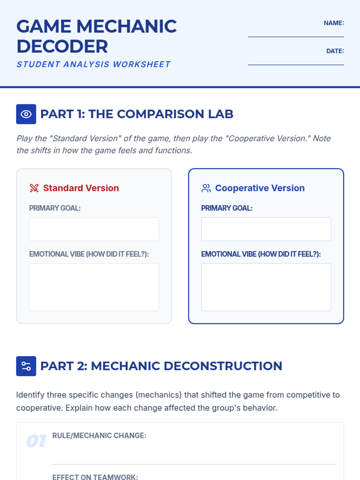 Game Mechanic Decoder Worksheet