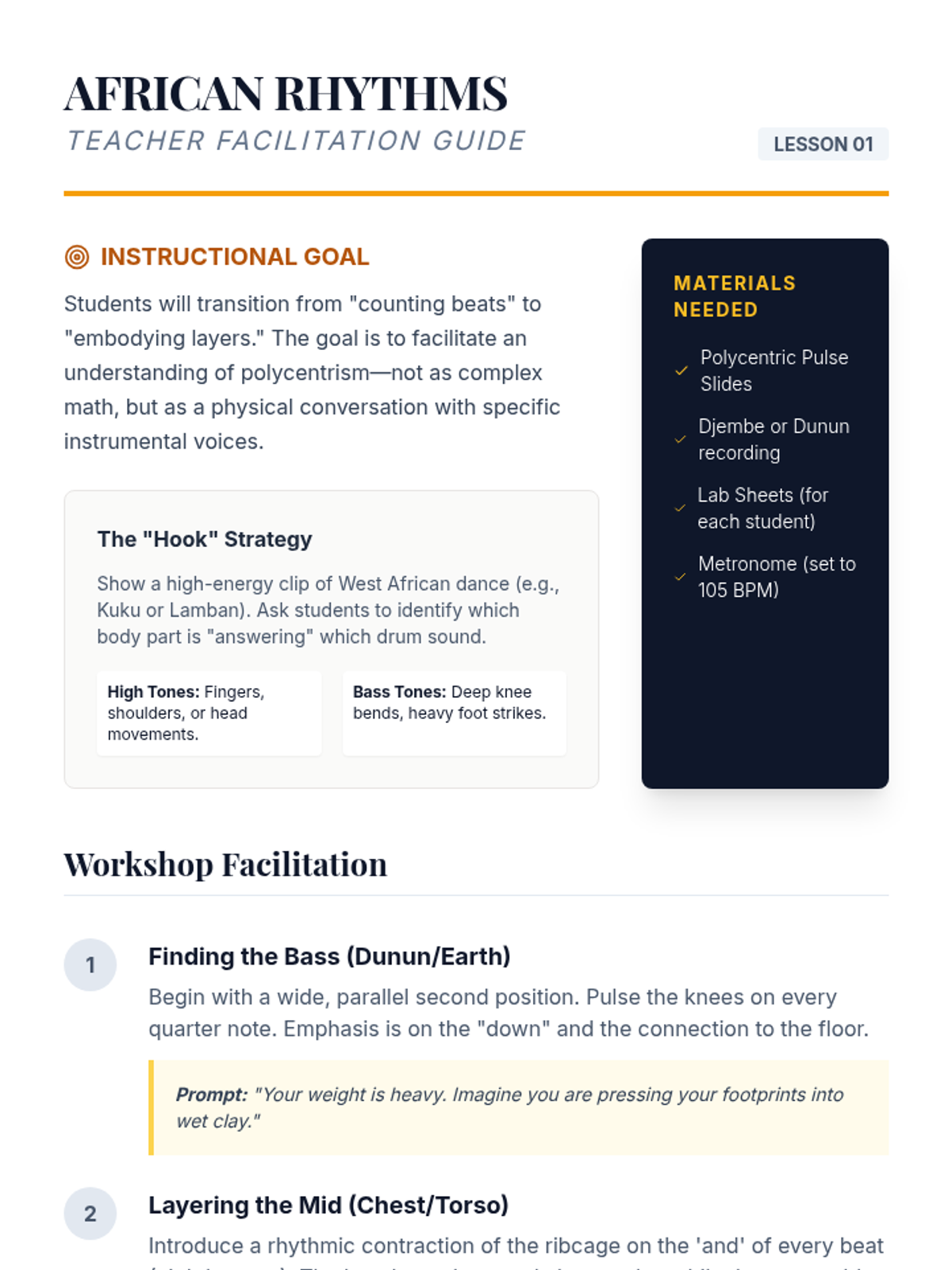 This sequence explores how rhythm and timing function as defining characteristics of various cultural dance forms, focusing on West African, Jazz, Latin, and Contemporary styles. Students will analyze and embody concepts such as polycentrism, swing, the clave, and rubato to understand the intersection of culture and musicality.
