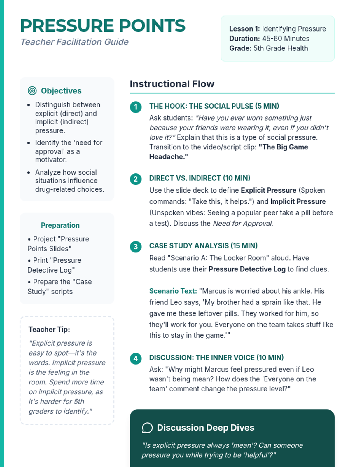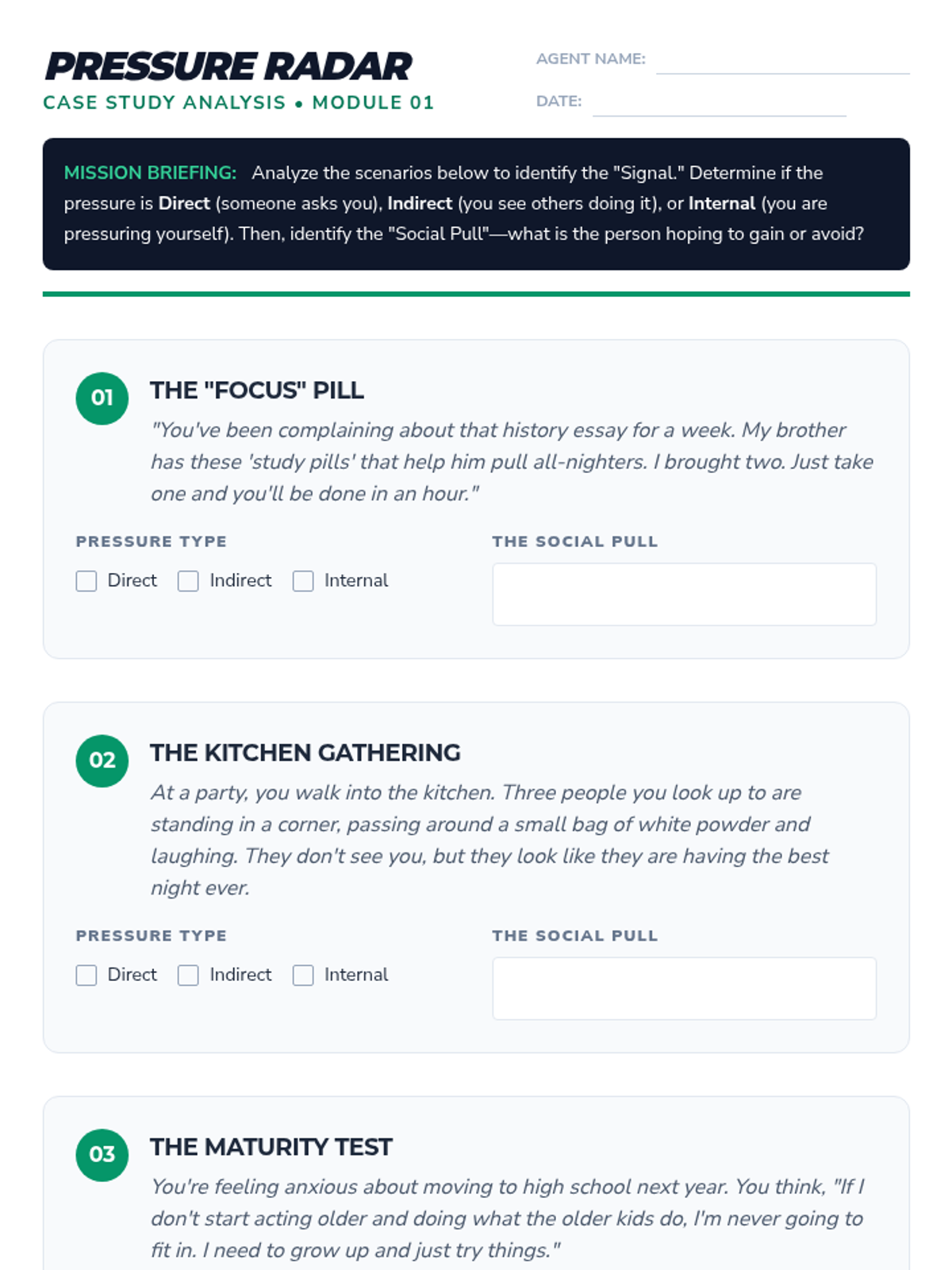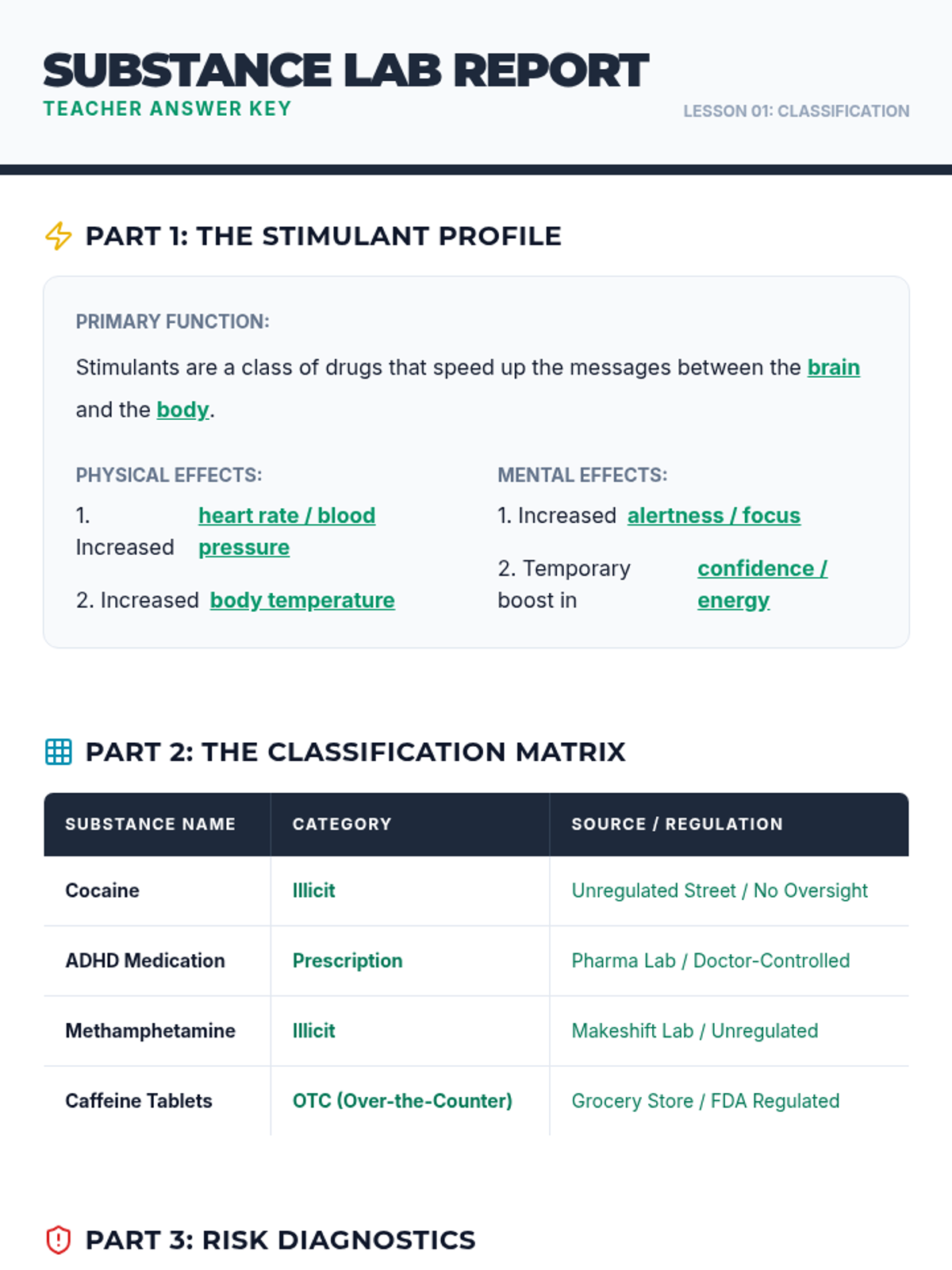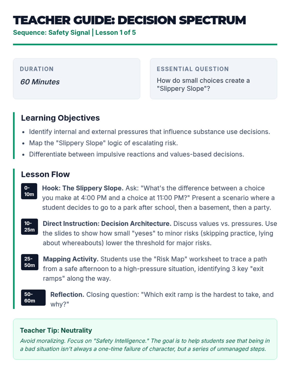 Physiological and social impacts of tobacco, alcohol, cannabis, and narcotics like opioids and stimulants. Equips students with specific refusal techniques to navigate peer pressure and make informed health decisions regarding prescription and illicit substances.