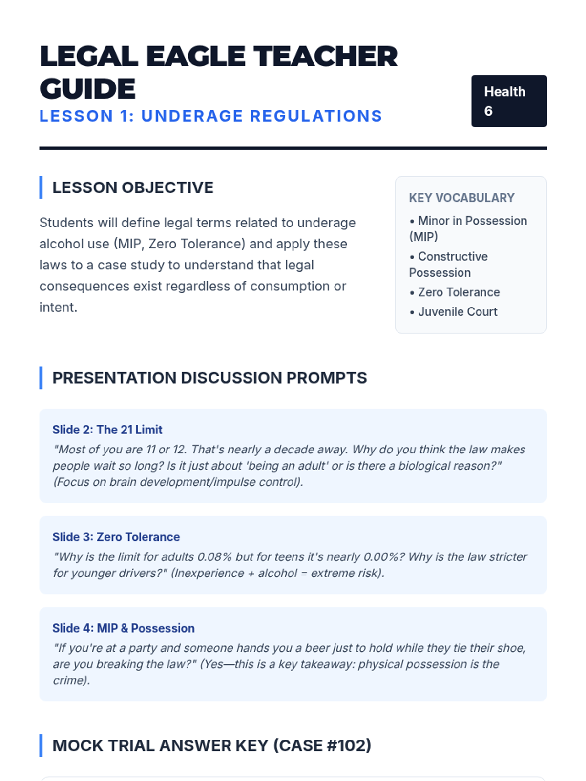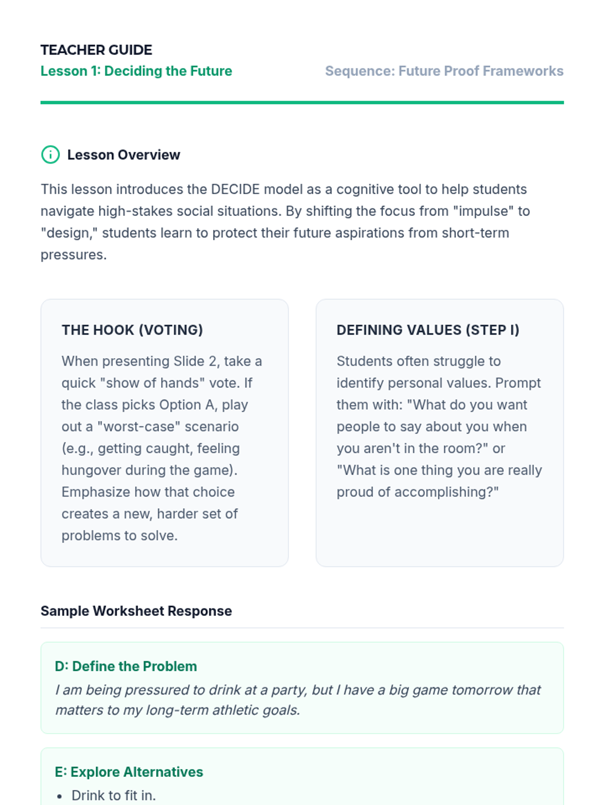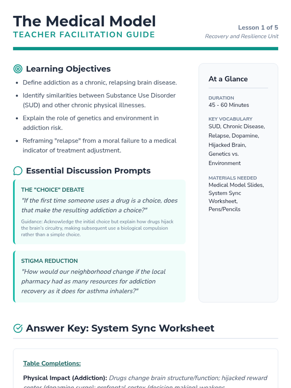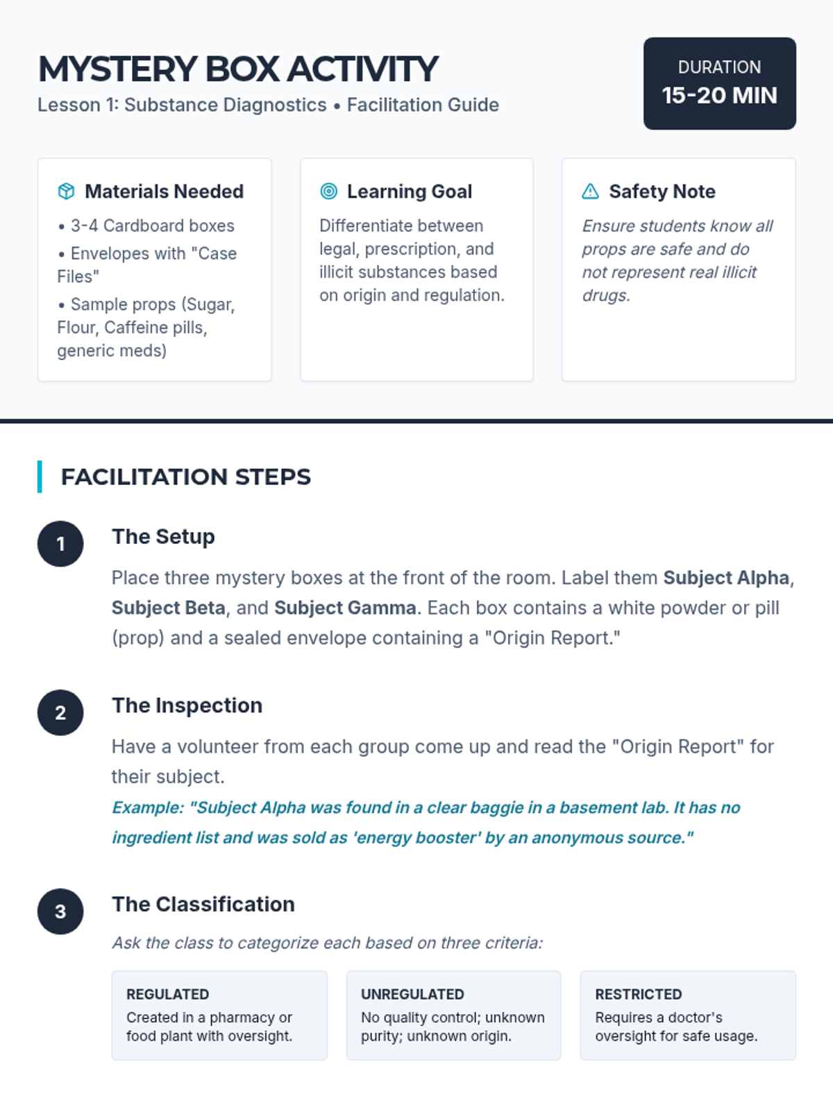 Physiological and social impacts of tobacco, alcohol, cannabis, and narcotics like opioids and stimulants. Equips students with specific refusal techniques to navigate peer pressure and make informed health decisions regarding prescription and illicit substances.