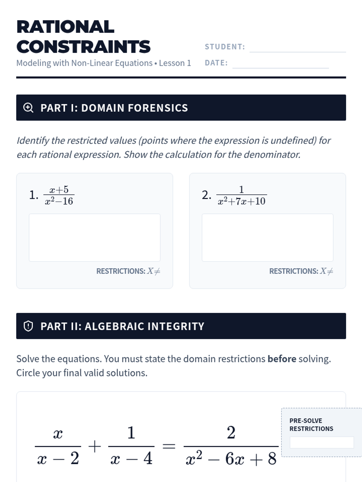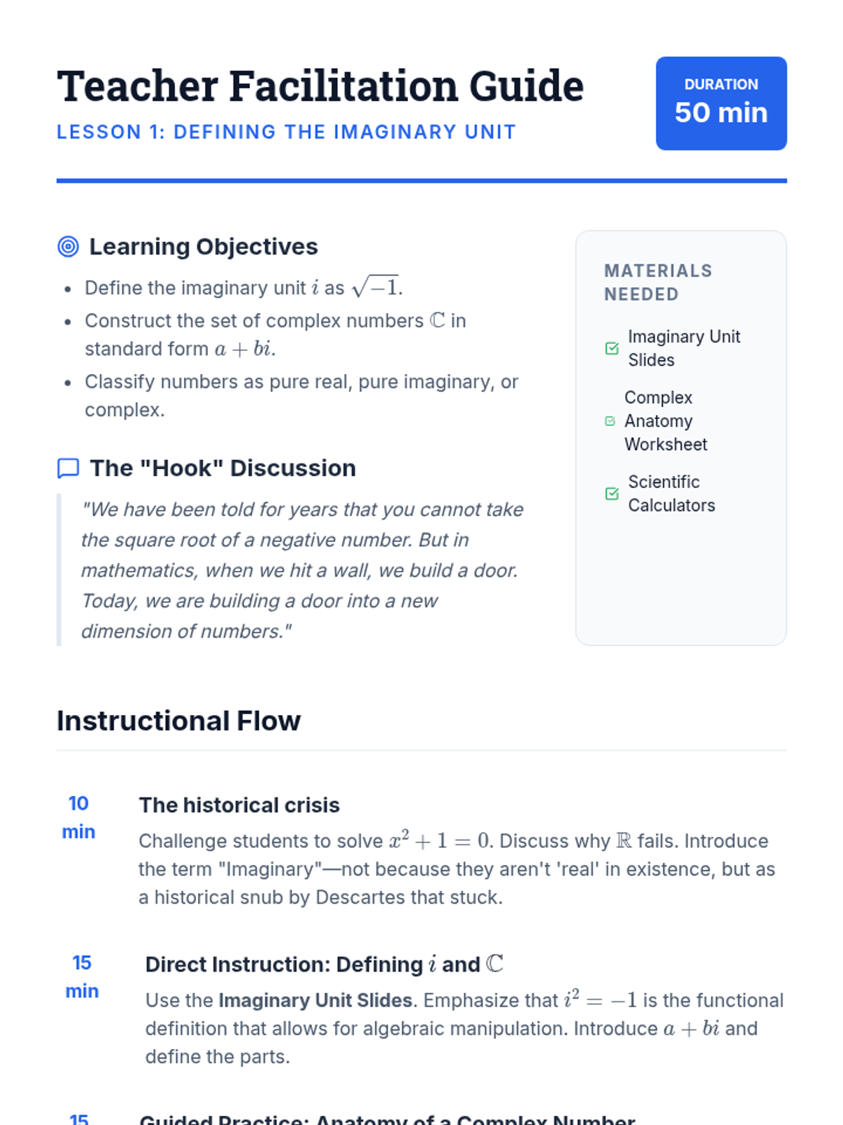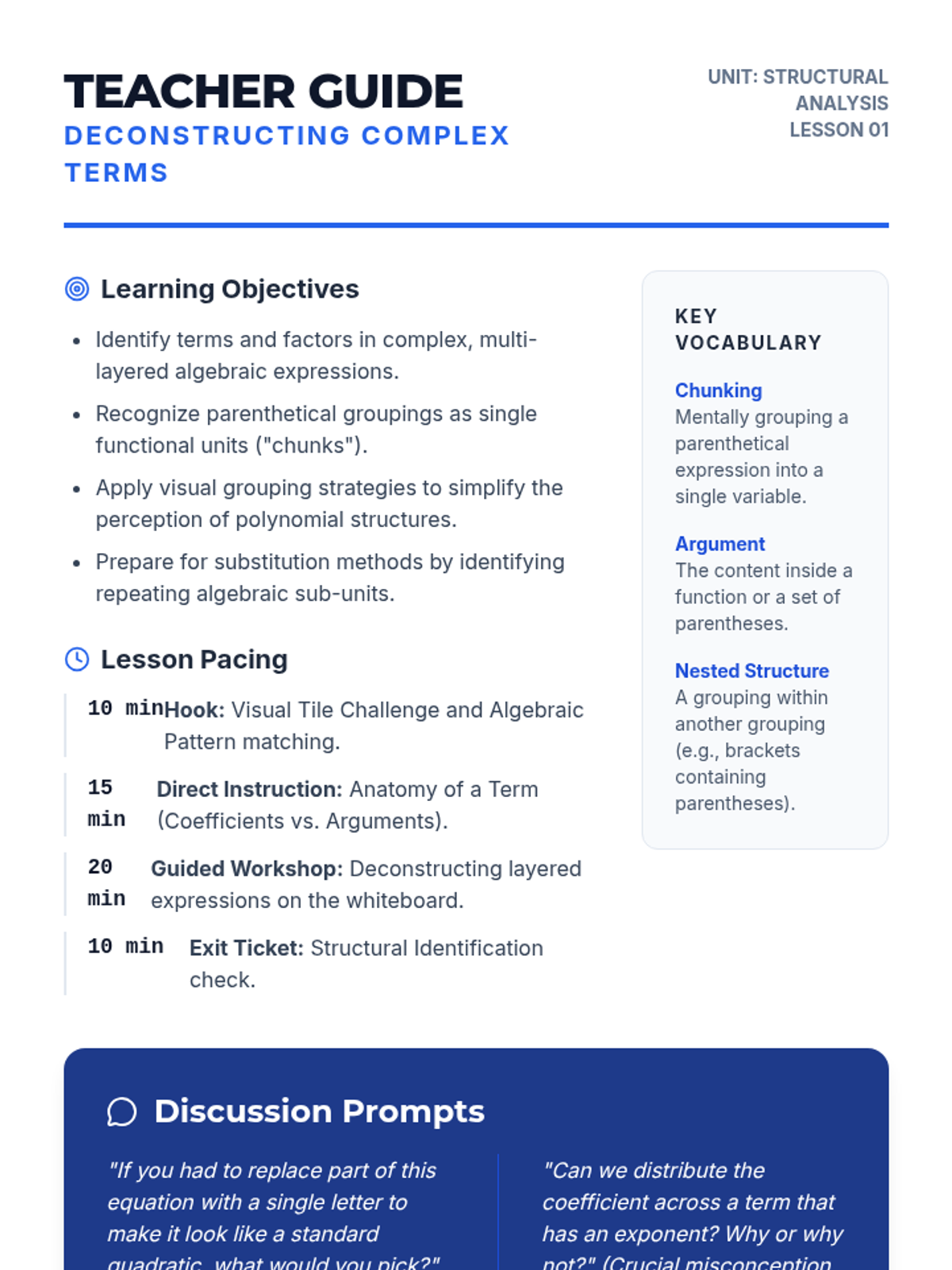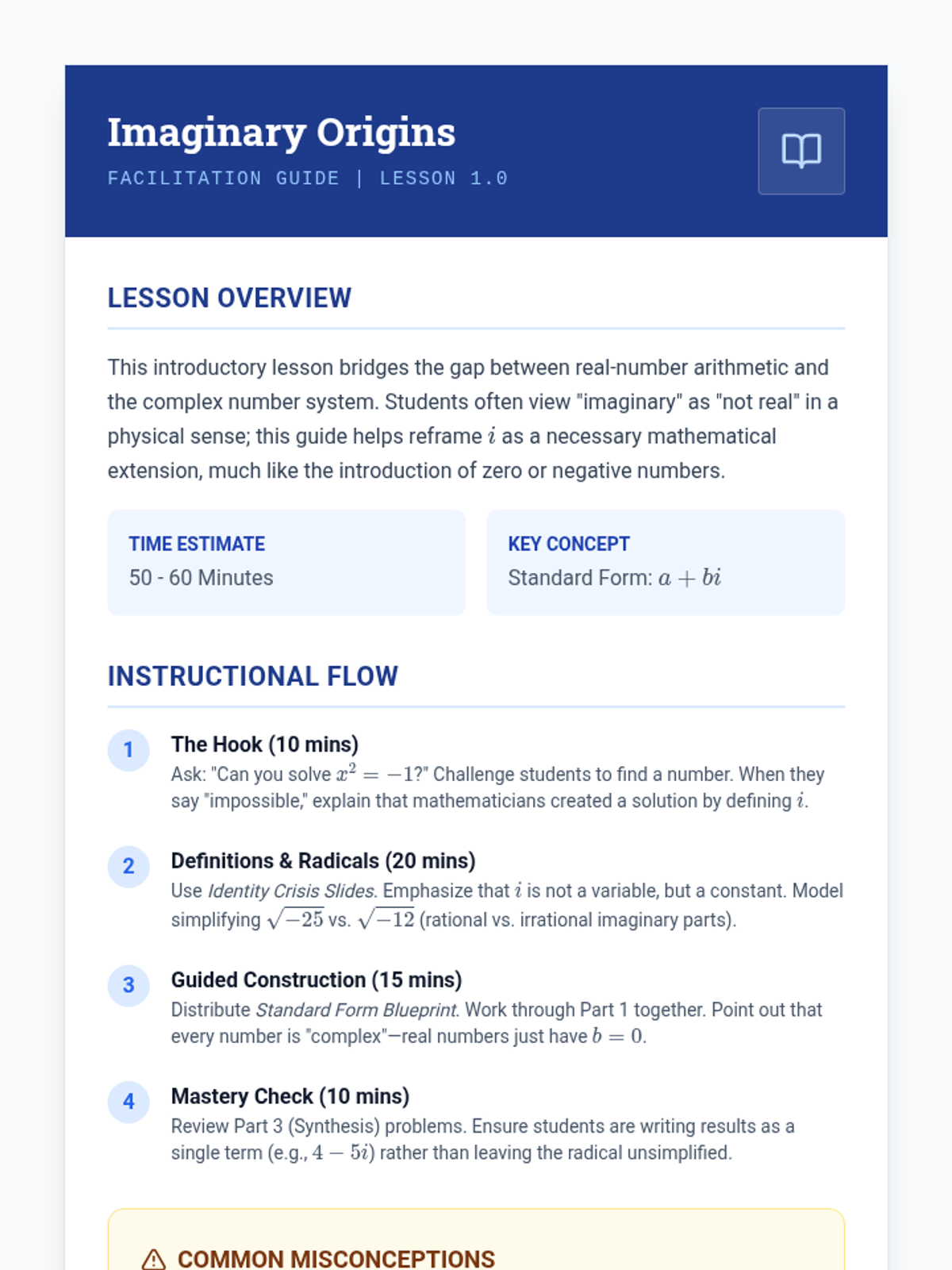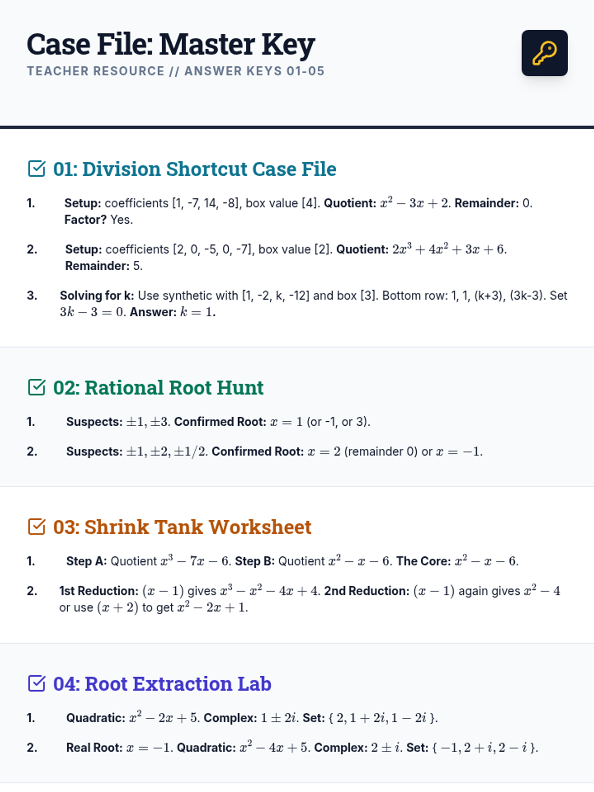 Techniques for manipulating polynomial operations, rational expressions, and complex numbers alongside strategies for solving systems of equations and inequalities. Develops quantitative reasoning through graphing, real-world modeling, and the structural analysis of algebraic identities.
