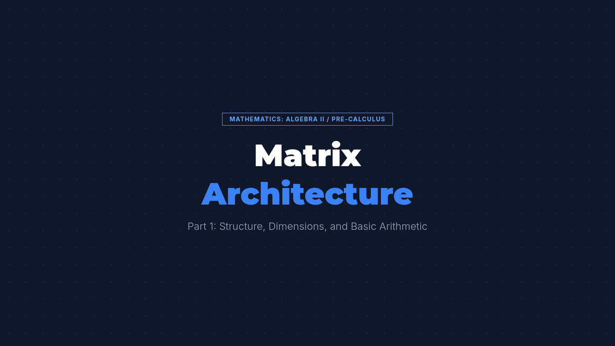 A comprehensive 12th-grade mathematics sequence on matrix algebra, covering dimensions, arithmetic operations, determinants, inverses, and solving linear systems. Students progress from basic organization to using matrices as powerful tools for solving complex equations.
