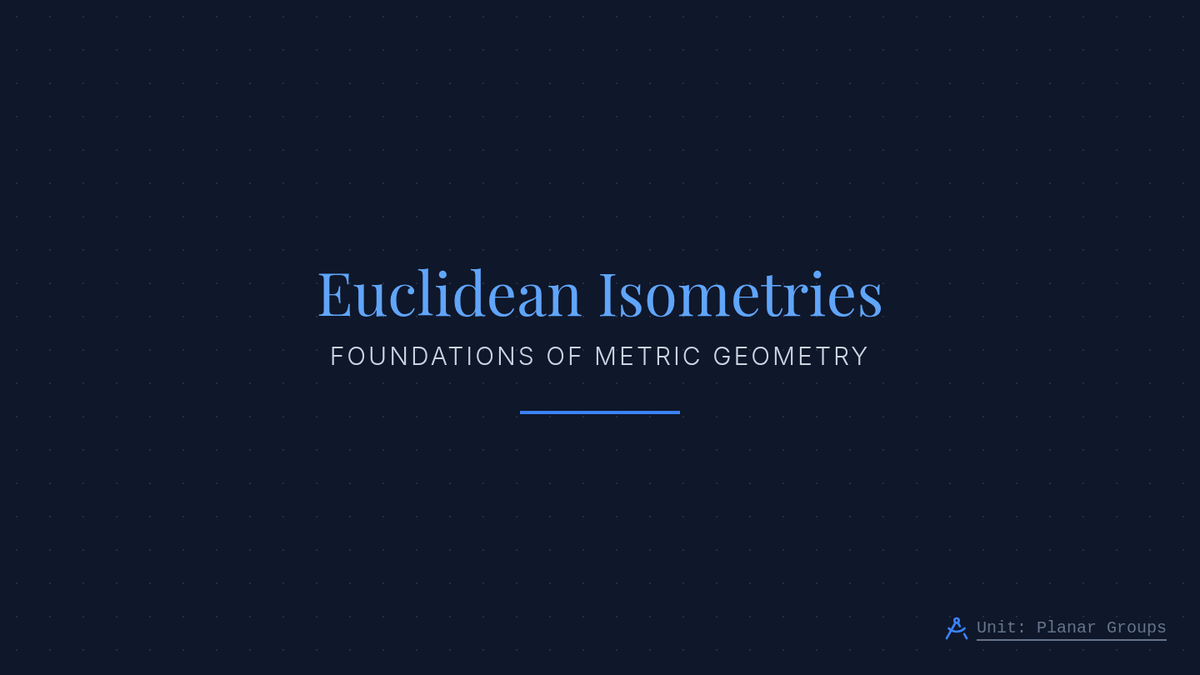 A rigorous exploration of planar geometry through the lens of group theory, covering isometries, the Three Reflections Theorem, and the classification of finite and infinite symmetry groups.