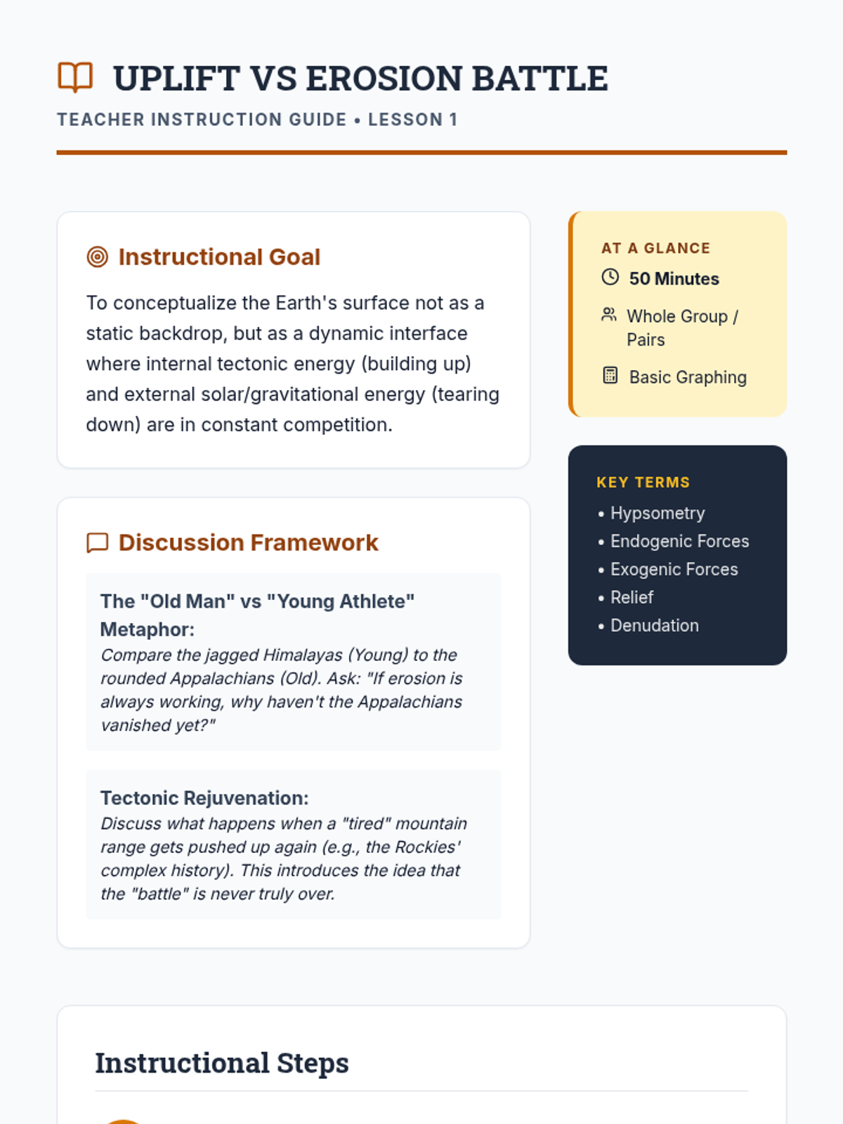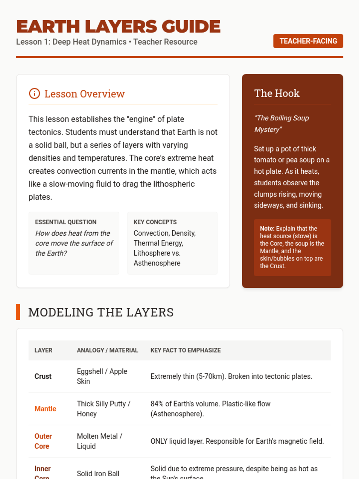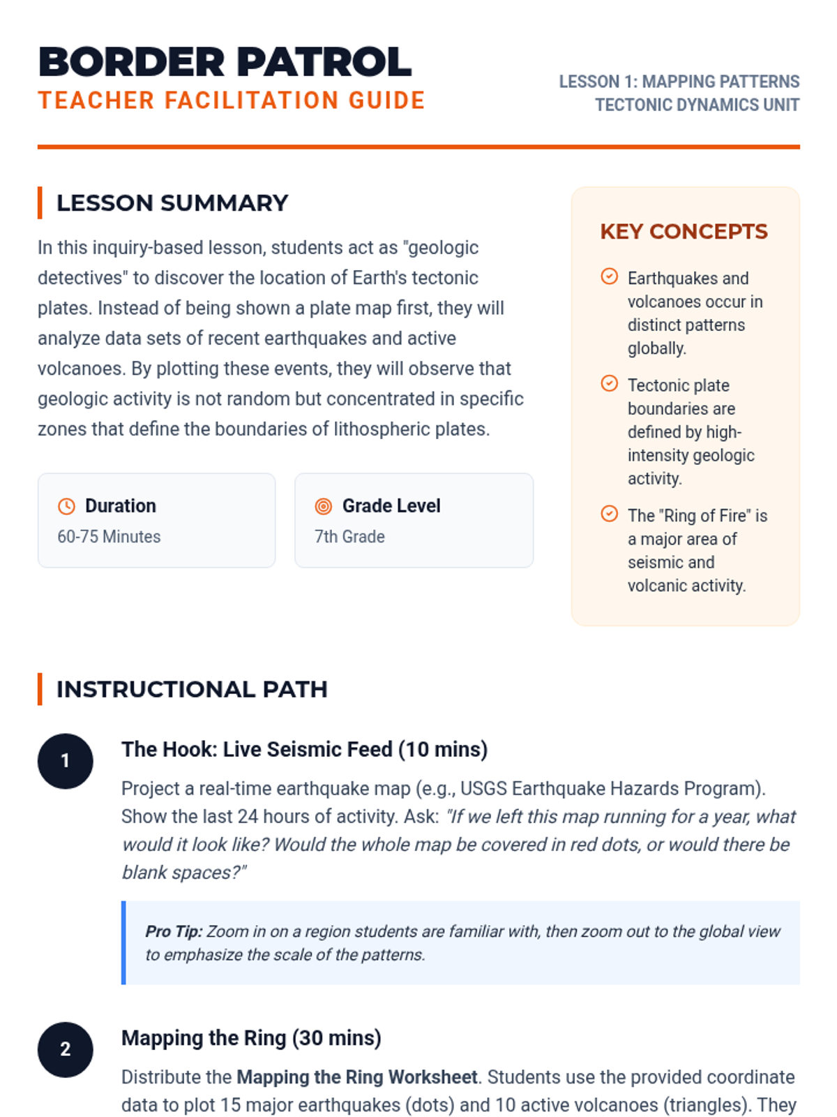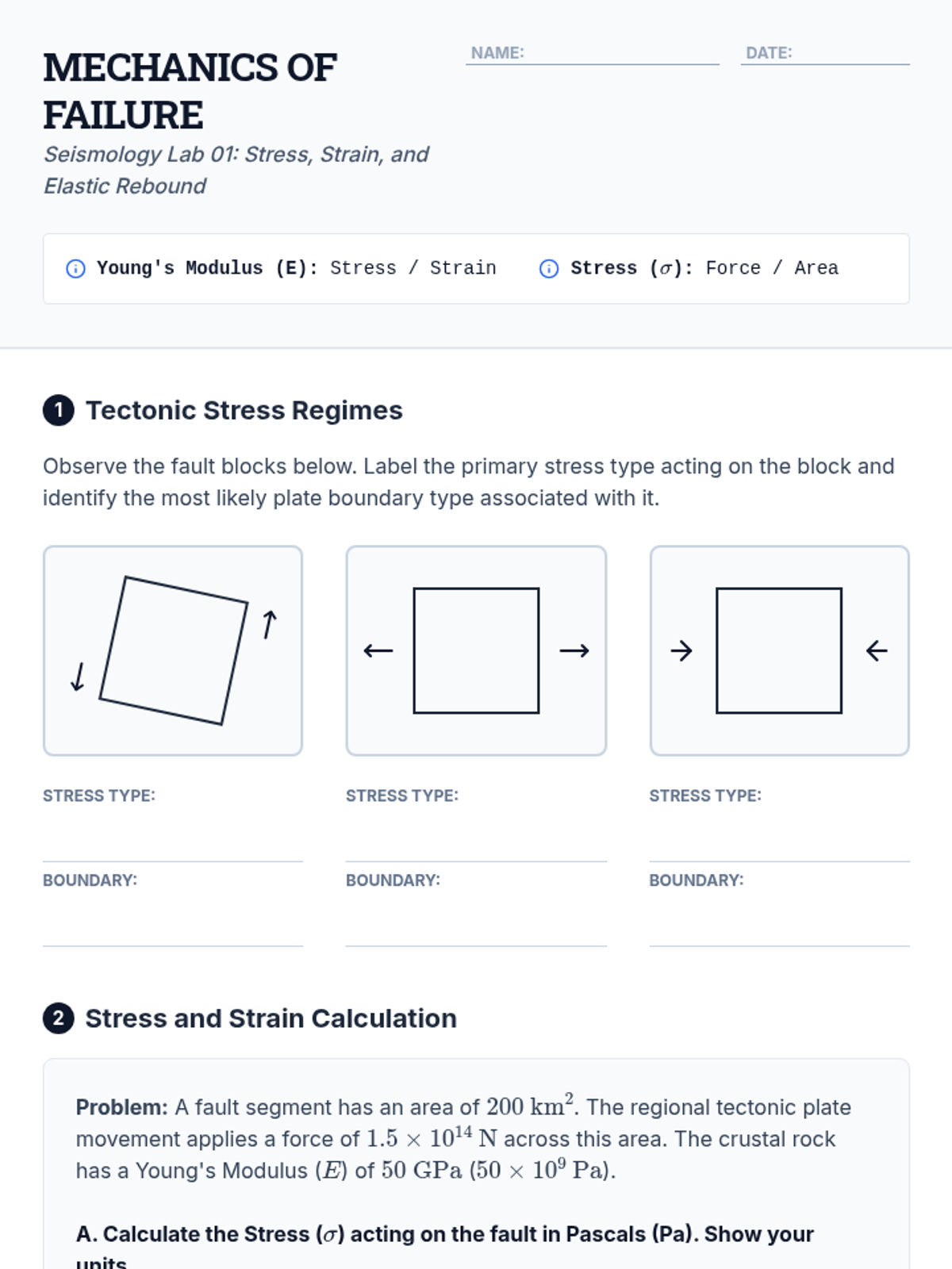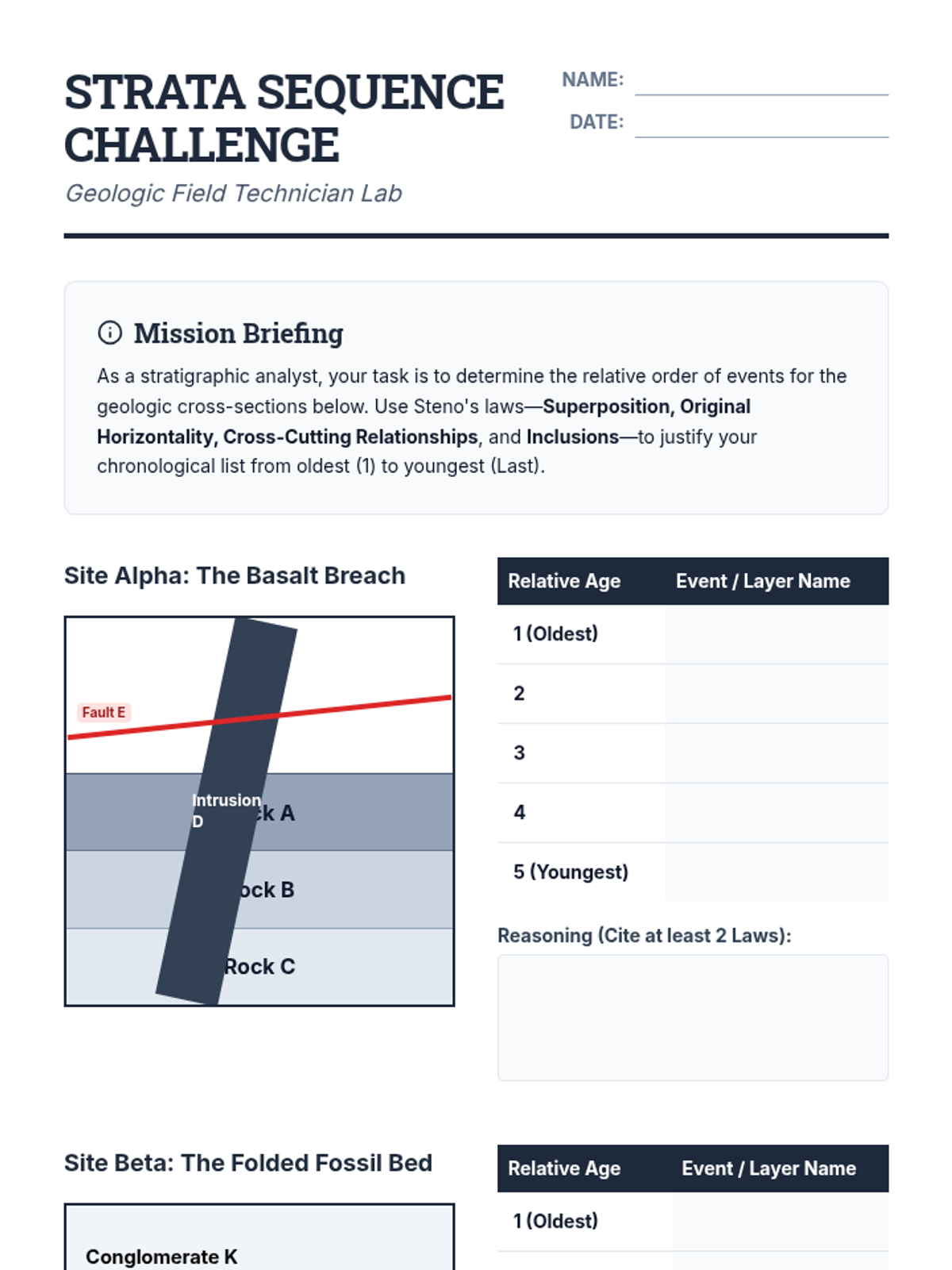 Geological processes including plate tectonics, rock formation, and Earth's structure alongside atmospheric weather systems and fossil records. Examines human environmental impacts, resource management, and celestial bodies within the field of astronomy.