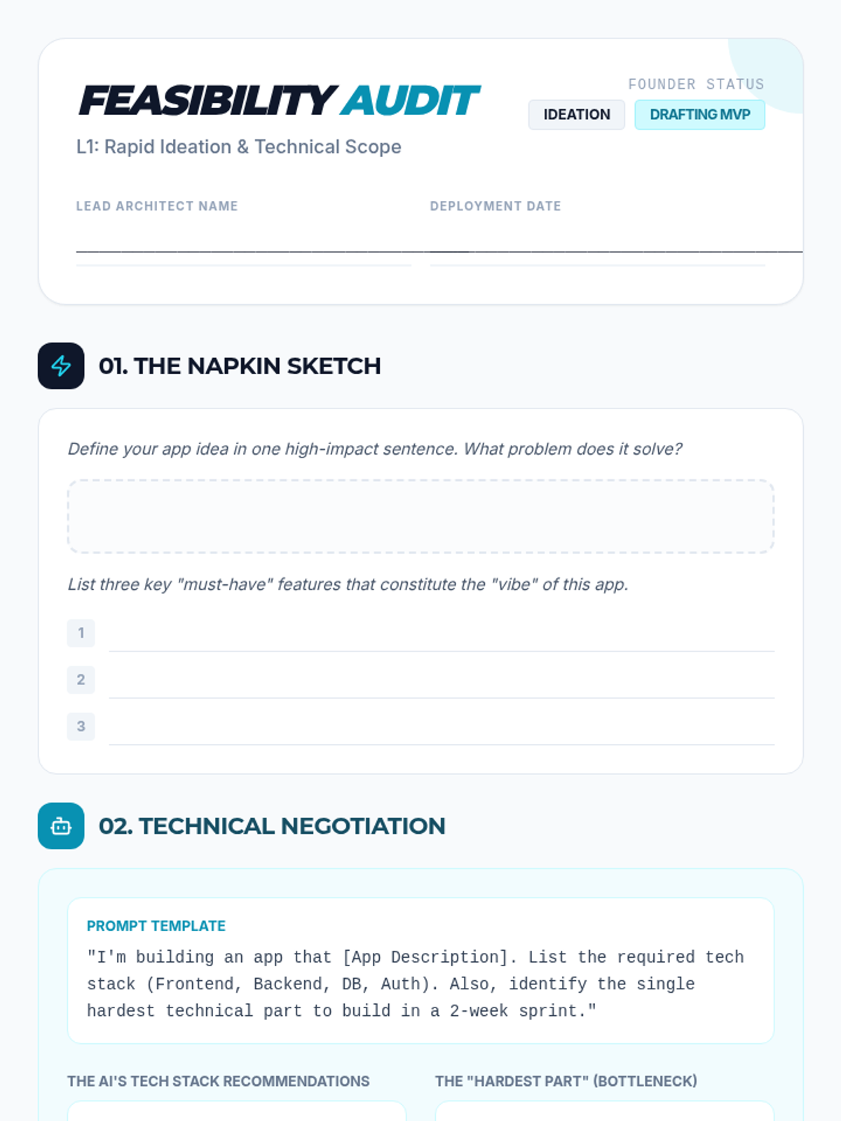 A high-velocity startup simulation where students use AI as a 'labor force' to rapidly prototype and deploy full-stack web applications. Focuses on 'Vibe Coding'—directing AI through natural language to handle boilerplate while humans focus on UX and product logic.