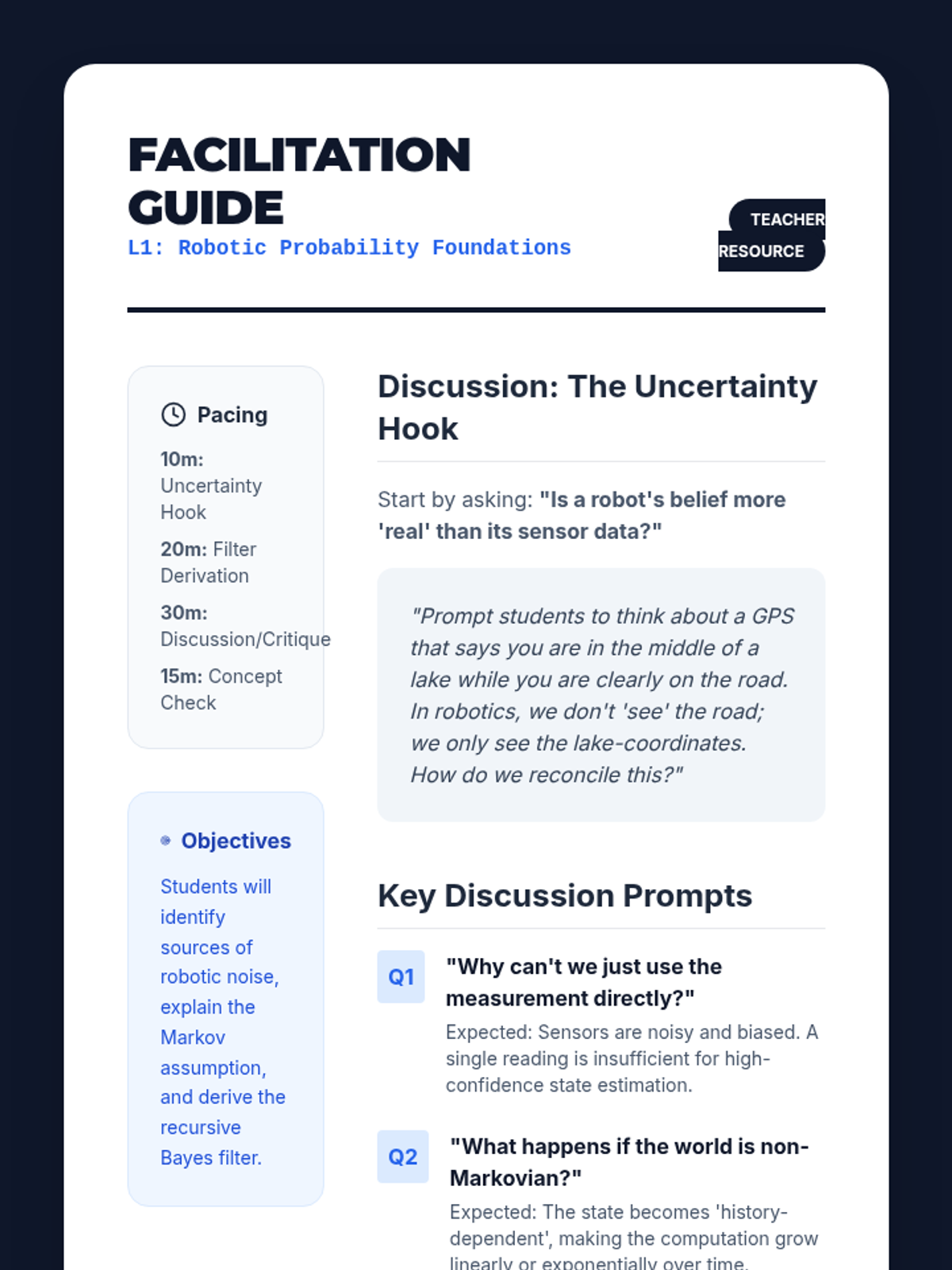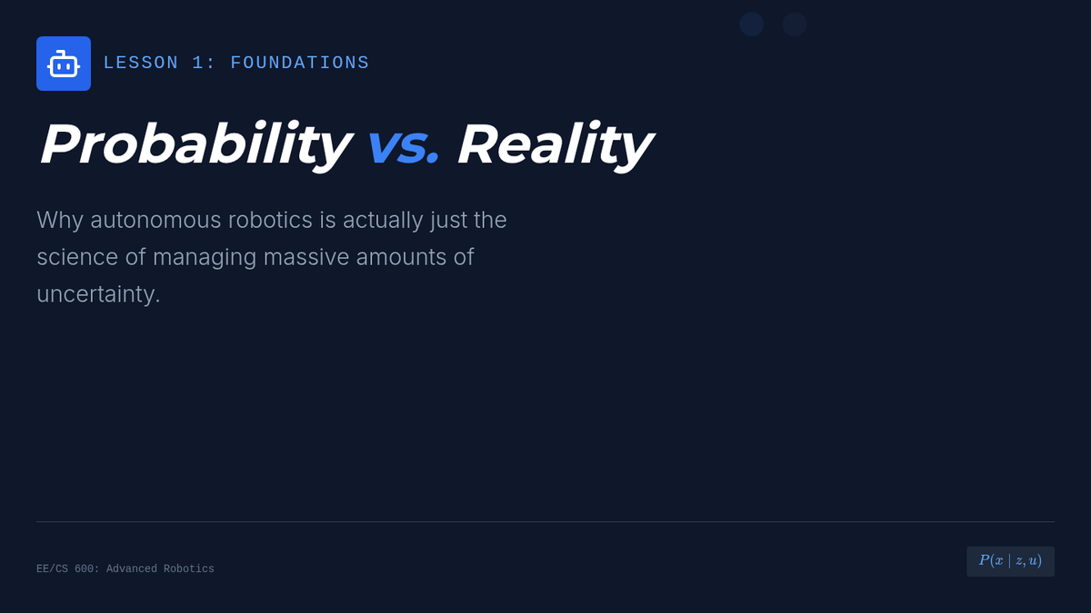 A comprehensive graduate-level sequence on Simultaneous Localization and Mapping (SLAM), covering probabilistic foundations, particle filters, grid mapping, FastSLAM, and graph-based optimization. Students will analyze and implement the core algorithms that allow autonomous robots to navigate unknown environments.