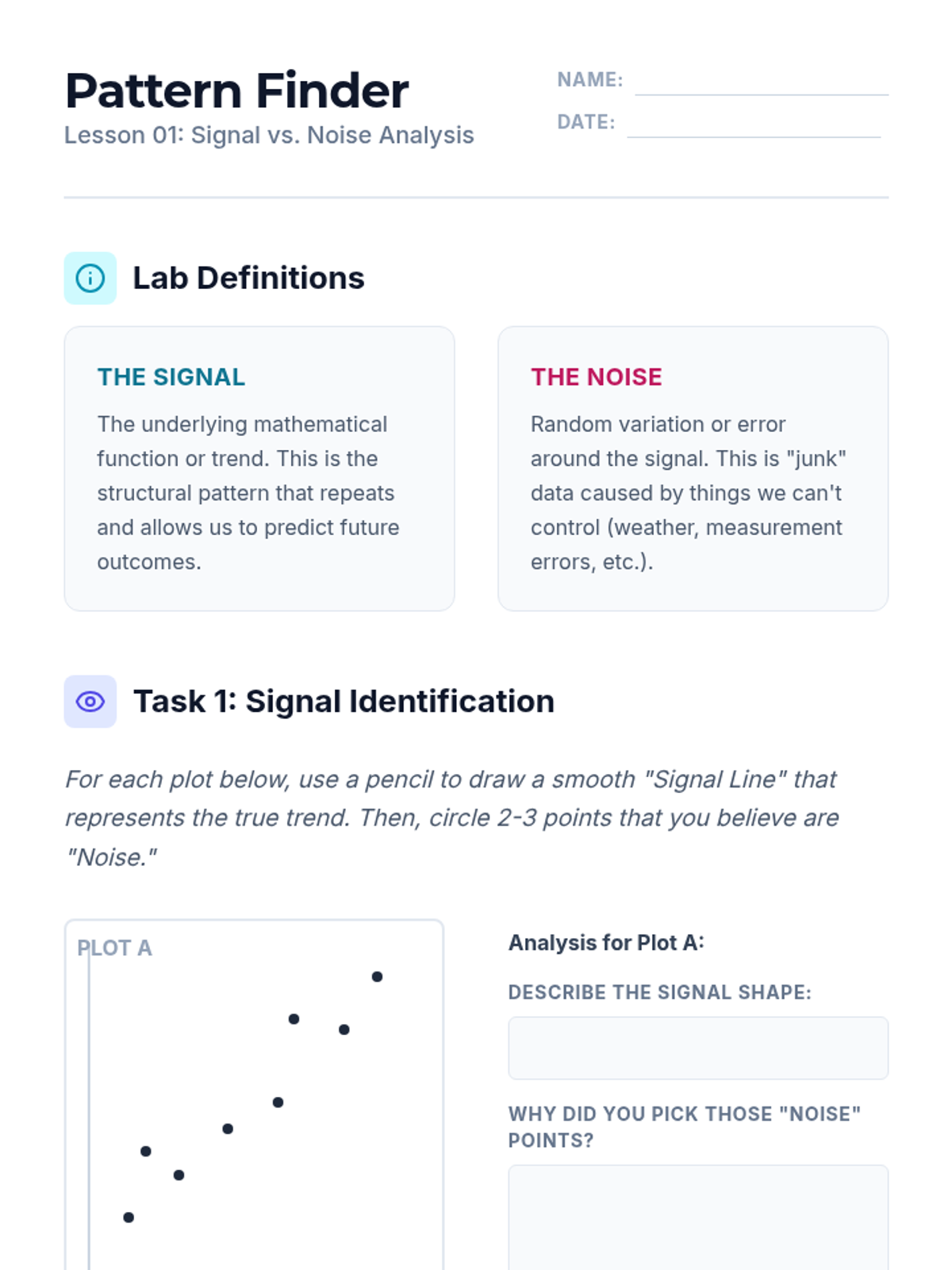 This sequence explores the fundamental tension in statistical modeling: the trade-off between bias (underfitting) and variance (overfitting). Students use visual analysis and simulations to identify signal versus noise and find the optimal model complexity.