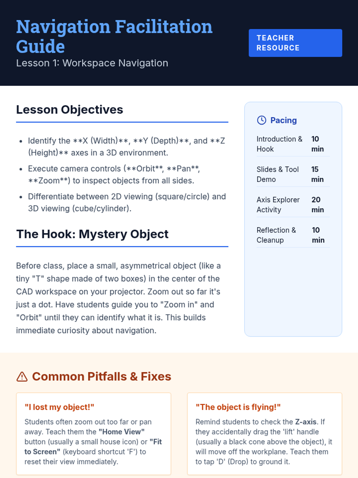 A comprehensive introduction to 3D modeling for 6th graders, covering spatial navigation, precision scaling, and boolean operations to build complex digital objects.
