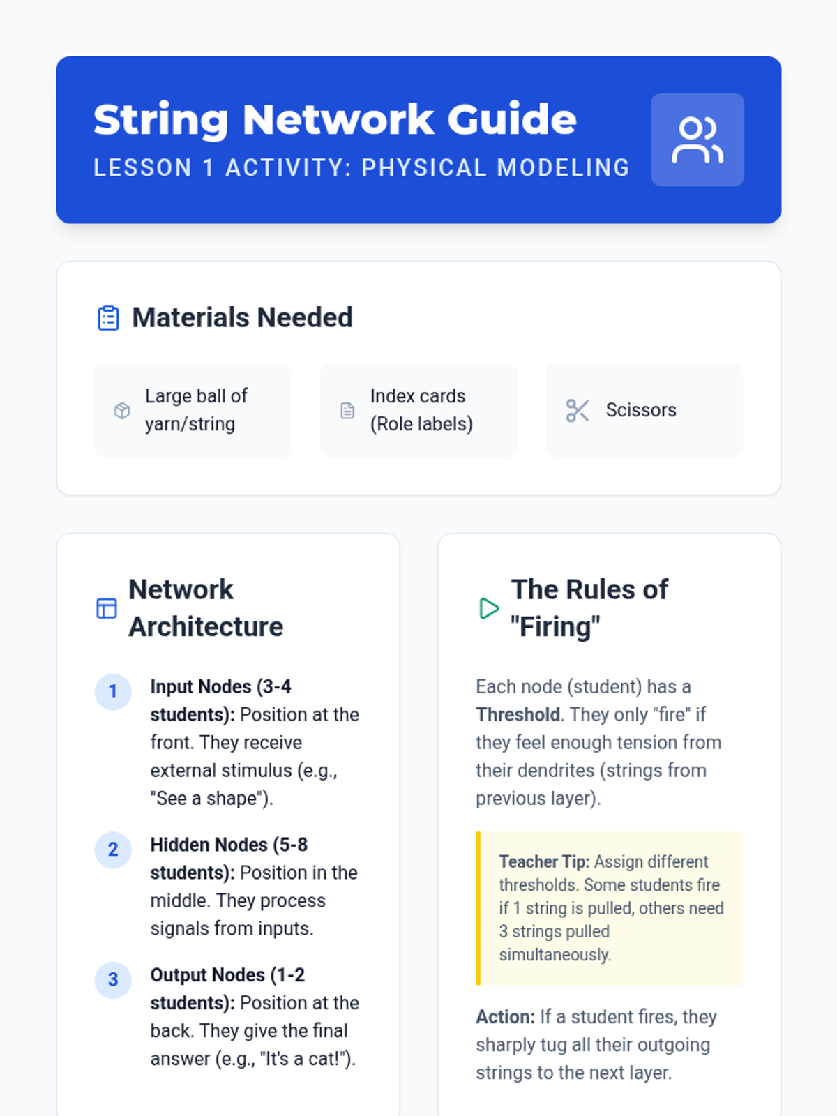 This sequence demystifies Neural Networks and Deep Learning by bridging biological concepts with artificial intelligence. Students explore how the brain's structure inspires machine learning through interactive models, architectural analysis, and hands-on training simulations.