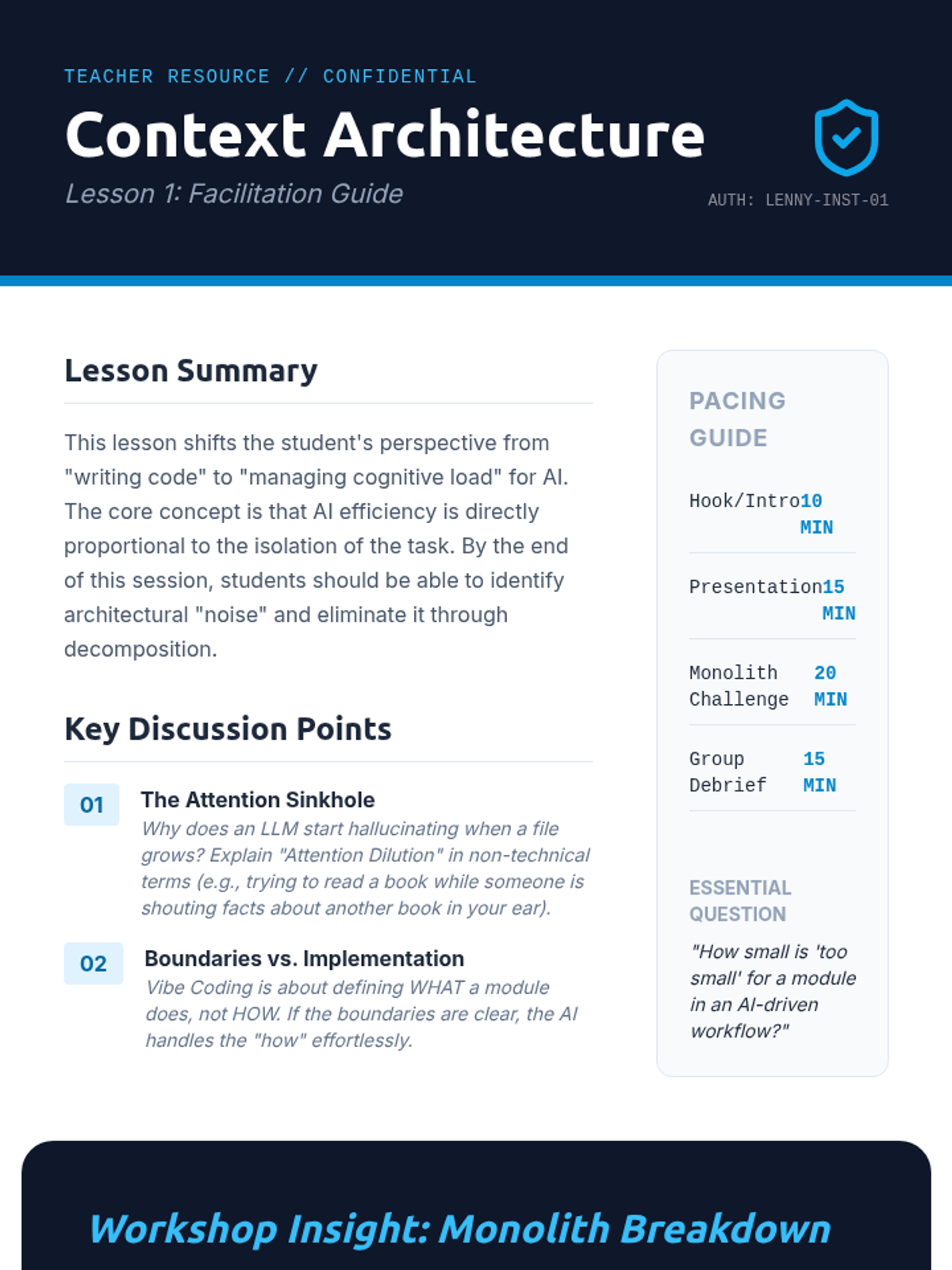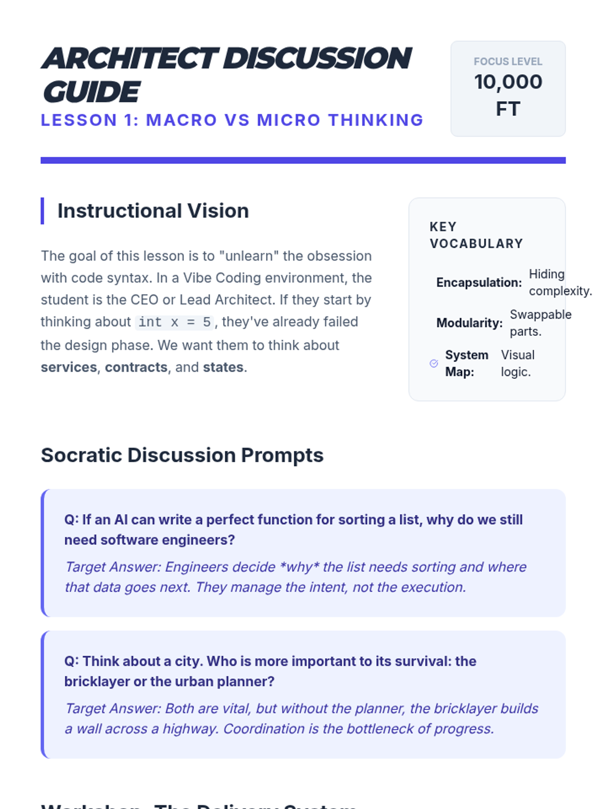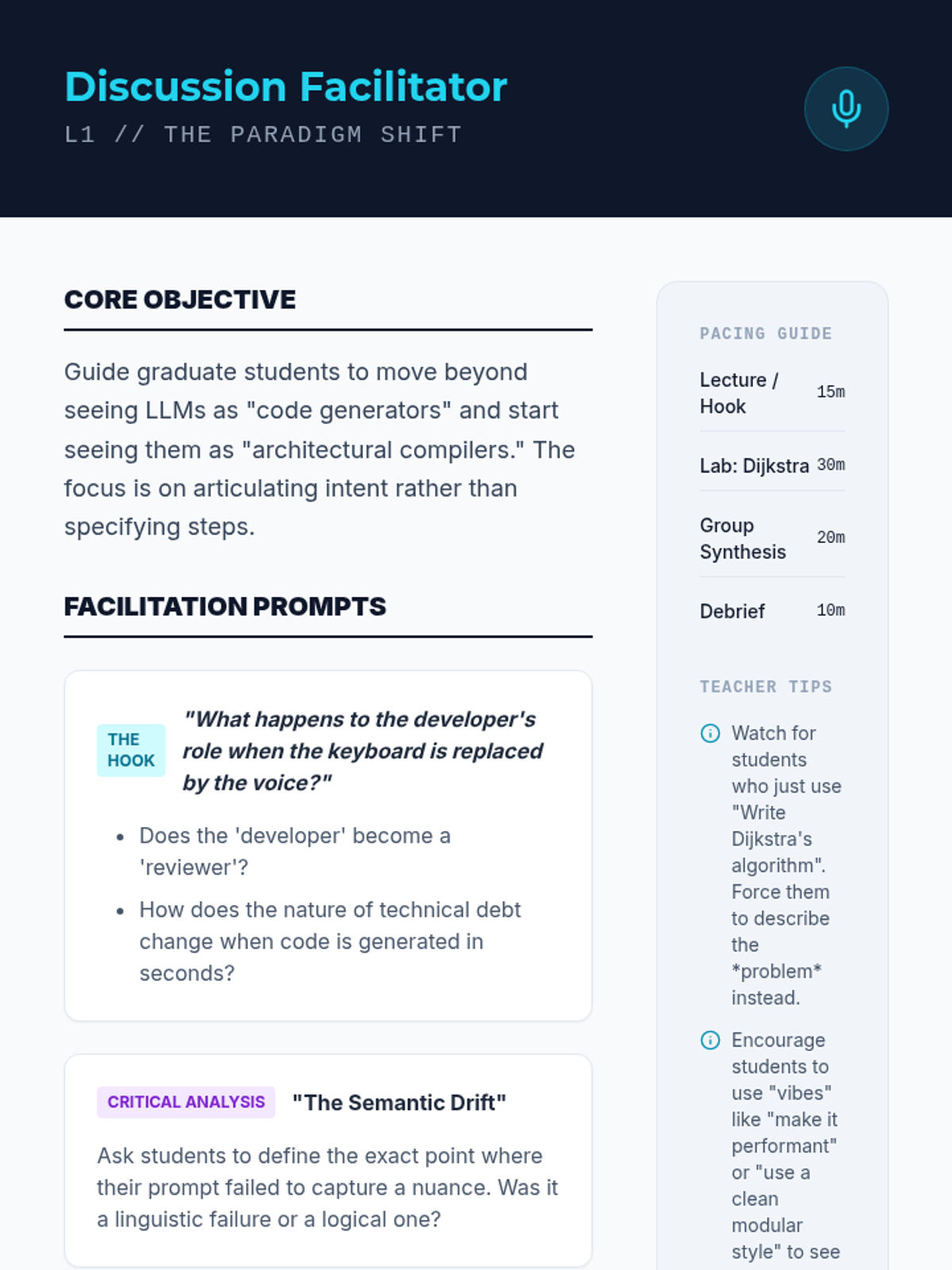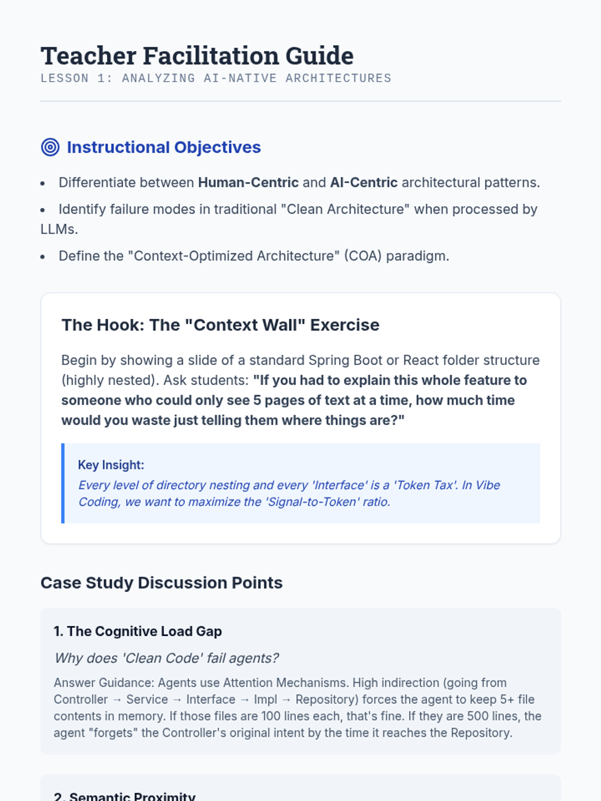 This sequence explores system architecture through the lens of 'Vibe Coding,' where AI handles implementation while humans focus on high-level design. Students learn to build modular, interface-first systems optimized for LLM context windows and architectural coherence.