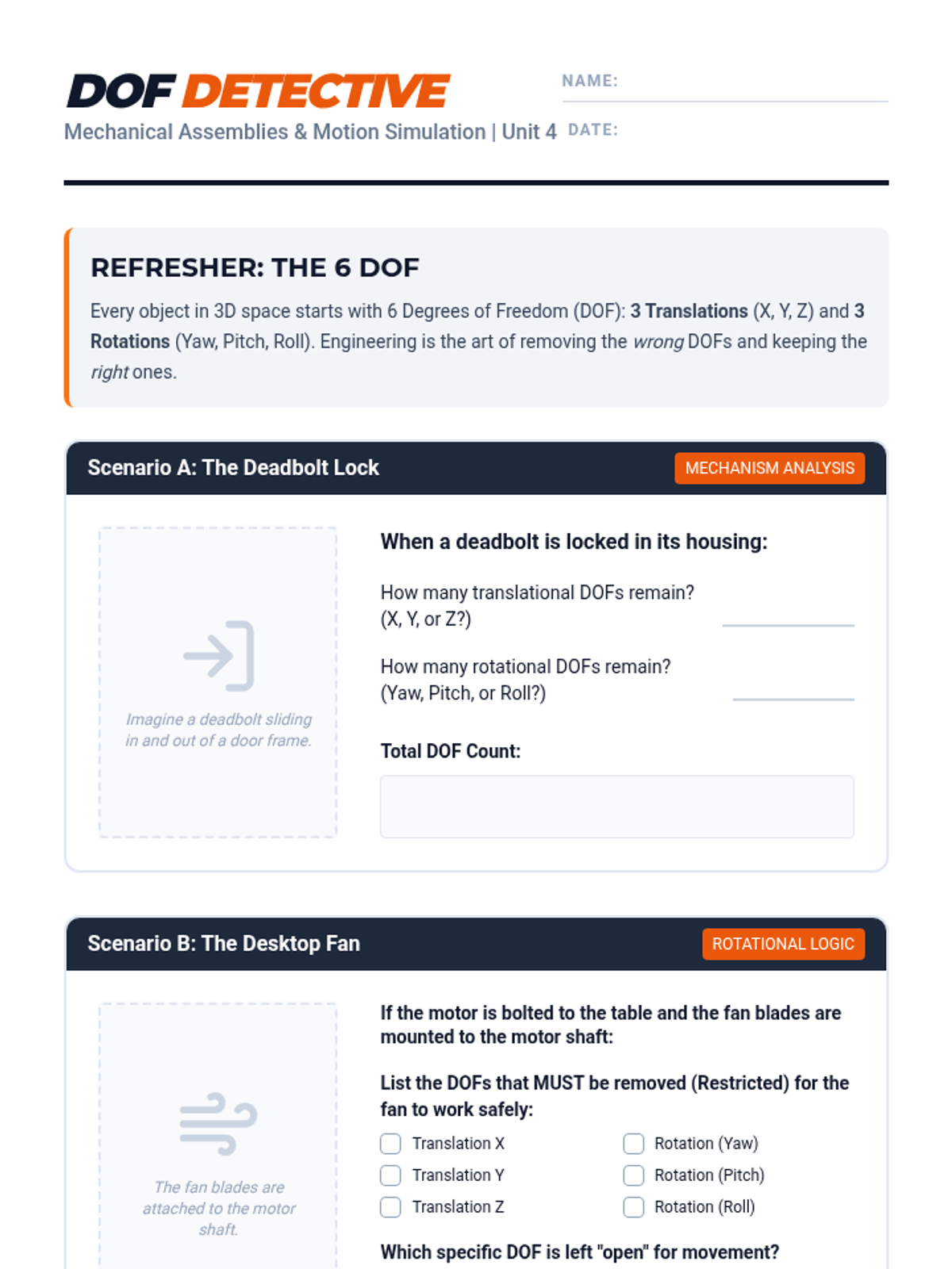 This unit explores the transition from single-part modeling to complex multi-component mechanical systems. Students master assembly constraints, degrees of freedom, motion simulation, and interference analysis through hands-on CAD projects.