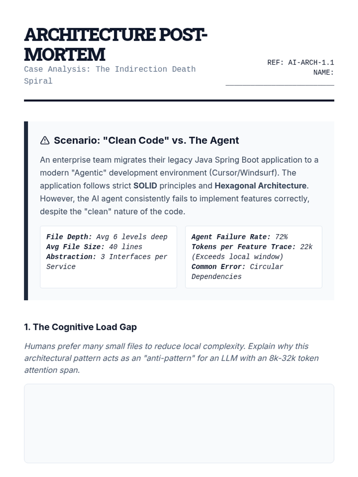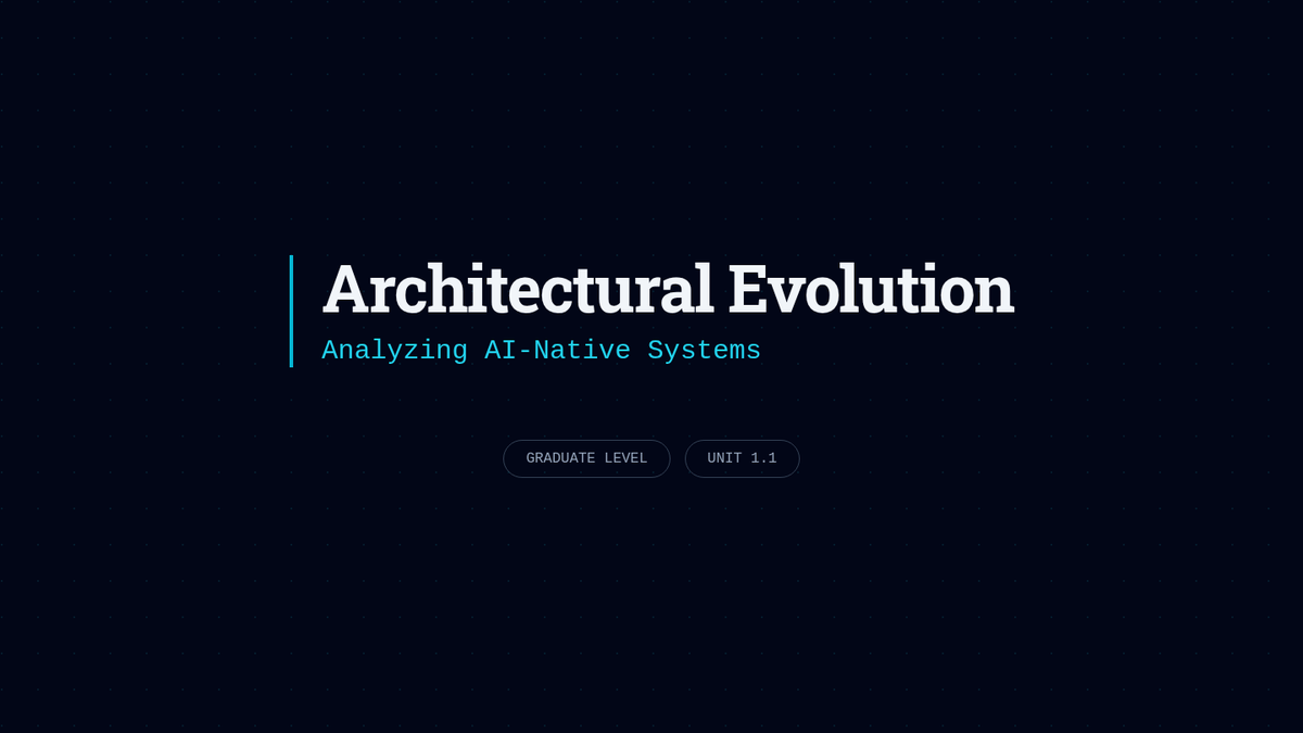 A graduate-level sequence exploring how to design software architectures optimized for AI-generated code, focusing on context management, determinism, and agentic API consumption.