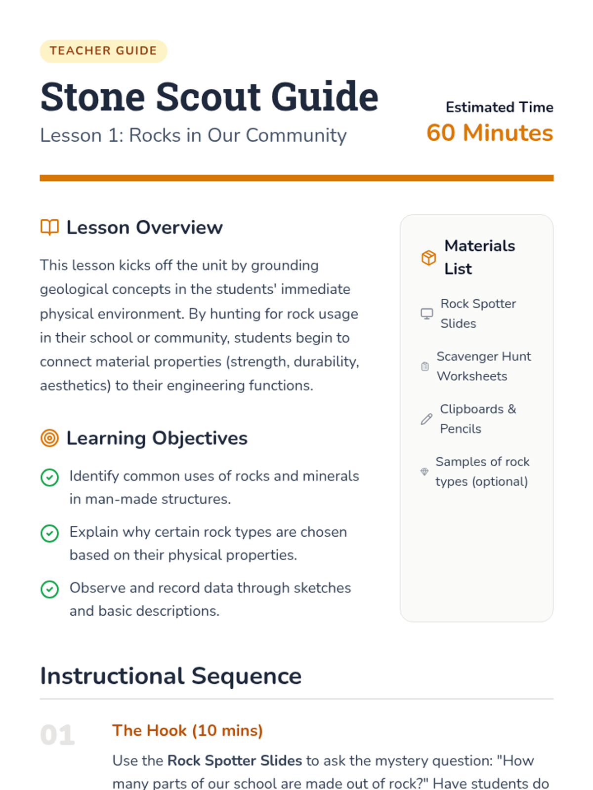 A project-based unit where 2nd-grade students explore the properties of rocks, their uses in human engineering, and famous geological landmarks, culminating in a structural design project.