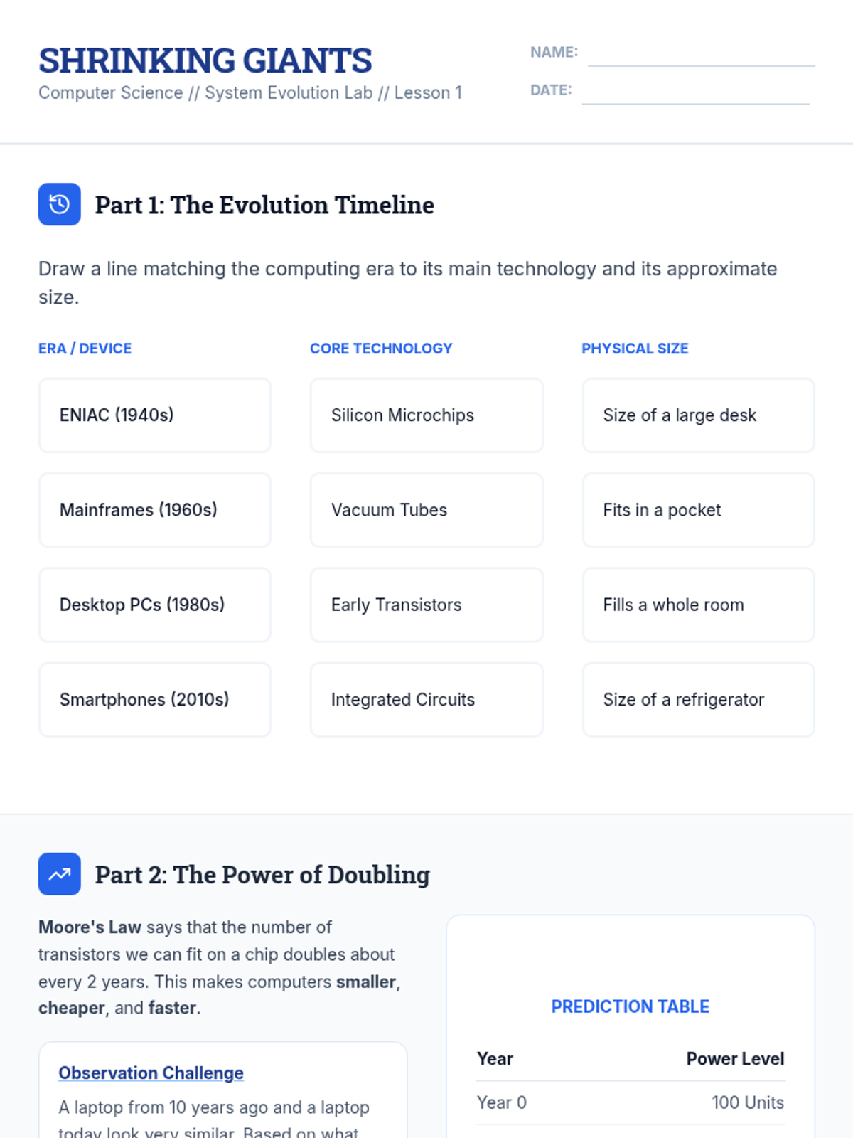 A technology and computer science unit exploring the history of computing, how hardware and software work together, and the future of digital innovation. Students move from understanding basic components to imagining the next generation of technology.