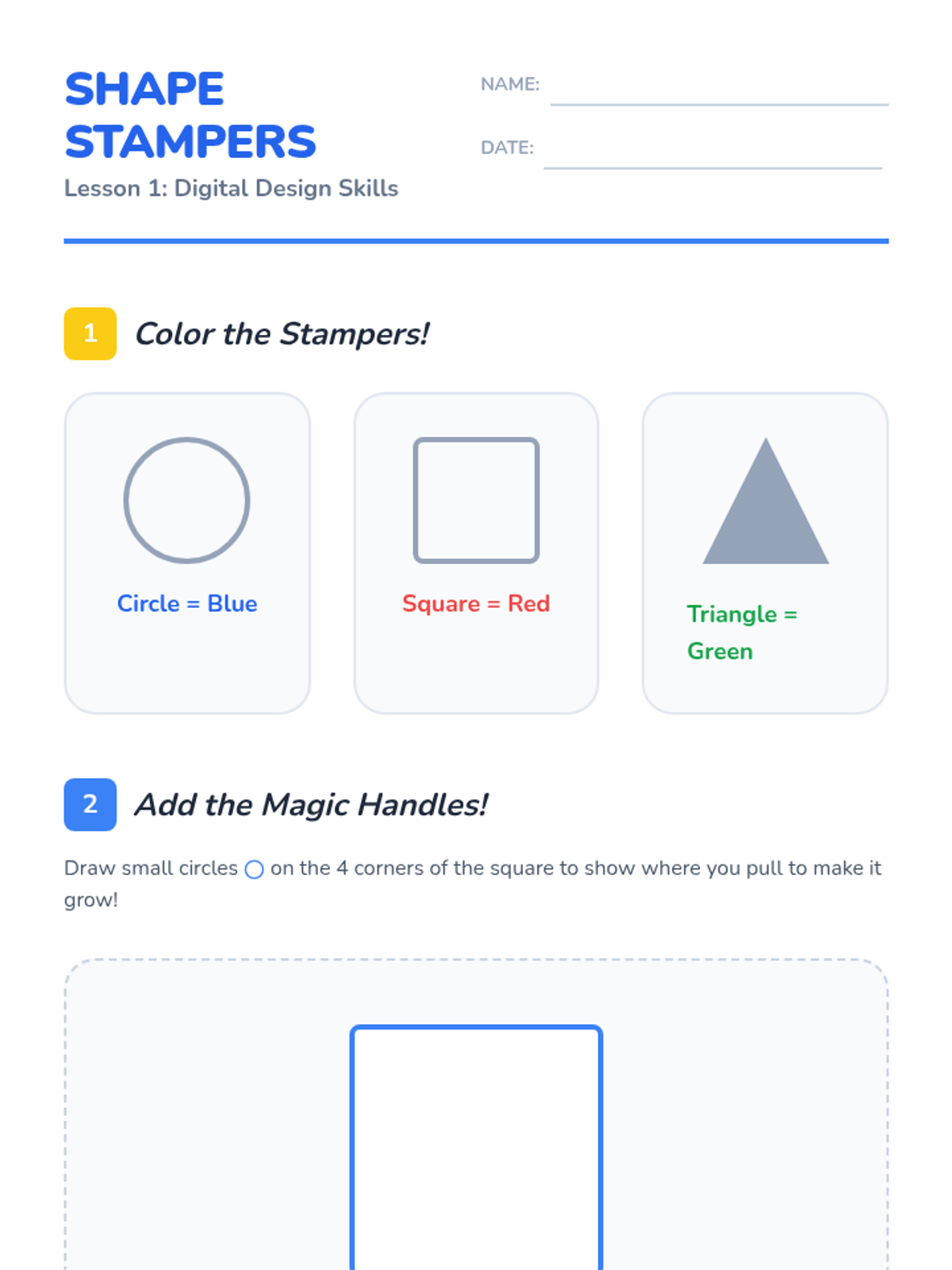 A project-based sequence where 4th-grade students learn the fundamentals of vector illustration and user interface design to create their own mobile app mockup. Students progress from basic shape manipulation to high-fidelity digital prototyping and user testing.