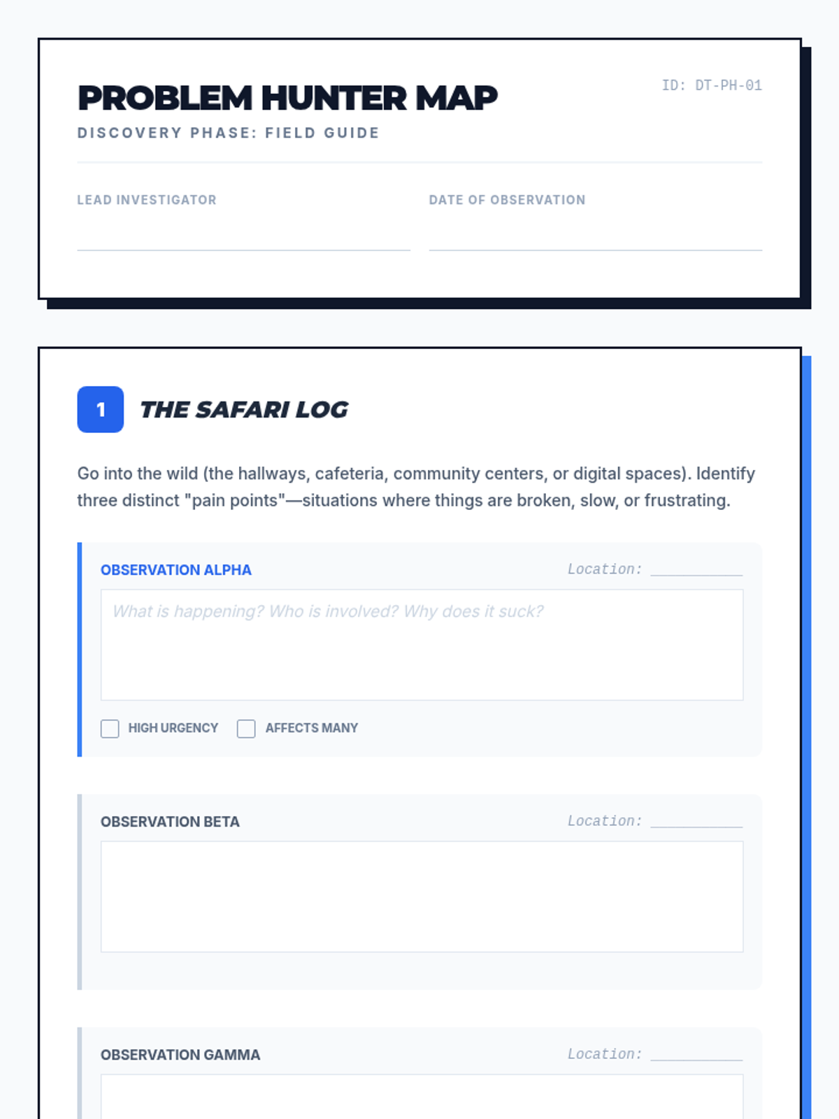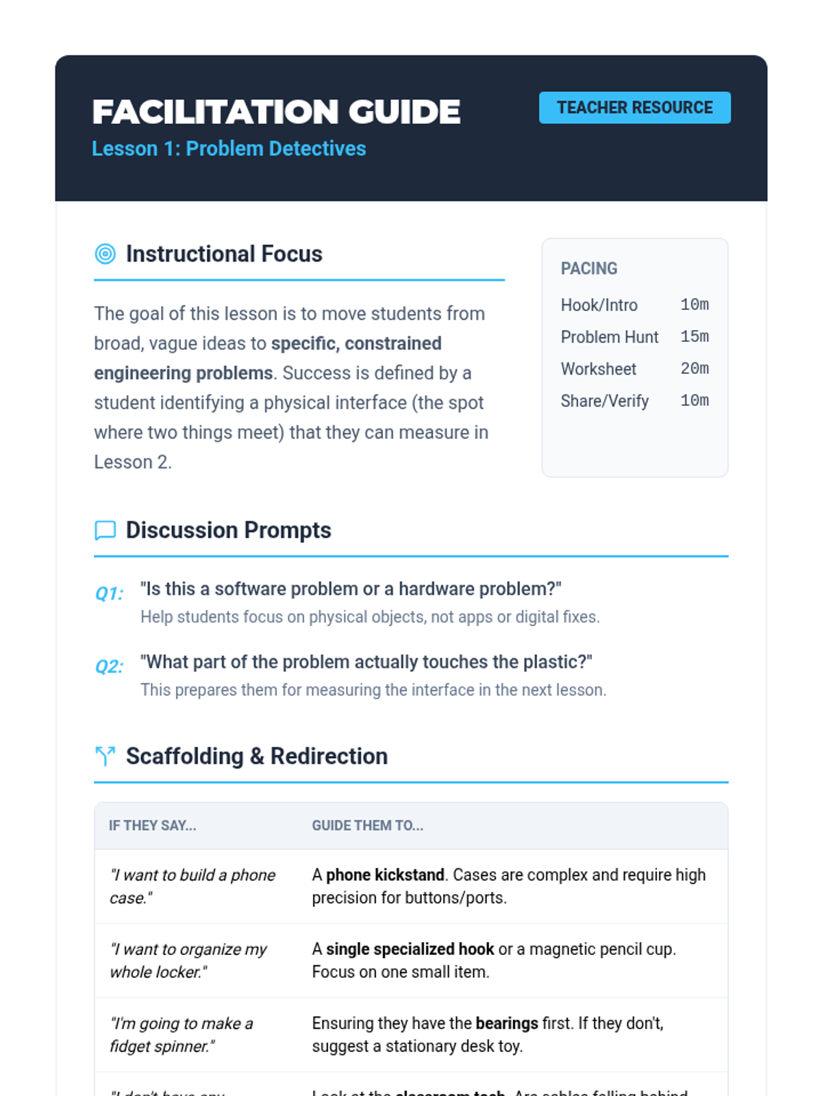 A comprehensive project-based learning unit where high school students apply design thinking to solve real-world problems, from initial discovery to final prototyping and pitching.