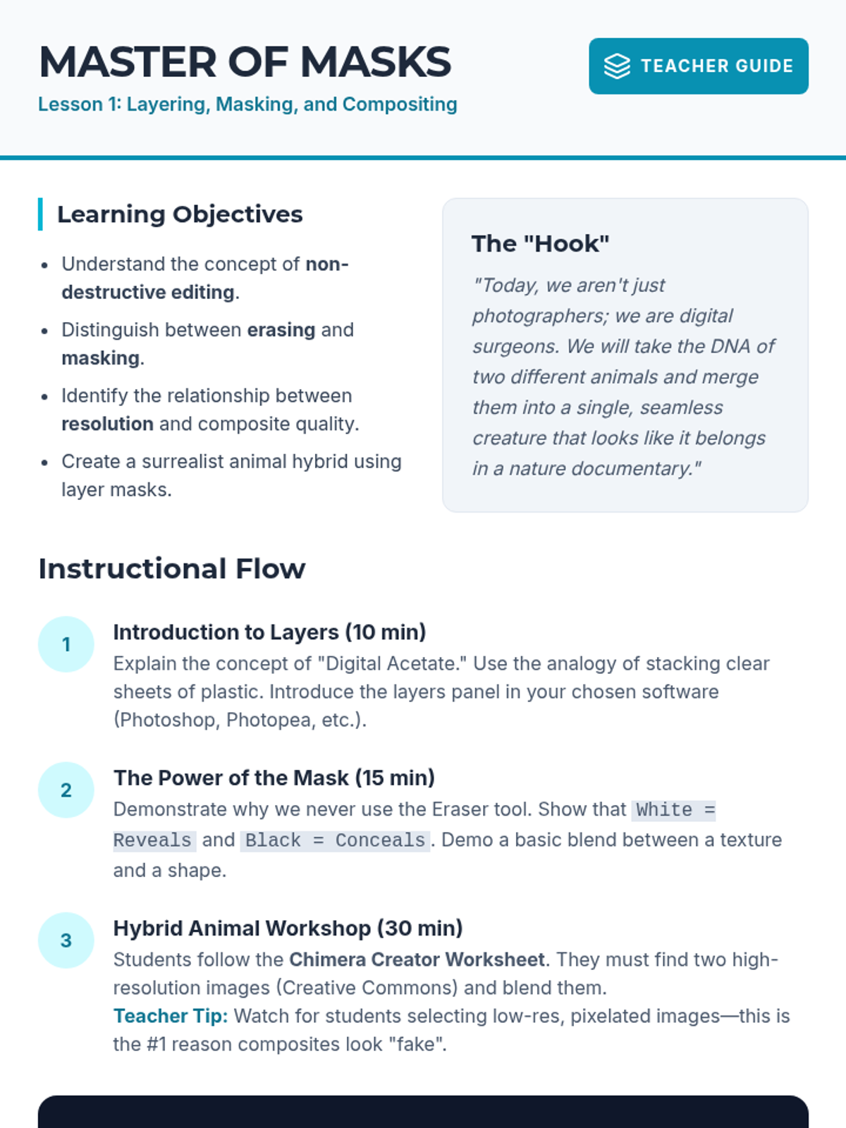 A comprehensive 8th-grade sequence on digital image manipulation and UI design, covering raster editing, ethics, visual hierarchy, and app prototyping. Students progress from basic compositing to creating high-fidelity interface mockups.