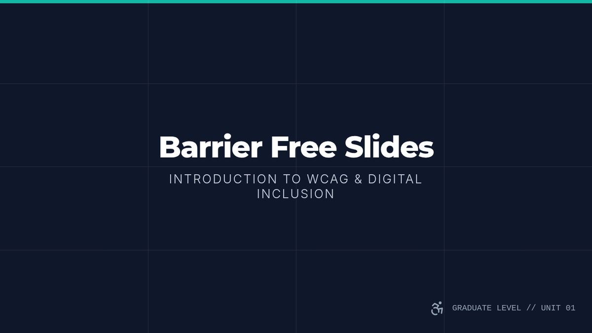 A comprehensive graduate-level sequence on web accessibility, covering WCAG standards, legal compliance, technical implementation of ARIA, and professional auditing techniques.