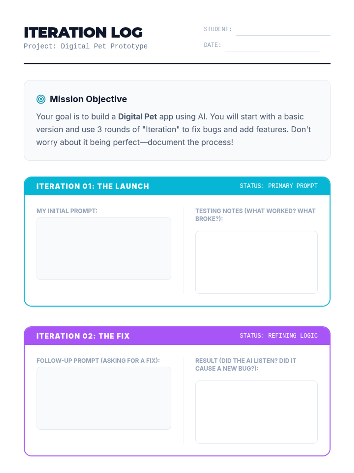 A comprehensive sequence on using AI as a coding partner. Students master the iterative cycle of prompting, testing, and debugging to build functional apps without manual syntax writing.