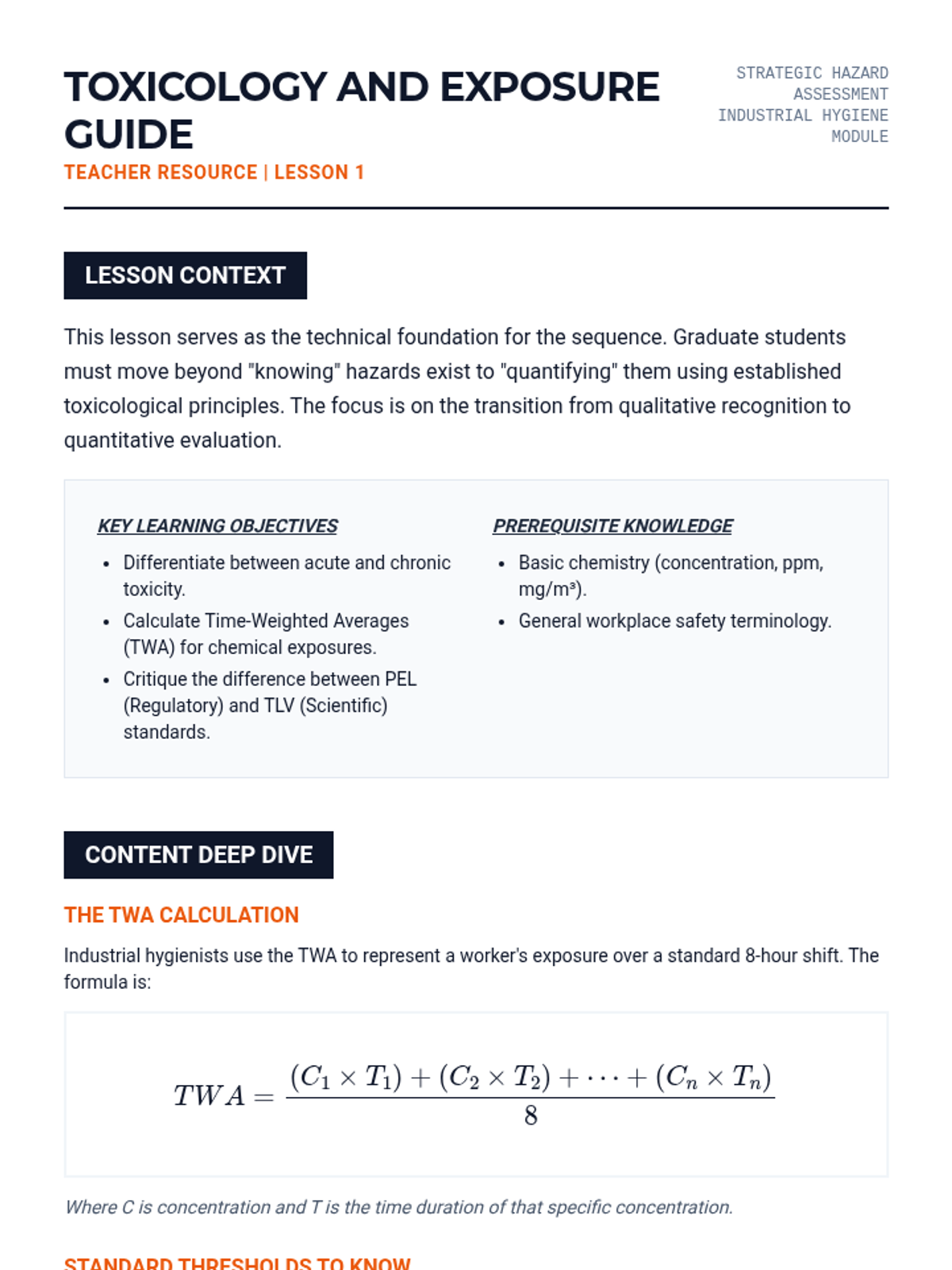 A graduate-level sequence focused on systematic hazard identification and risk control. Students master Industrial Hygiene, Job Hazard Analysis (JHA), Hierarchy of Controls, and Hazard Communication (GHS) to develop predictive safety strategies in high-risk environments.