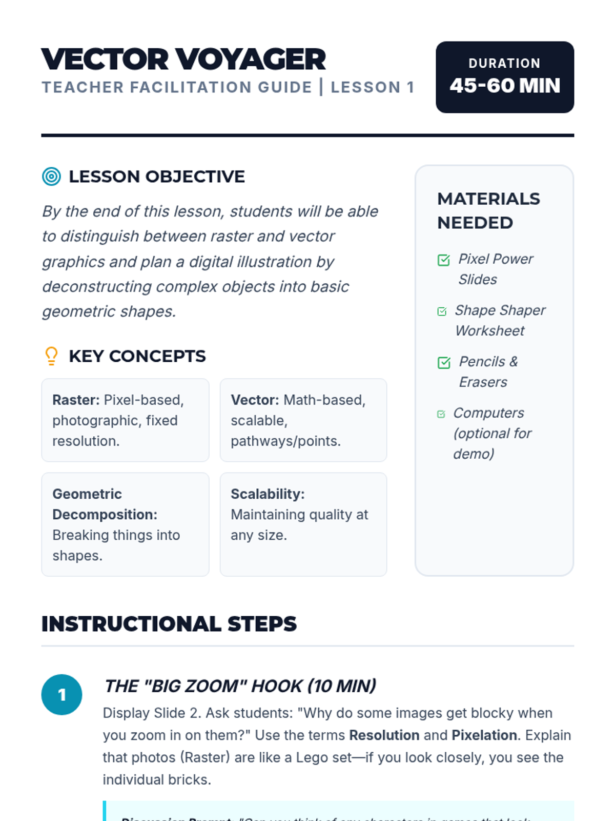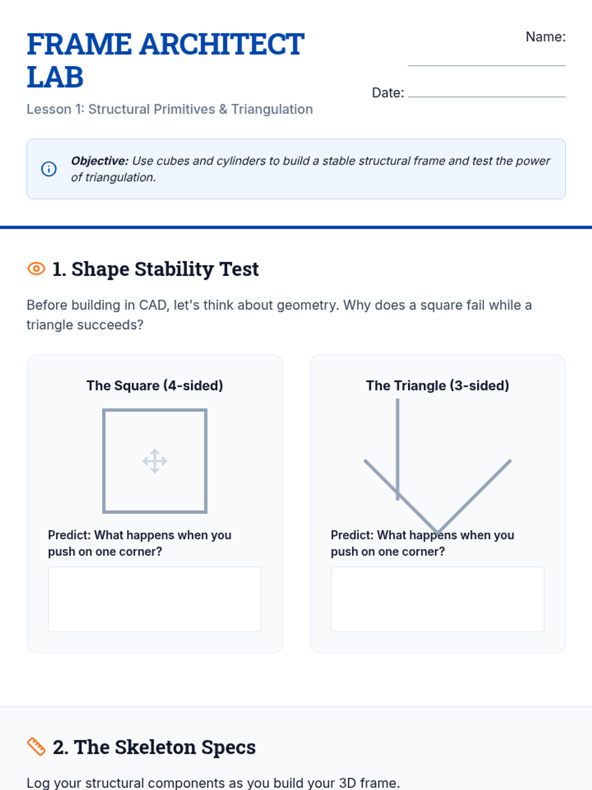 Students explore how geometric shapes like triangles and squares contribute to structural stability through hands-on building and testing. They apply their knowledge of vertices and sides to engineering challenges, concluding with a design review of their own stable structures.