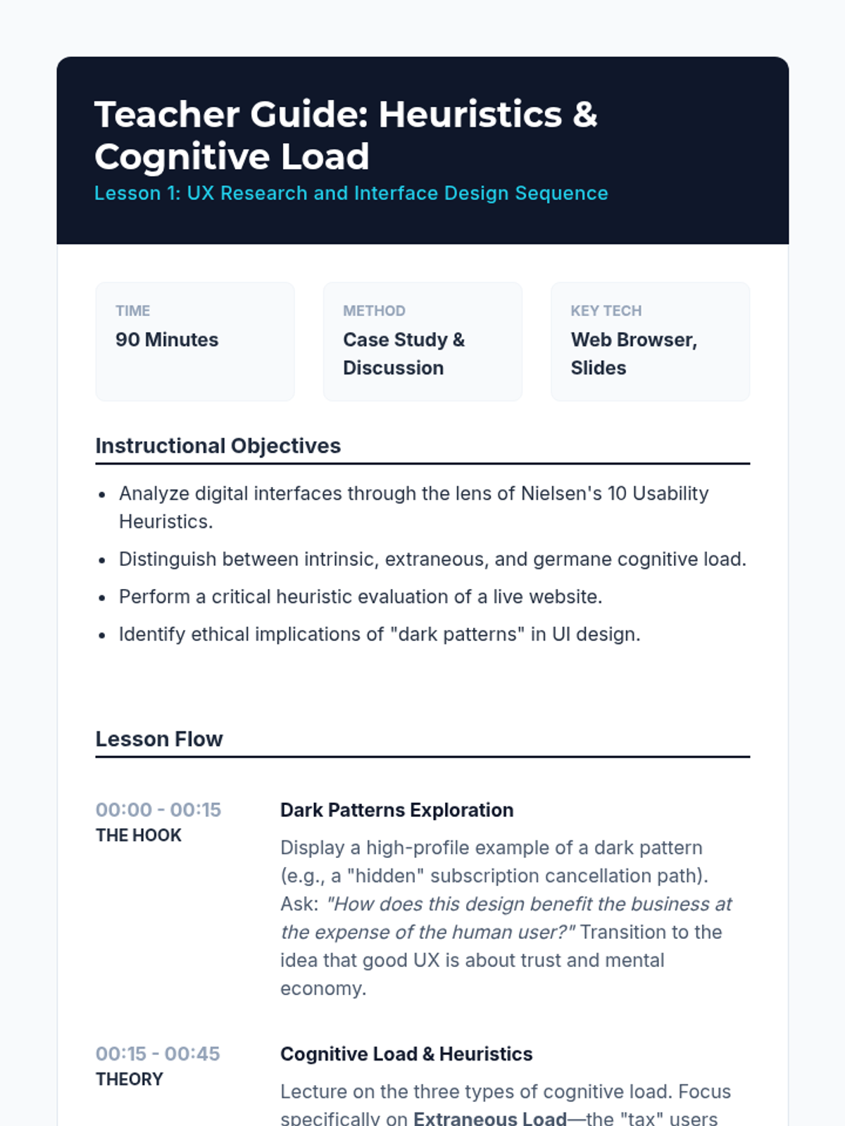 A comprehensive sequence for graduate students exploring the intersection of cognitive psychology and web design. Students move from theoretical usability heuristics to practical wireframing and usability testing, focusing on creating evidence-based digital experiences.