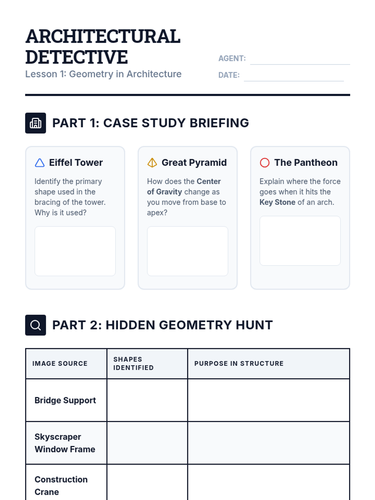 A comprehensive 6th-grade engineering sequence exploring how geometric properties like triangulation, tessellation, and symmetry contribute to structural stability and architectural strength.