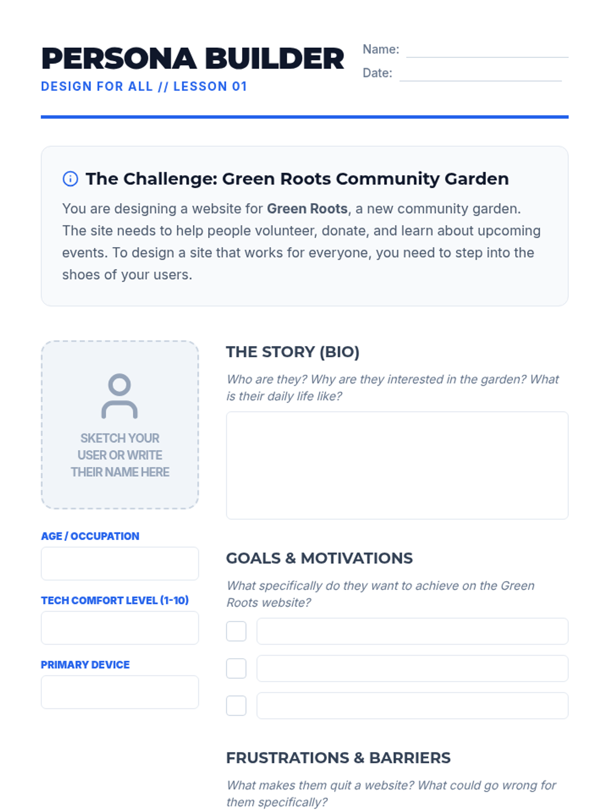 A comprehensive unit on User Experience (UX) and Web Accessibility (A11y) for 9th-grade students. Students move from understanding user needs through persona creation to planning inclusive digital spaces using wireframes and WCAG standards.