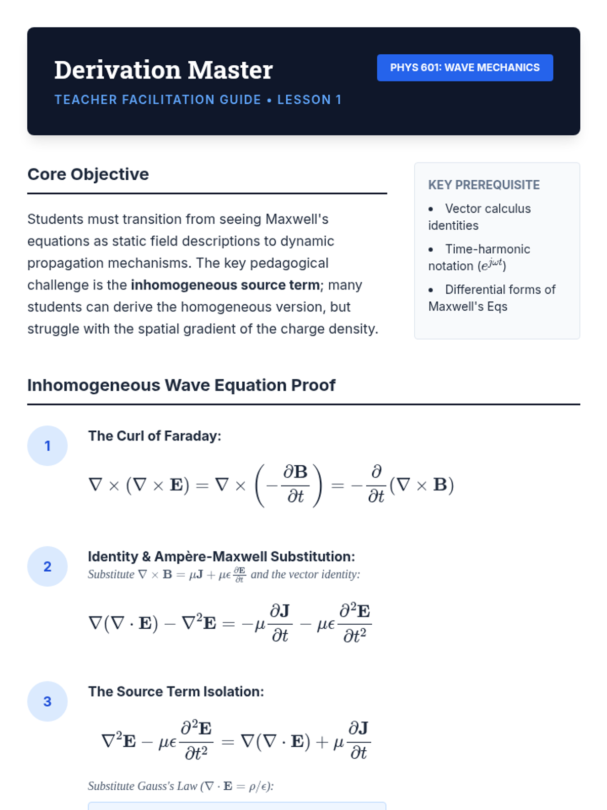 An advanced theoretical sequence exploring the mathematical foundations of wave propagation, from Maxwell's equations to complex scattering theory. Designed for graduate students in physics and electrical engineering.