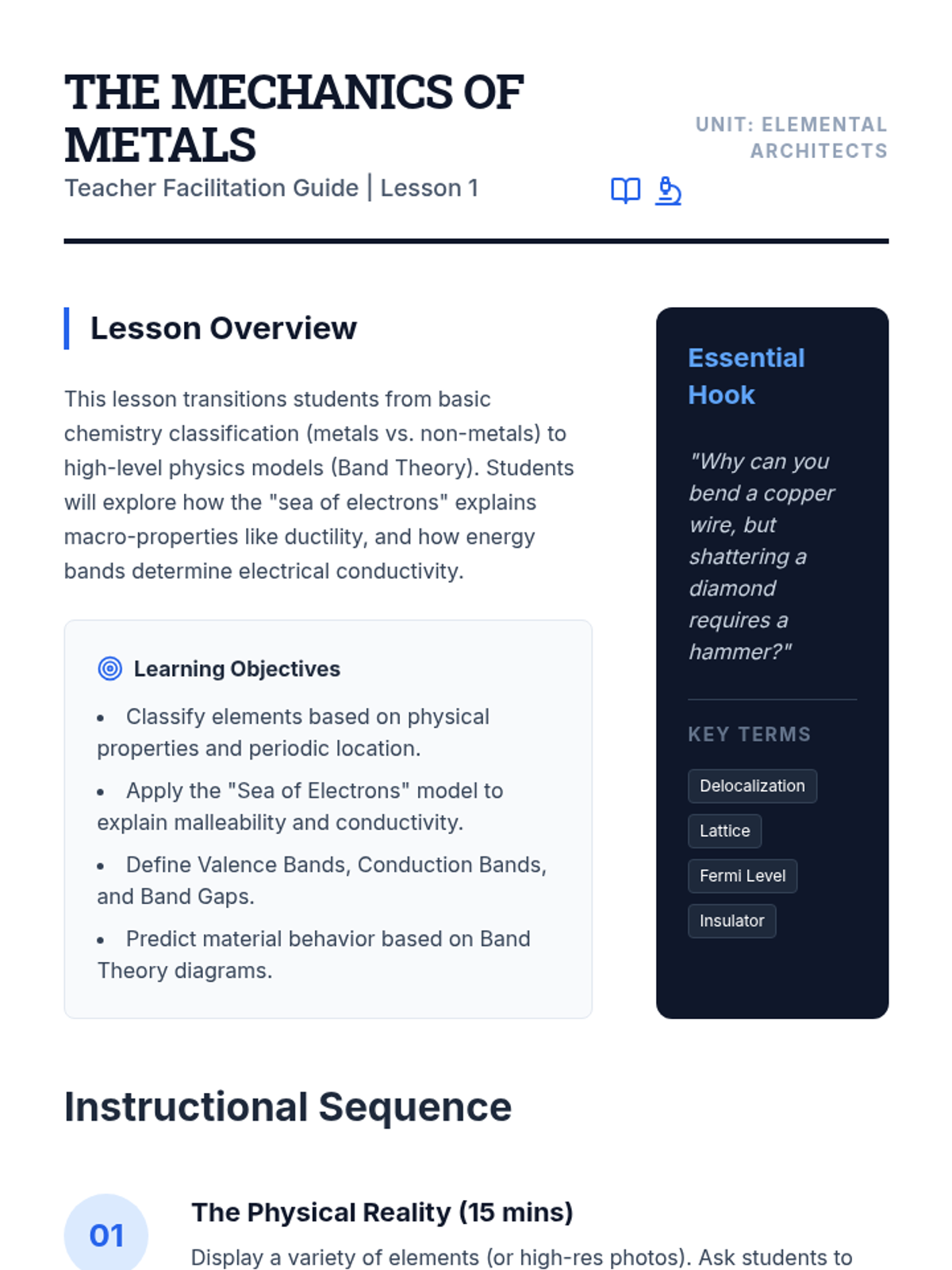 This sequence bridges physics and chemistry to explore the geometric arrangements of atoms in solid matter. Students investigate crystal lattices, unit cells, and packing efficiency, understanding how microscopic geometry dictates macroscopic properties like density and conductivity.