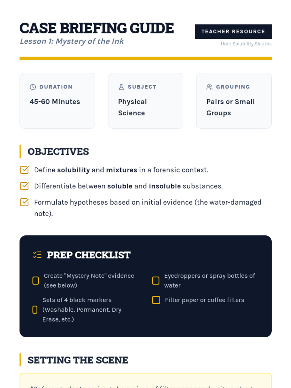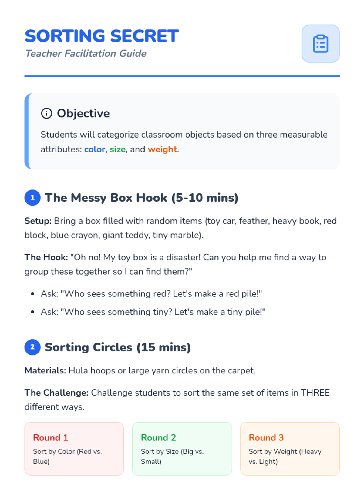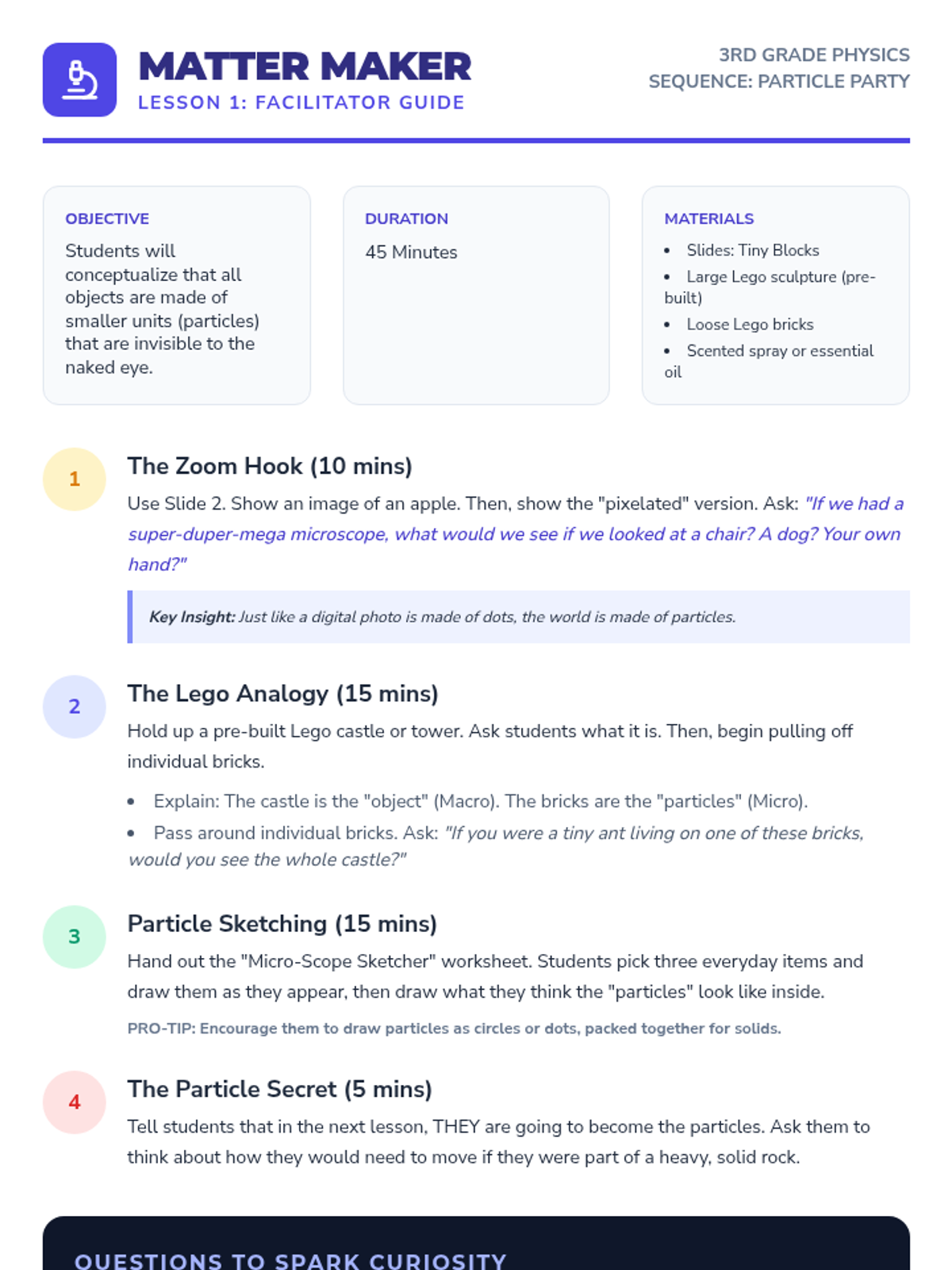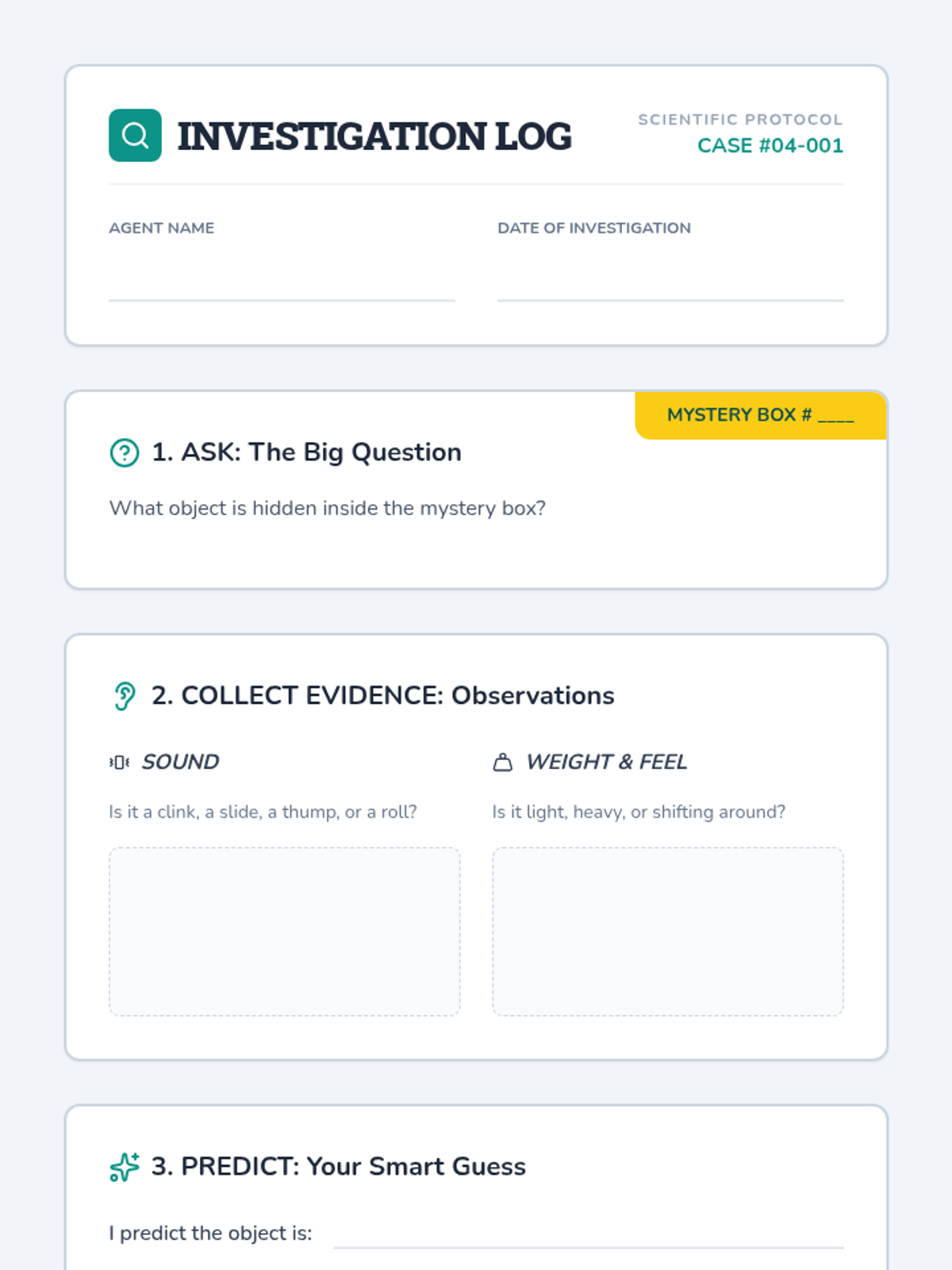 A lesson sequence focused on the scientific method, using a mystery box activity to practice observation, hypothesis formation, and experimentation. Students explore the historical roots of the method and apply it to solve physical puzzles.