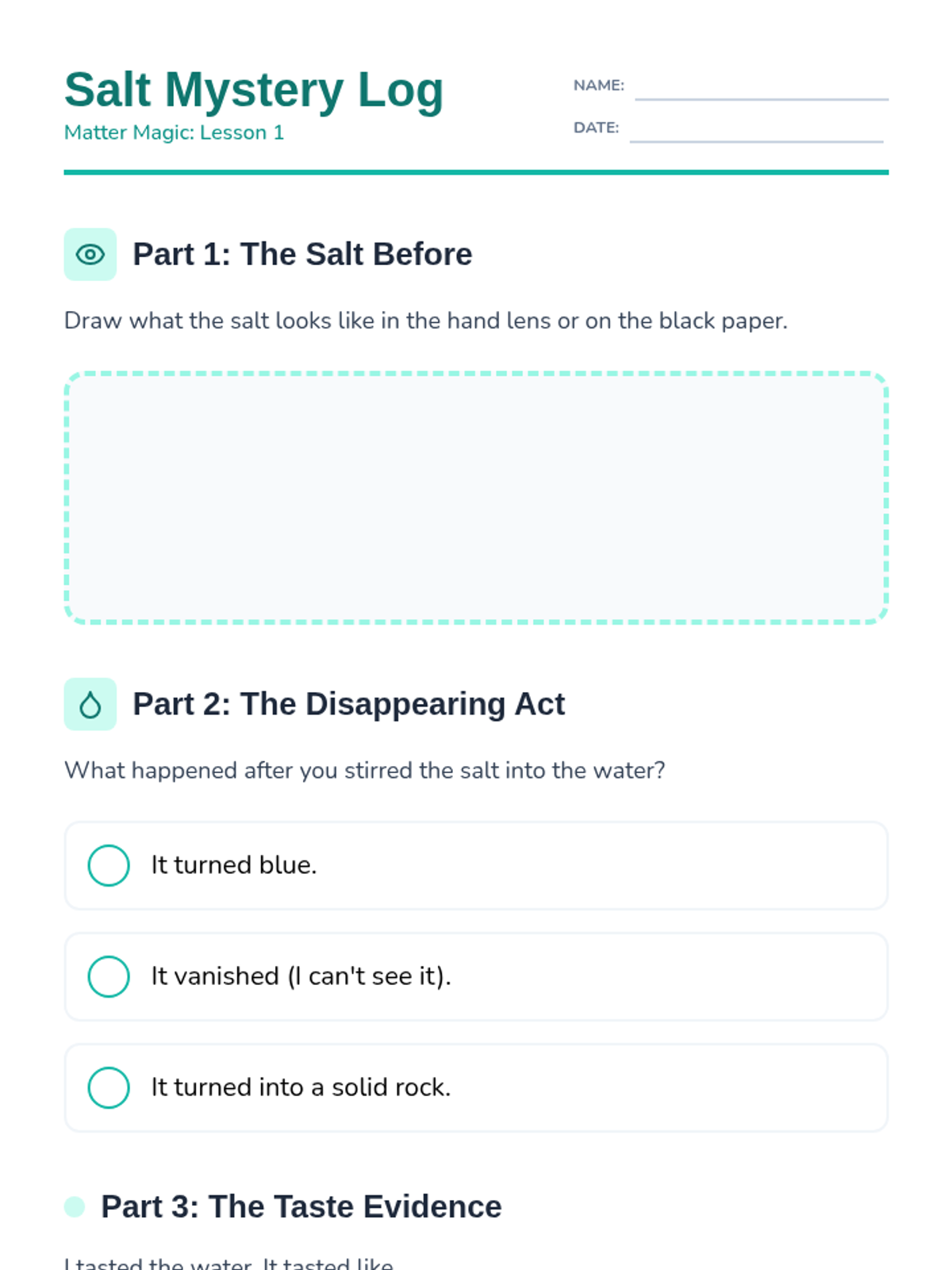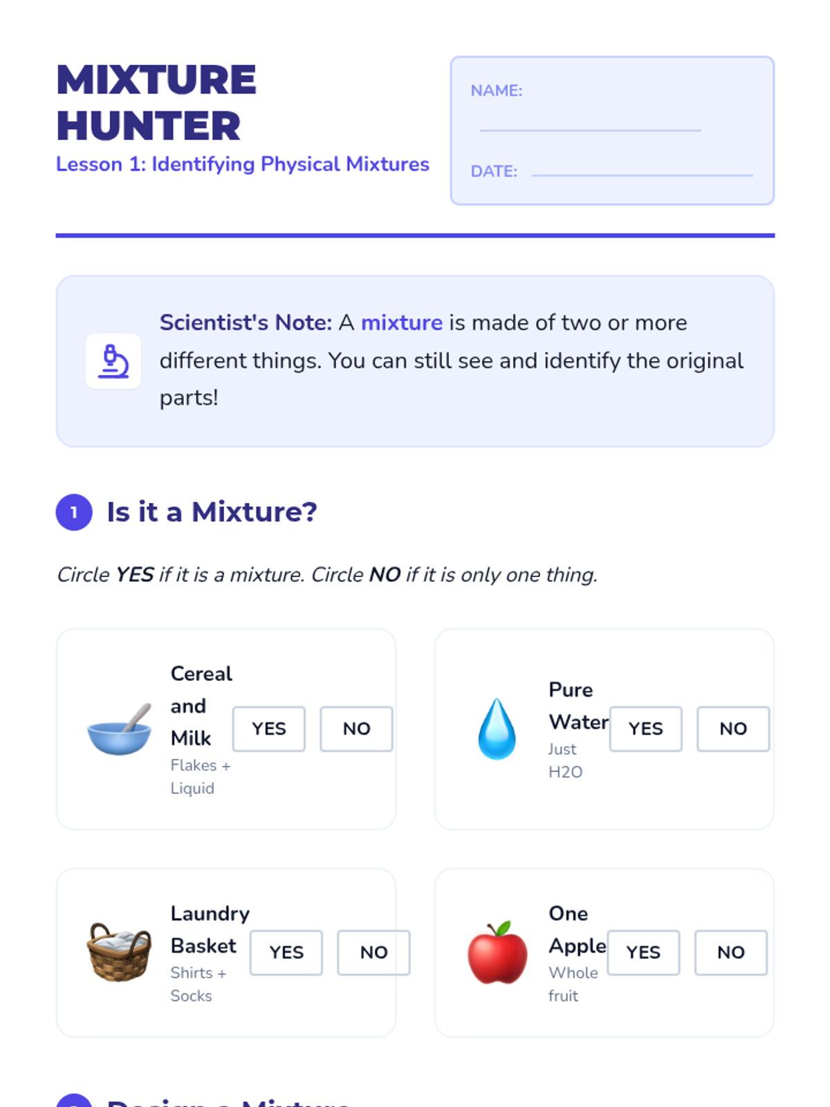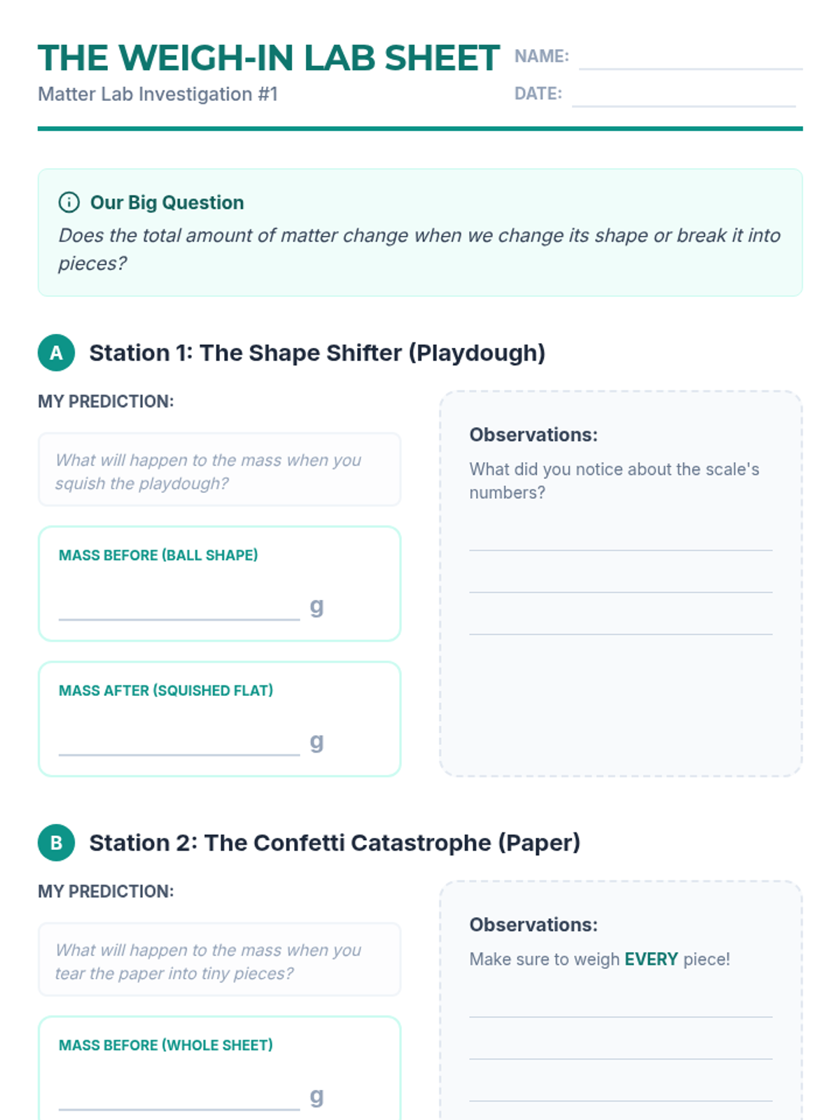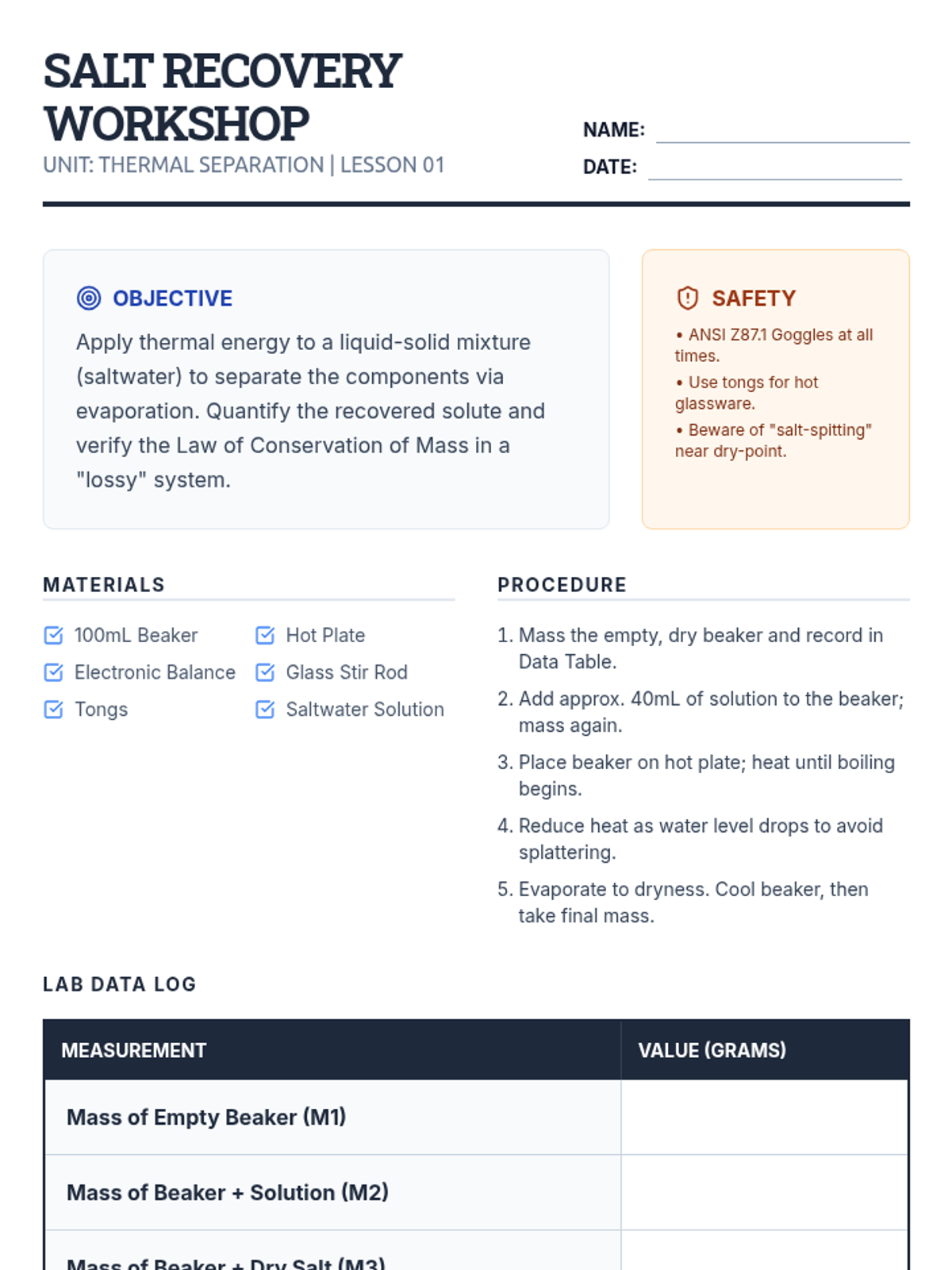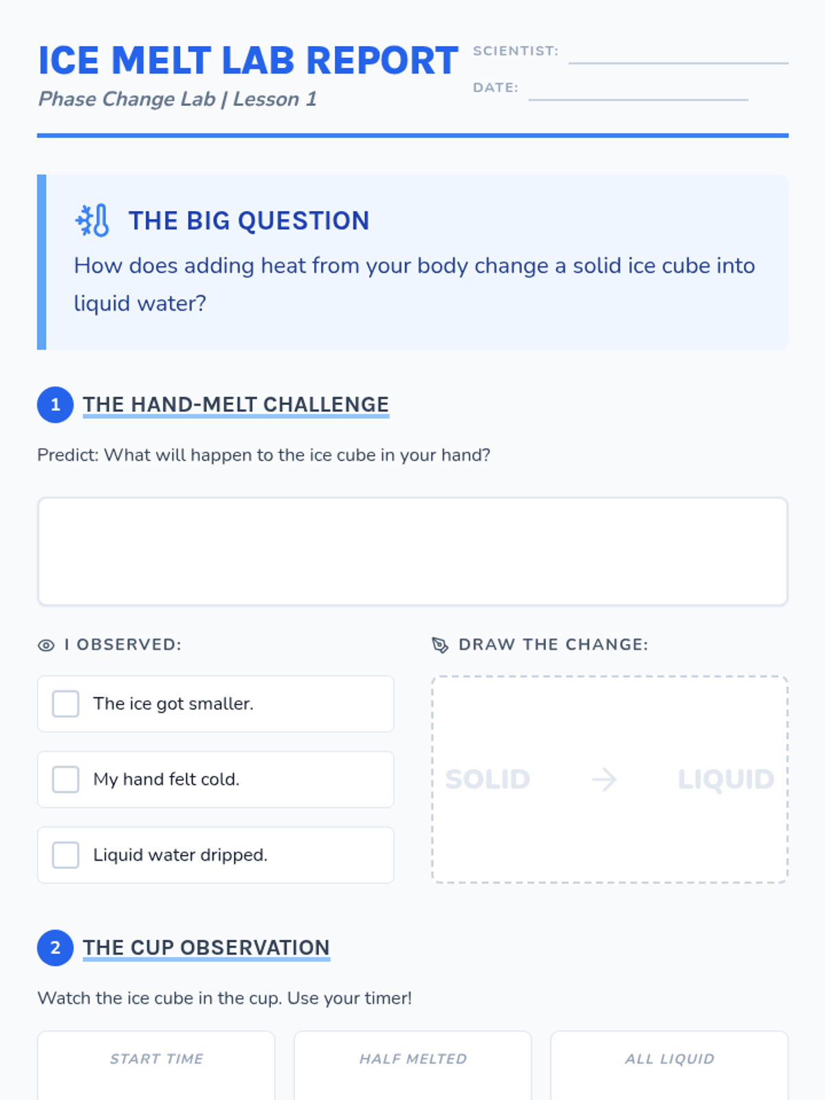 A 2nd-grade chemistry sequence where students transform into lab technicians to master measuring liquid volume and mass. Through hands-on 'Lab Mixing Station' activities, students learn to use beakers, graduated cylinders, and balance scales to follow precise formulas for chemical reactions.