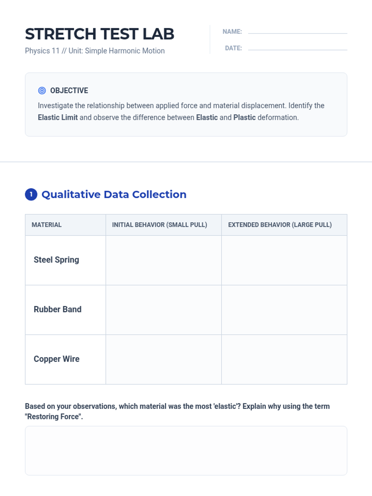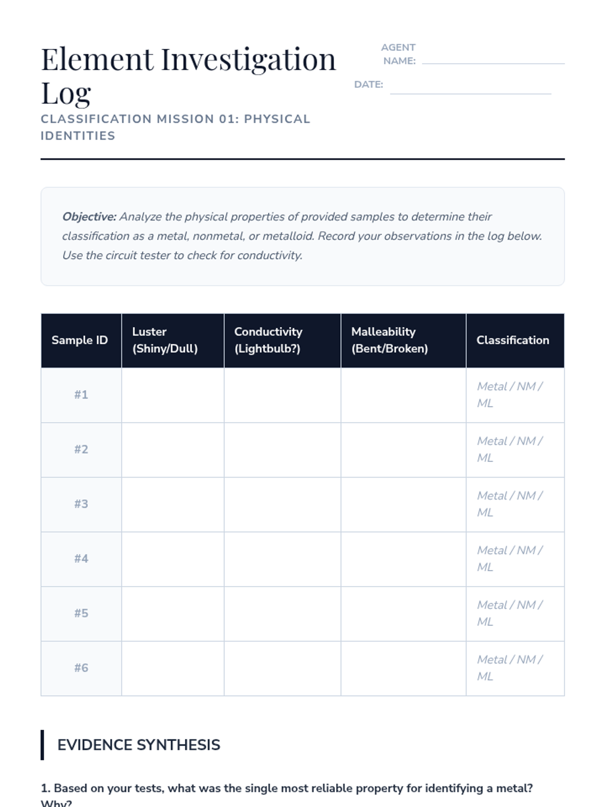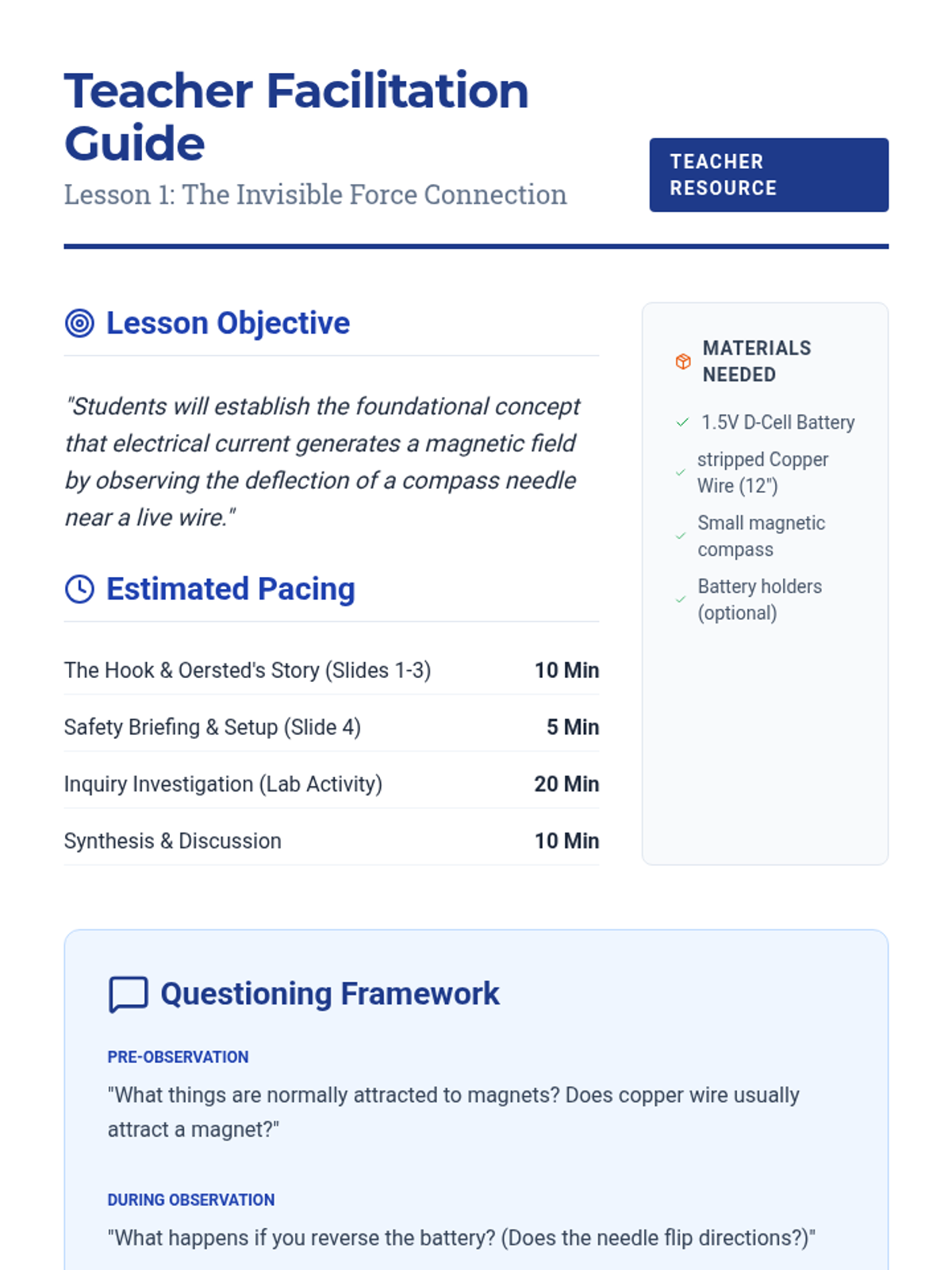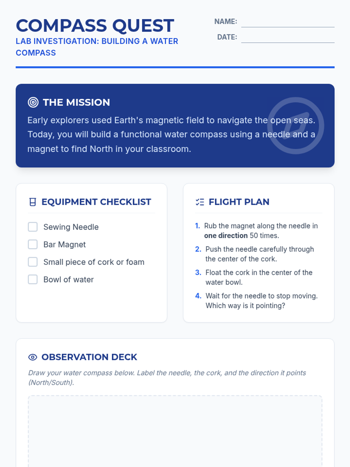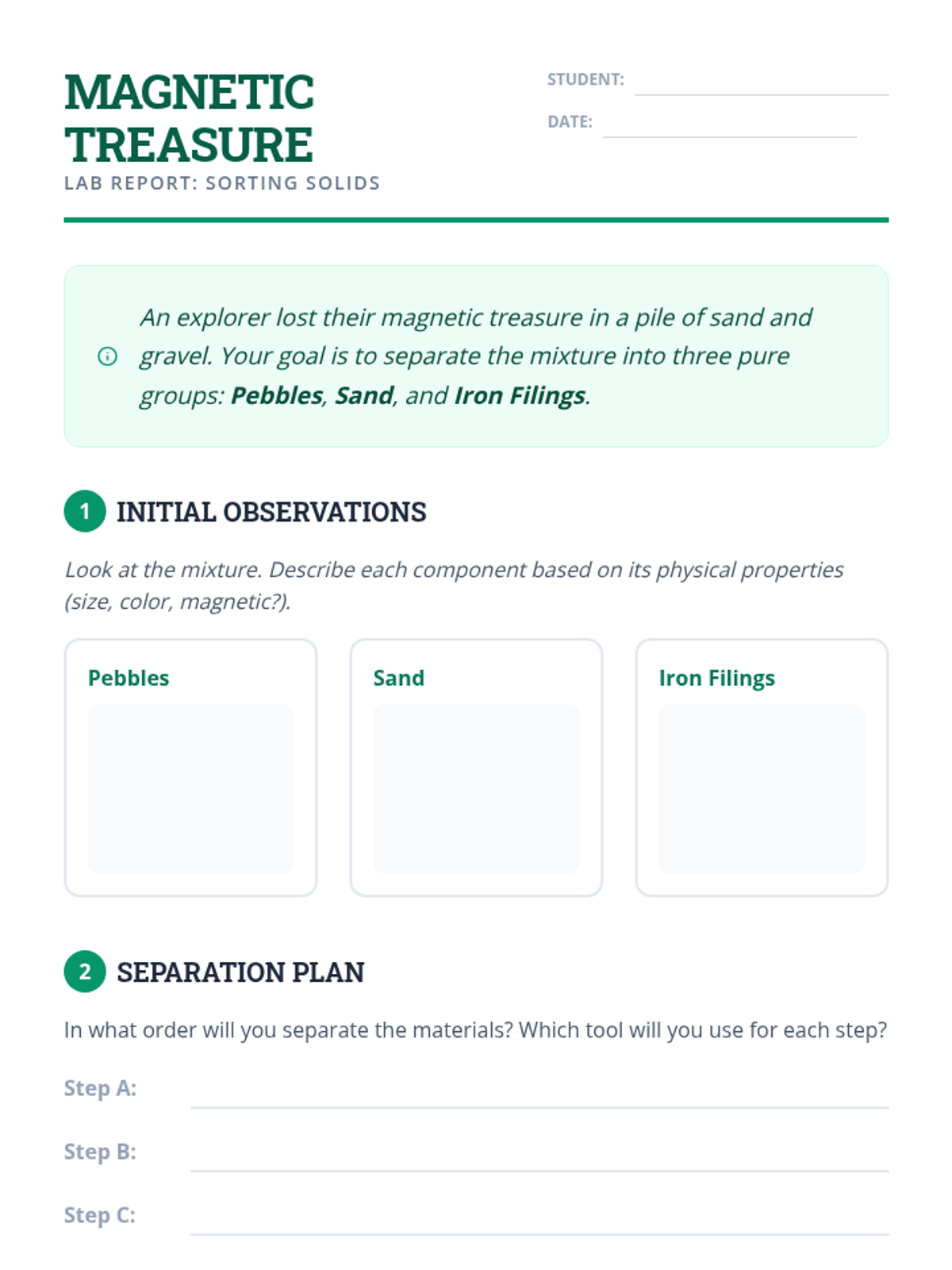 A hands-on exploration of magnetism for 2nd-grade students, focusing on material properties, metal identification, and force through barriers. Students move from basic classification to evidence-based prediction.