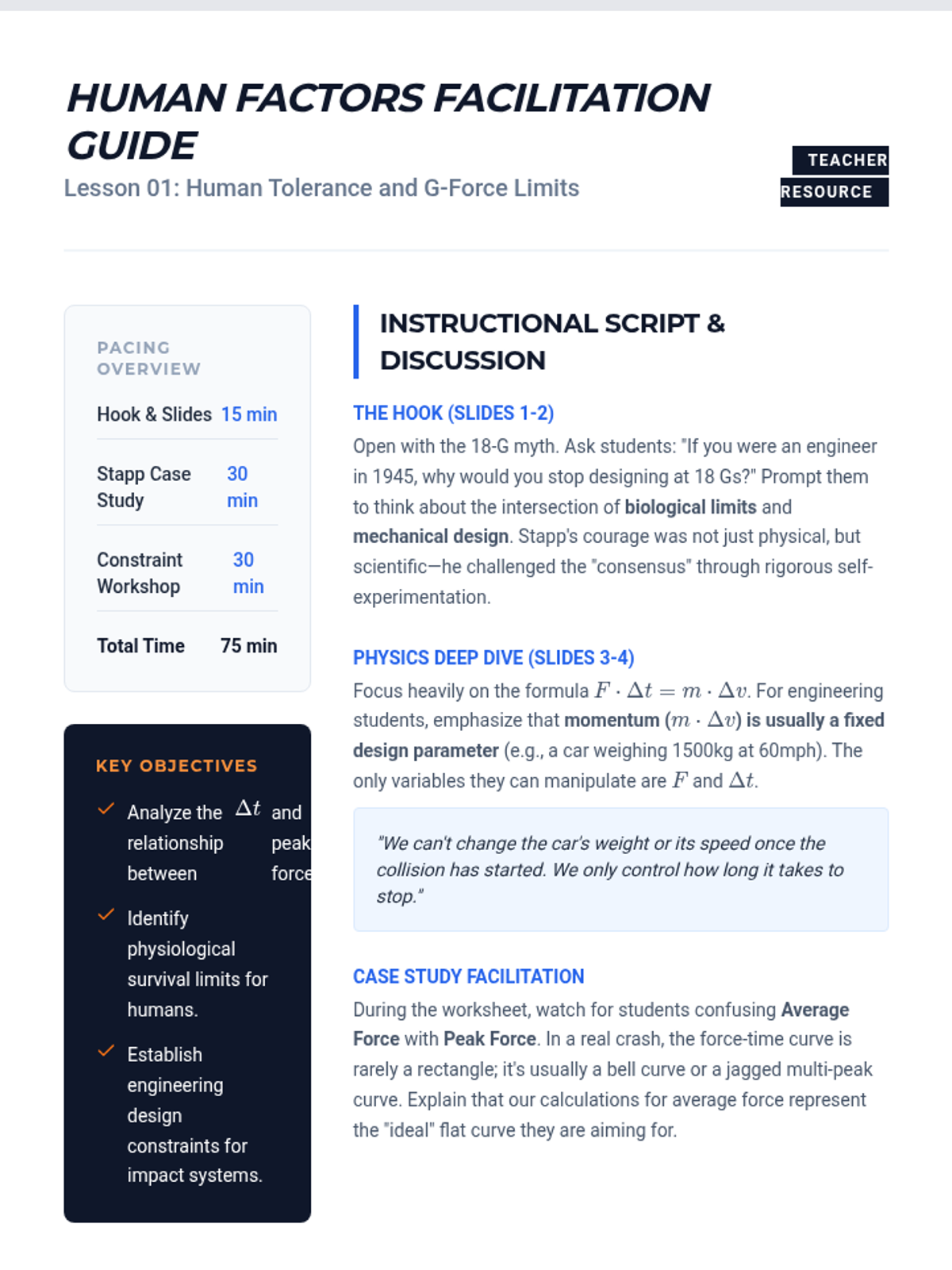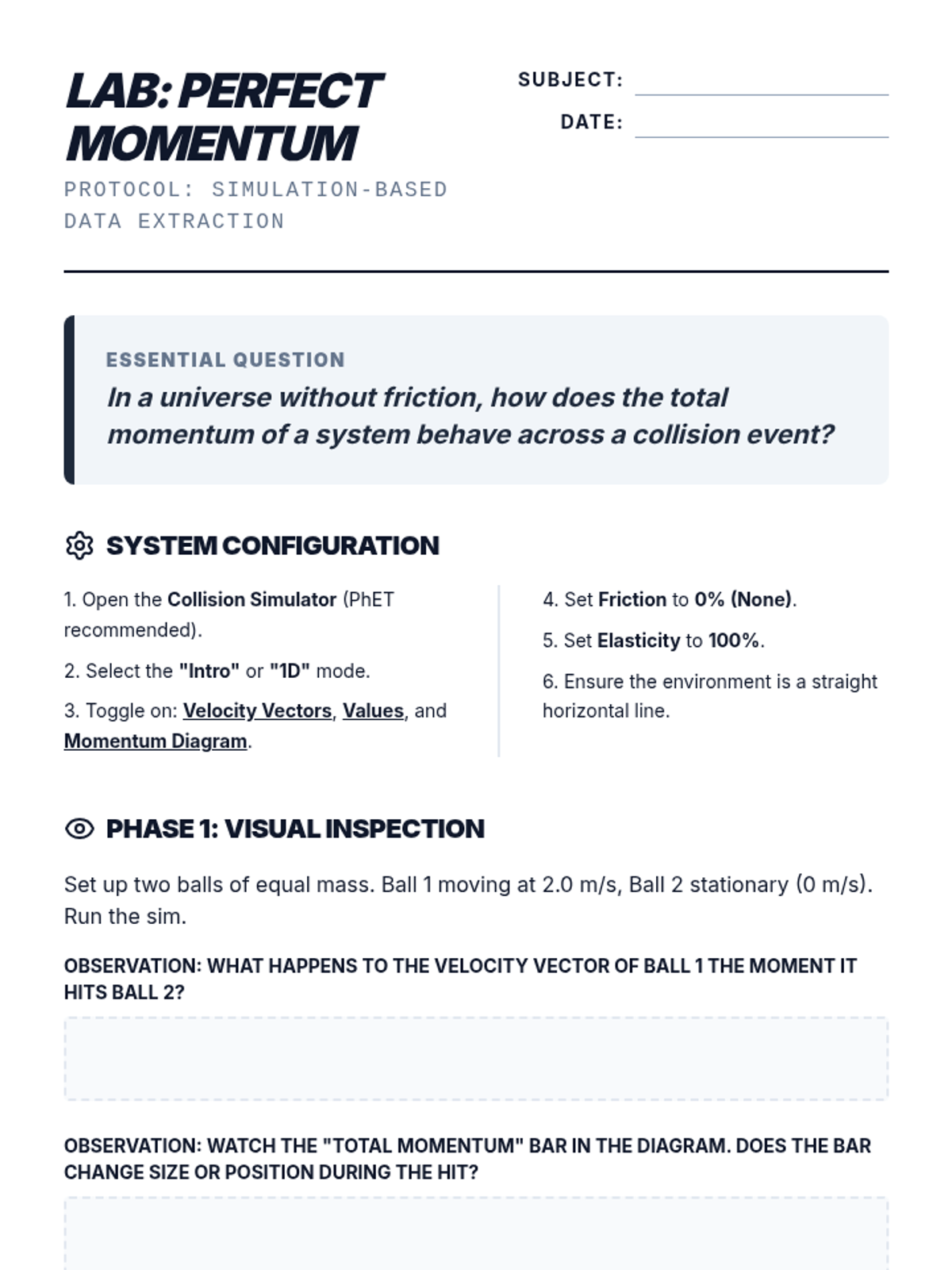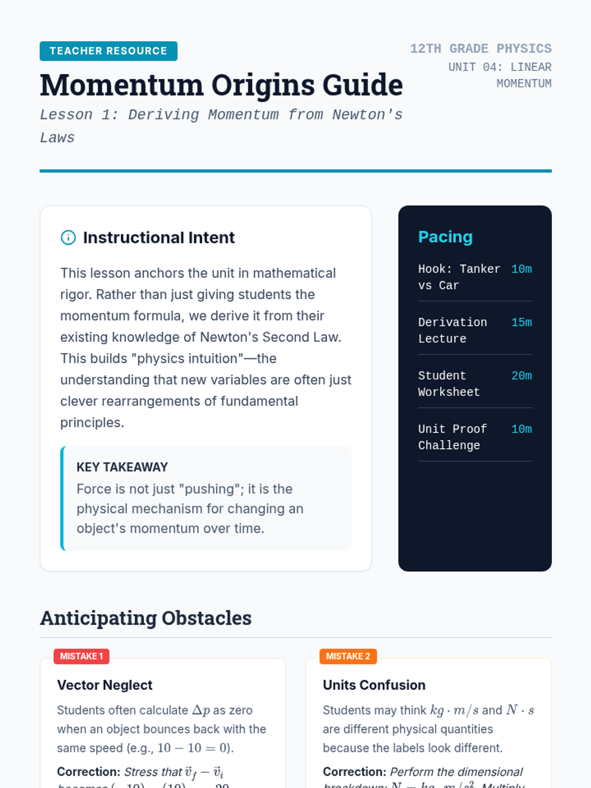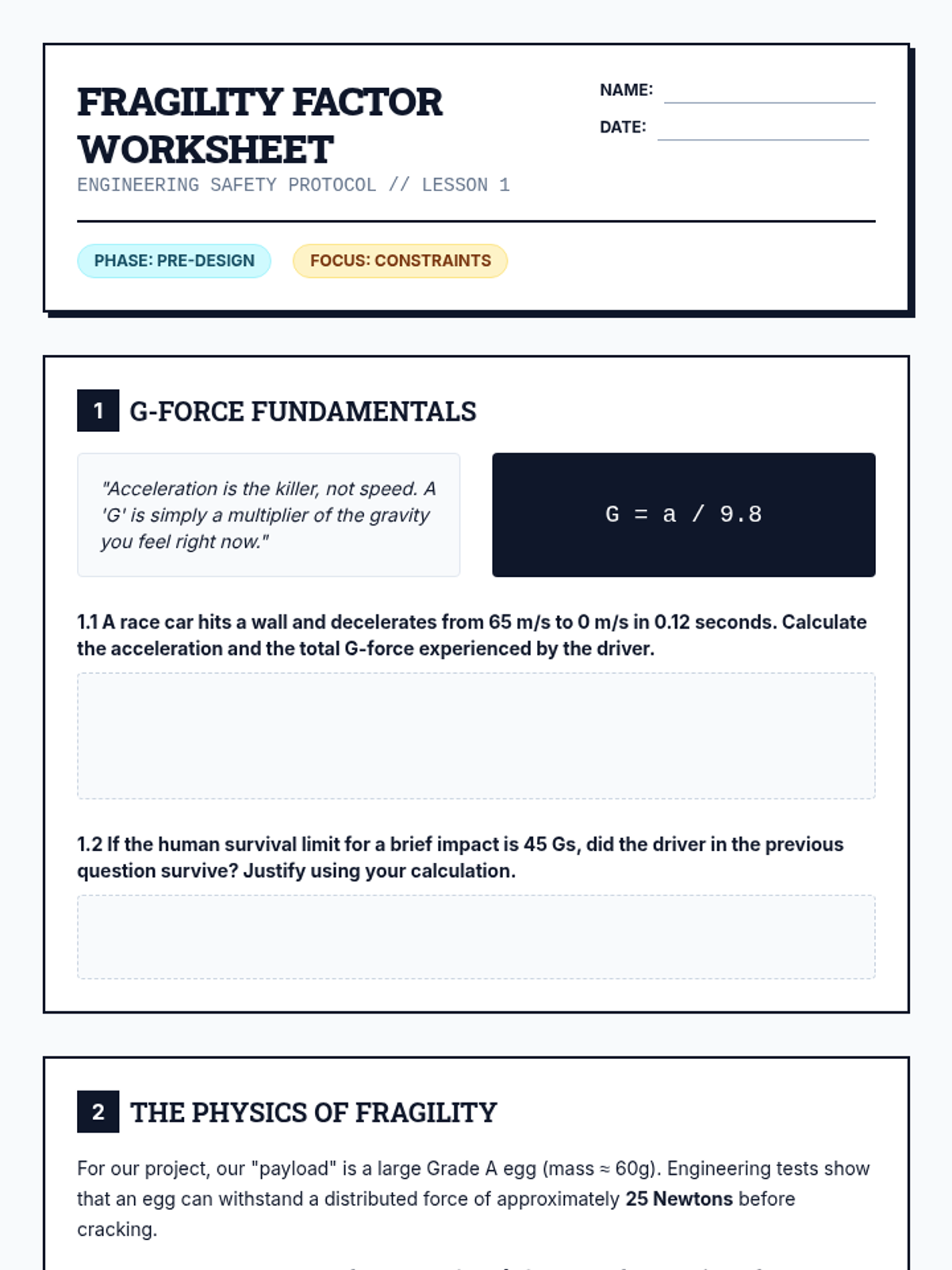 A 12th-grade Physics project-based unit exploring momentum and impulse through the lens of impact safety engineering. Students design, test, and iterate on a safety containment unit, using the impulse-momentum theorem to protect a fragile payload.