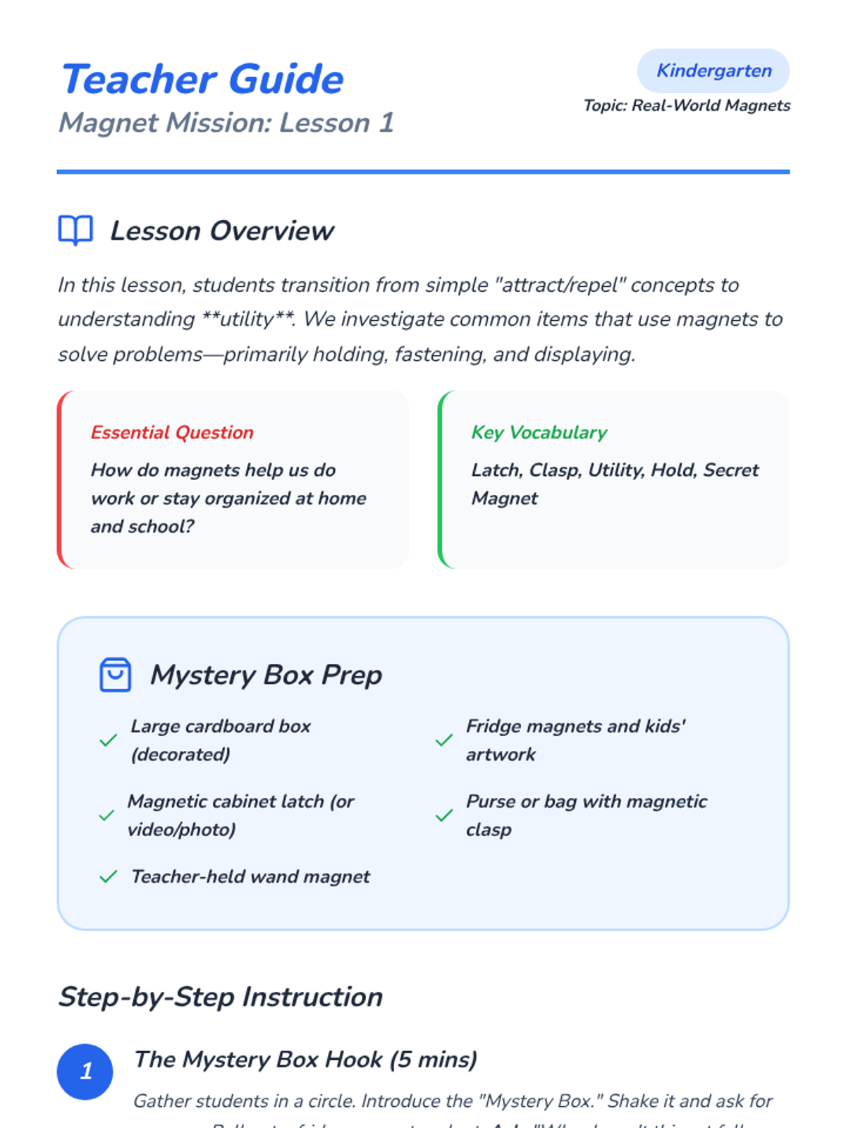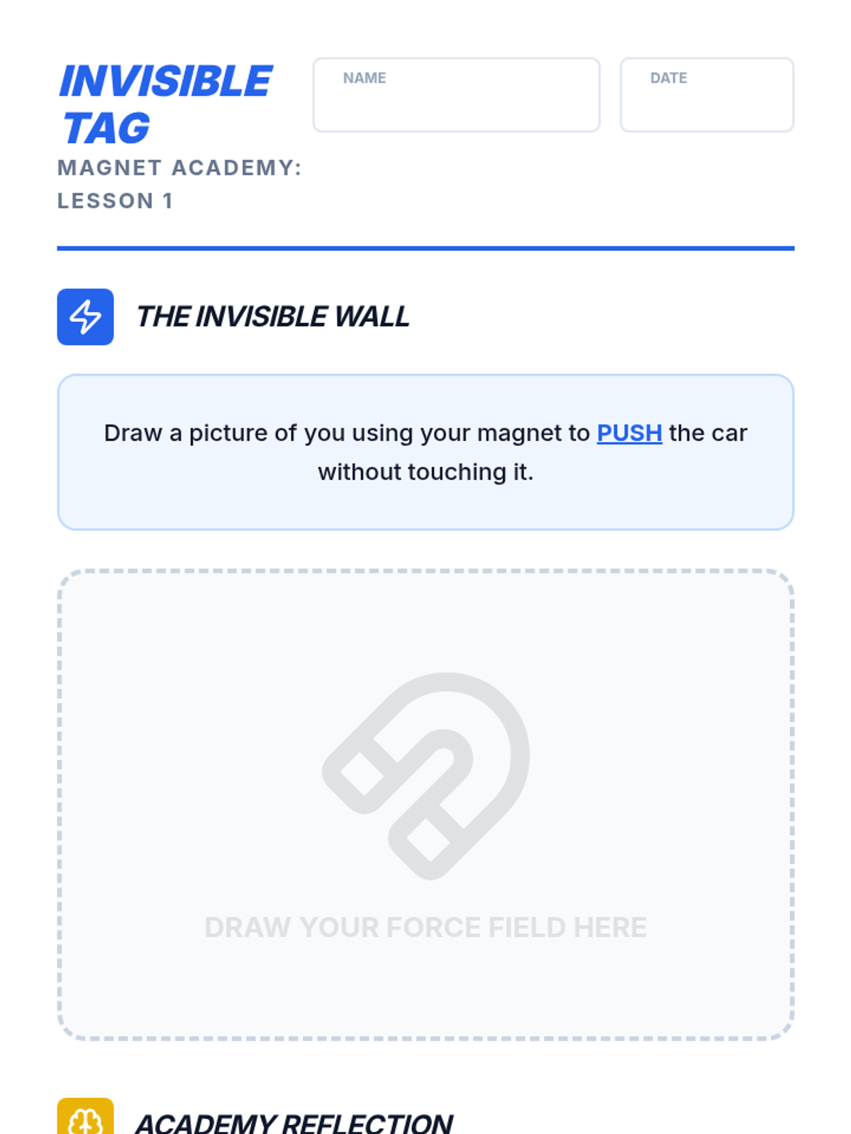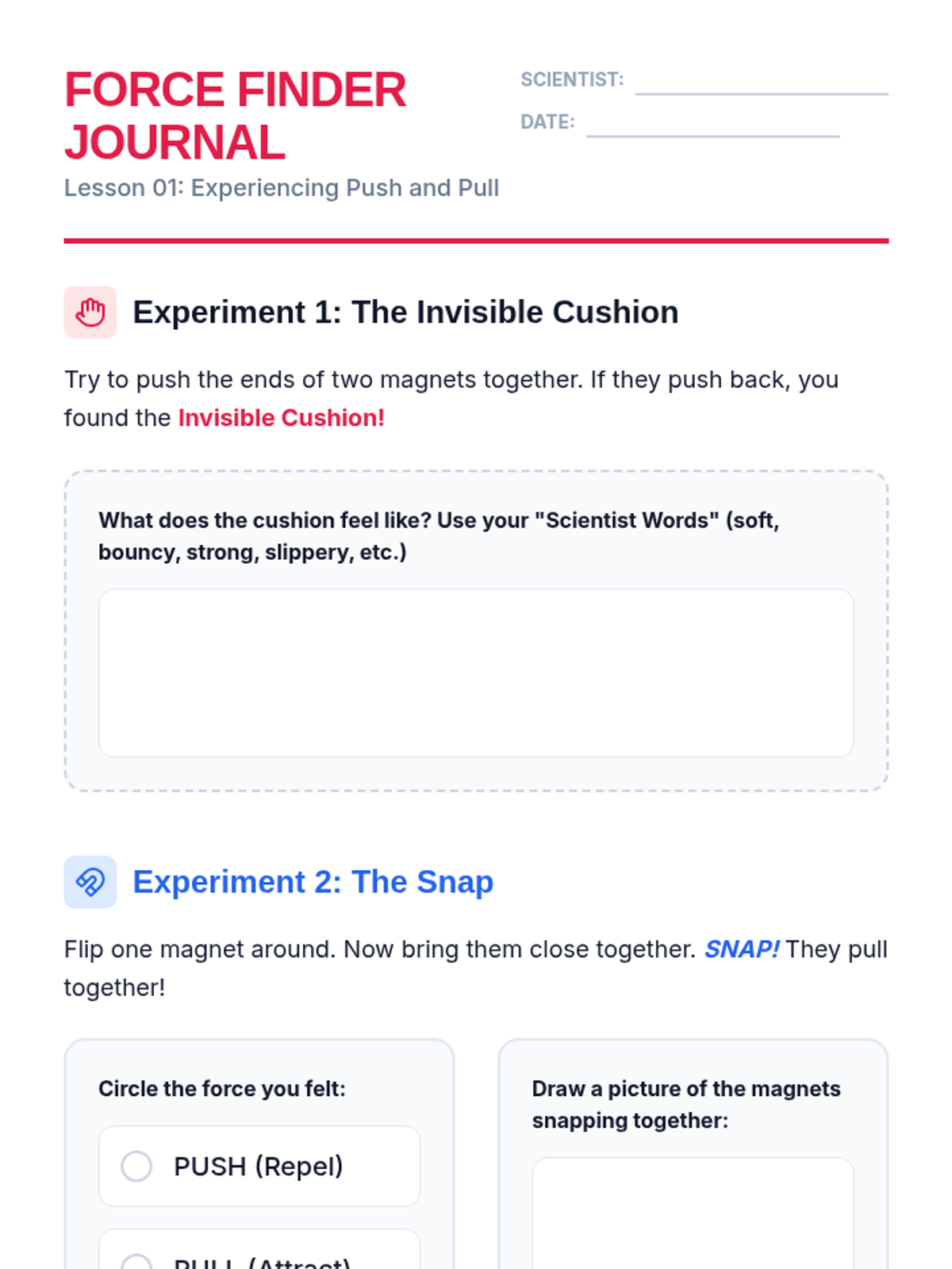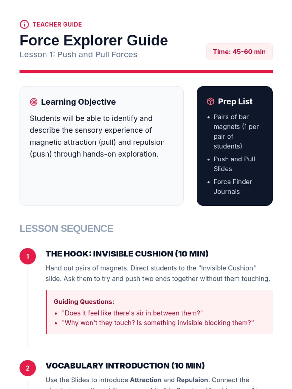 A high-energy, game-based sequence for Kindergarten students to explore the invisible forces of magnetism, including repulsion, attraction, and field strength. students engage in hands-on simulations and interactive challenges to understand how magnets interact with the world.