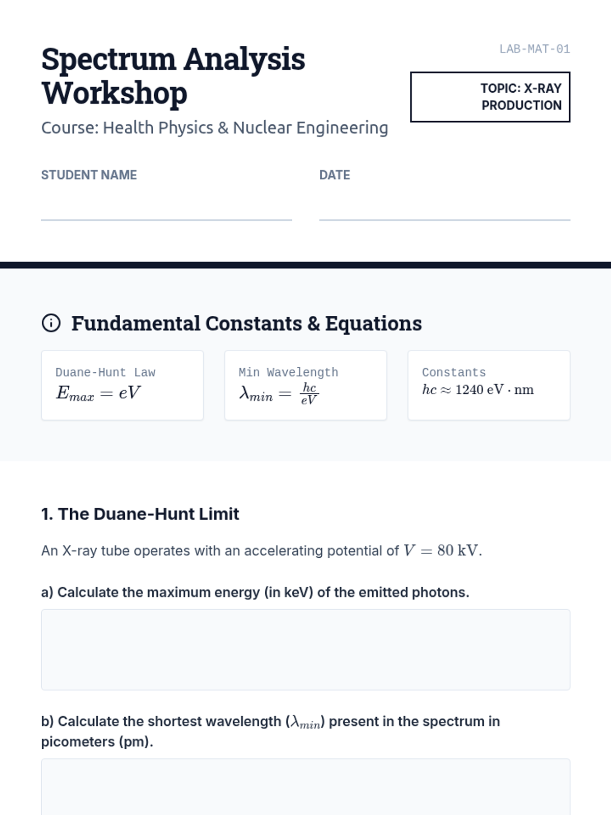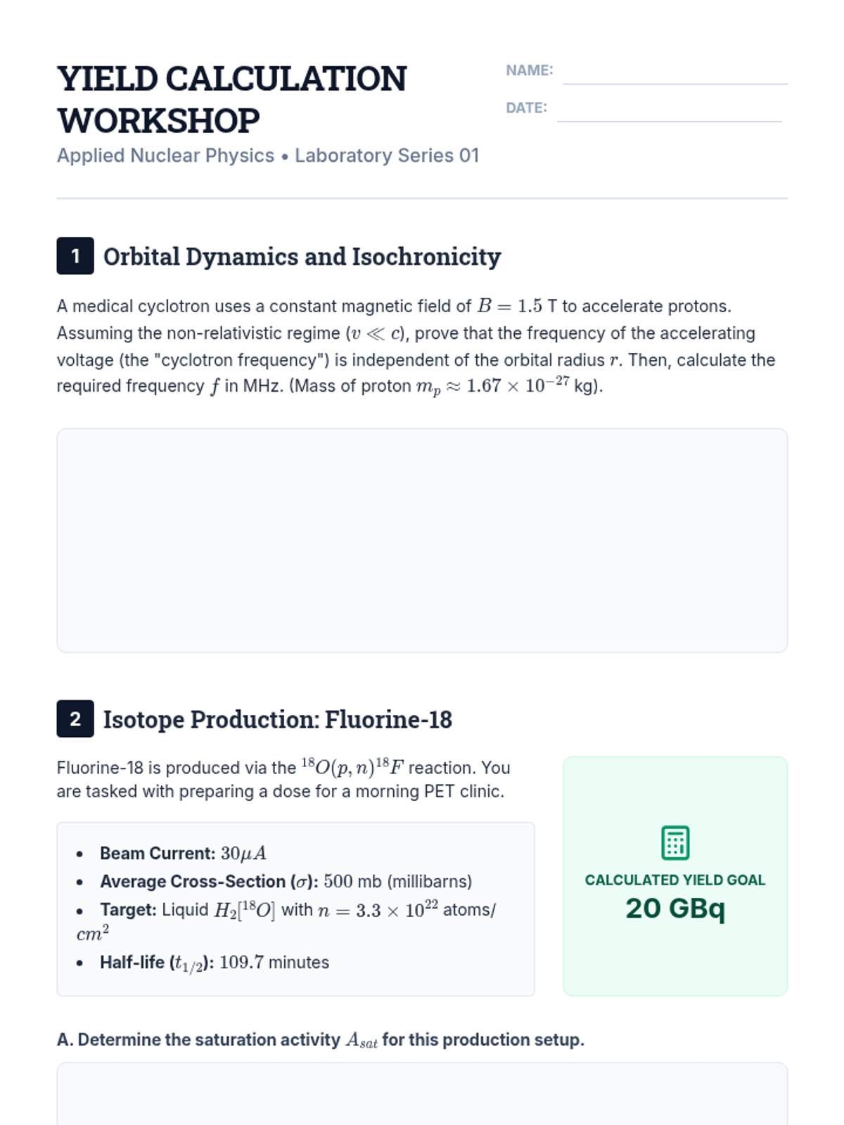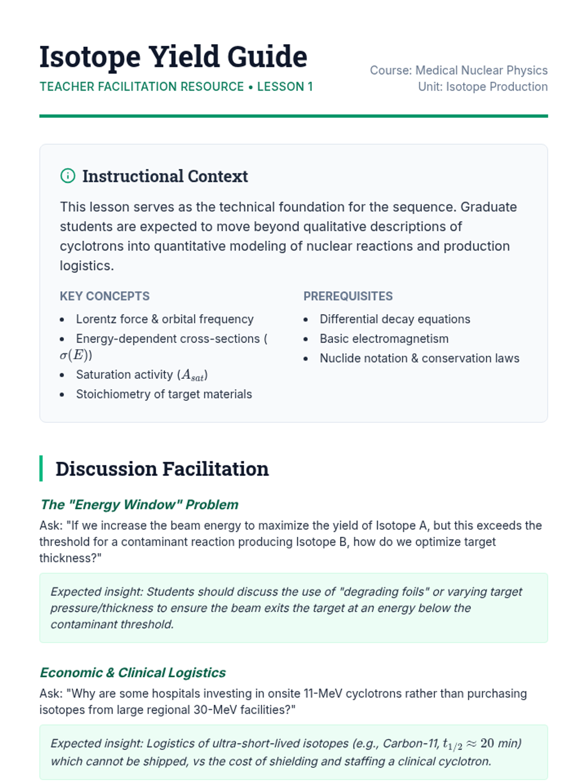 This graduate-level sequence explores the intersection of nuclear physics and medical application, covering isotope production, diagnostic imaging (PET/SPECT), radiation therapy physics, radiobiology, and shielding design. Students apply advanced decay kinetics, interaction physics, and dosimetry principles to solve real-world clinical and industrial problems.