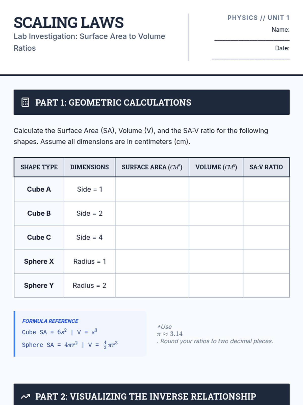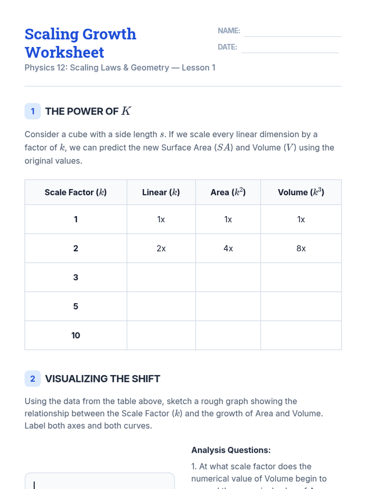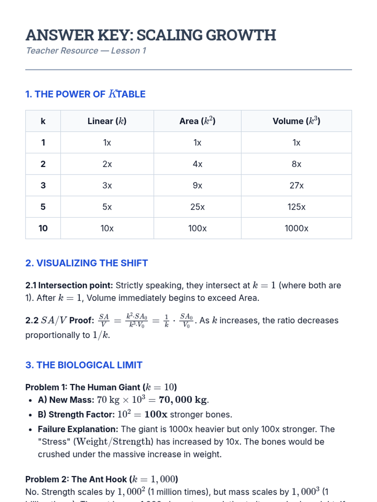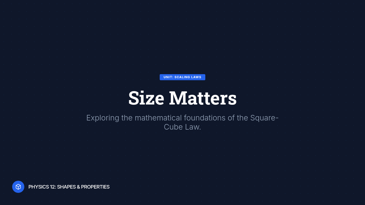 This sequence investigates the Square-Cube Law and scaling relationships, examining how changes in an object's dimension affect its surface area, volume, and physical behavior. Students analyze biological constraints, structural engineering limits, and thermal properties through the lens of geometric proportions.
