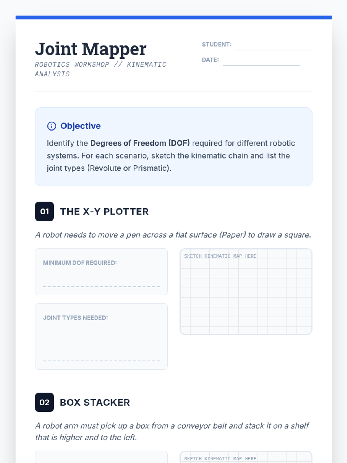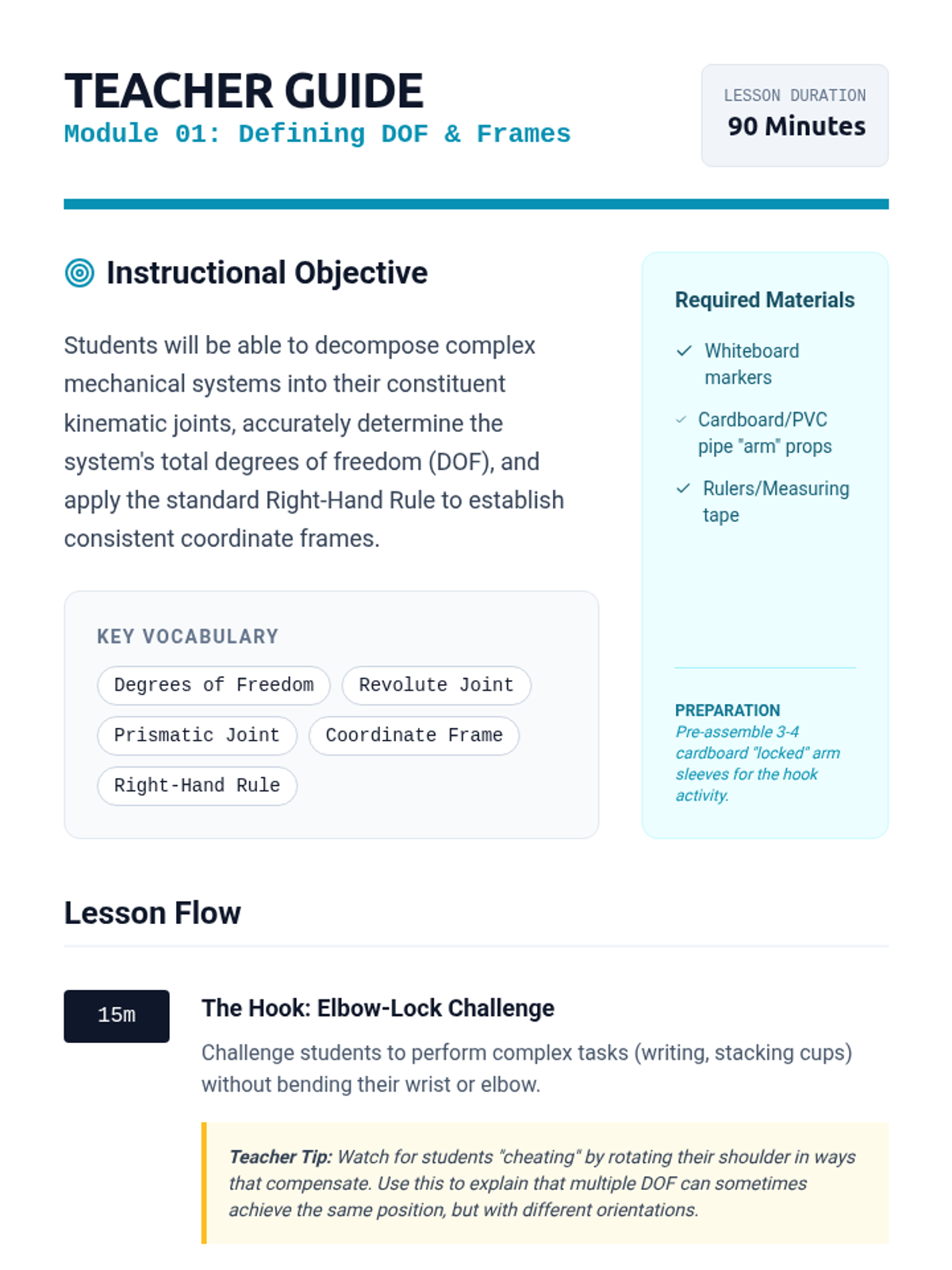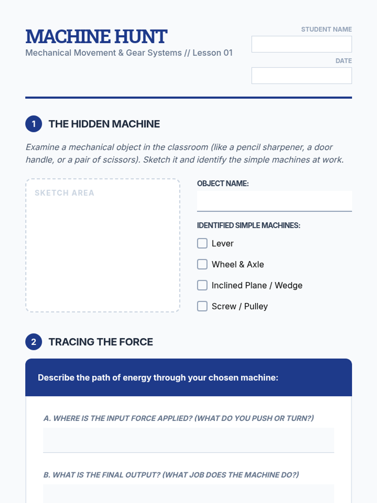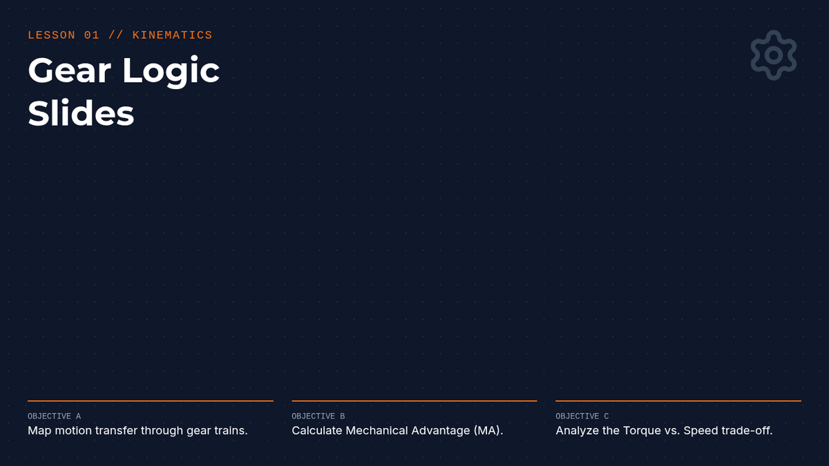 This sequence explores the physical principles of robotics, focusing on kinematics, gear systems, and mechanical advantage. Students will progress from simple machines to designing and testing a motorized chassis for varied terrain.