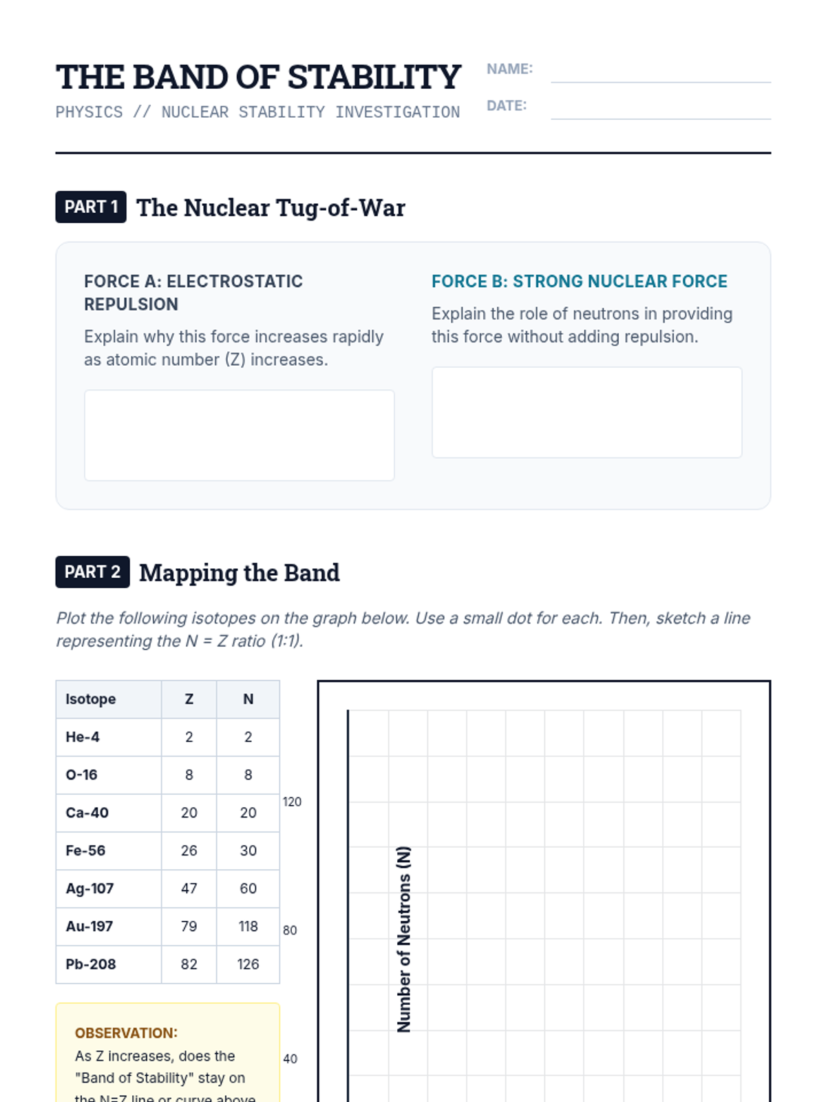 This sequence explores the physical limits of the periodic table, nuclear stability, and the synthesis of transuranium elements. Students analyze nuclear forces, decay mechanisms, and the theoretical 'Island of Stability' to understand the boundaries of matter.