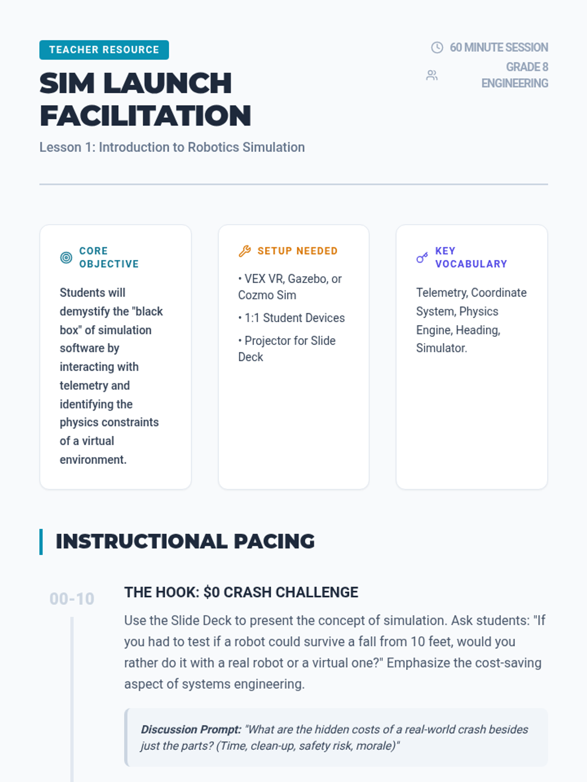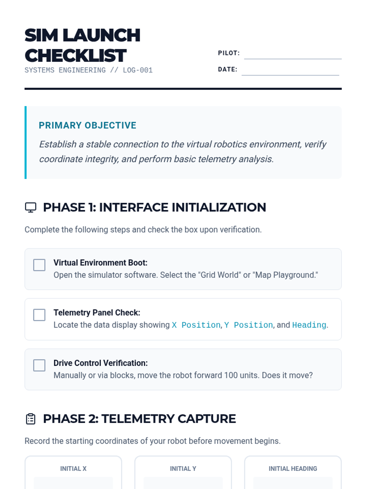 This sequence explores robotic systems engineering through the lens of virtual simulation. Students learn to navigate simulators, analyze high-fidelity sensor data, and understand the critical 'Sim-to-Real' gap in engineering design.