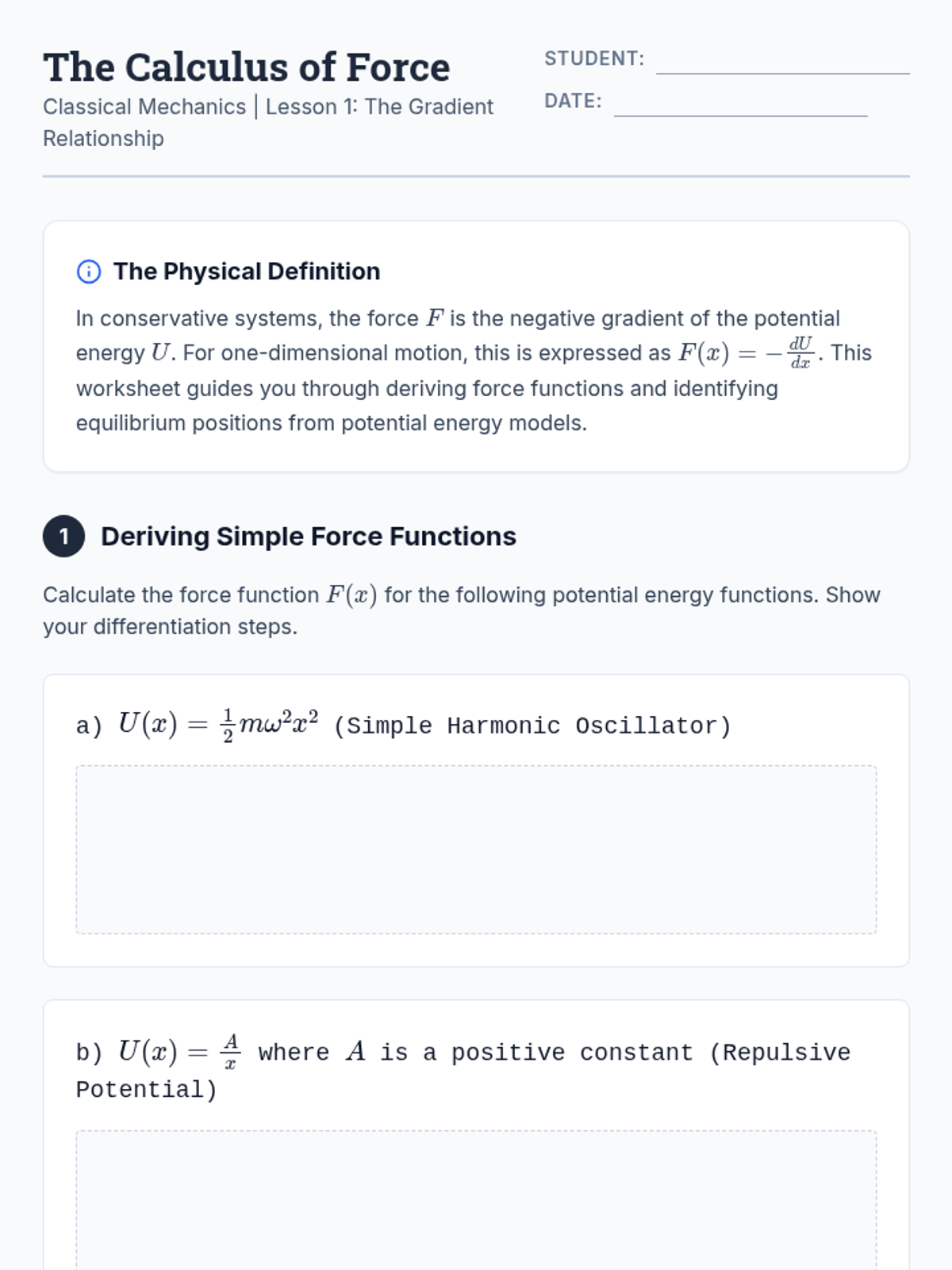 A calculus-based physics sequence for undergraduates focusing on the relationship between potential energy functions and physical forces, stability analysis, and mathematical modeling of physical systems from the atomic to the macroscopic scale.