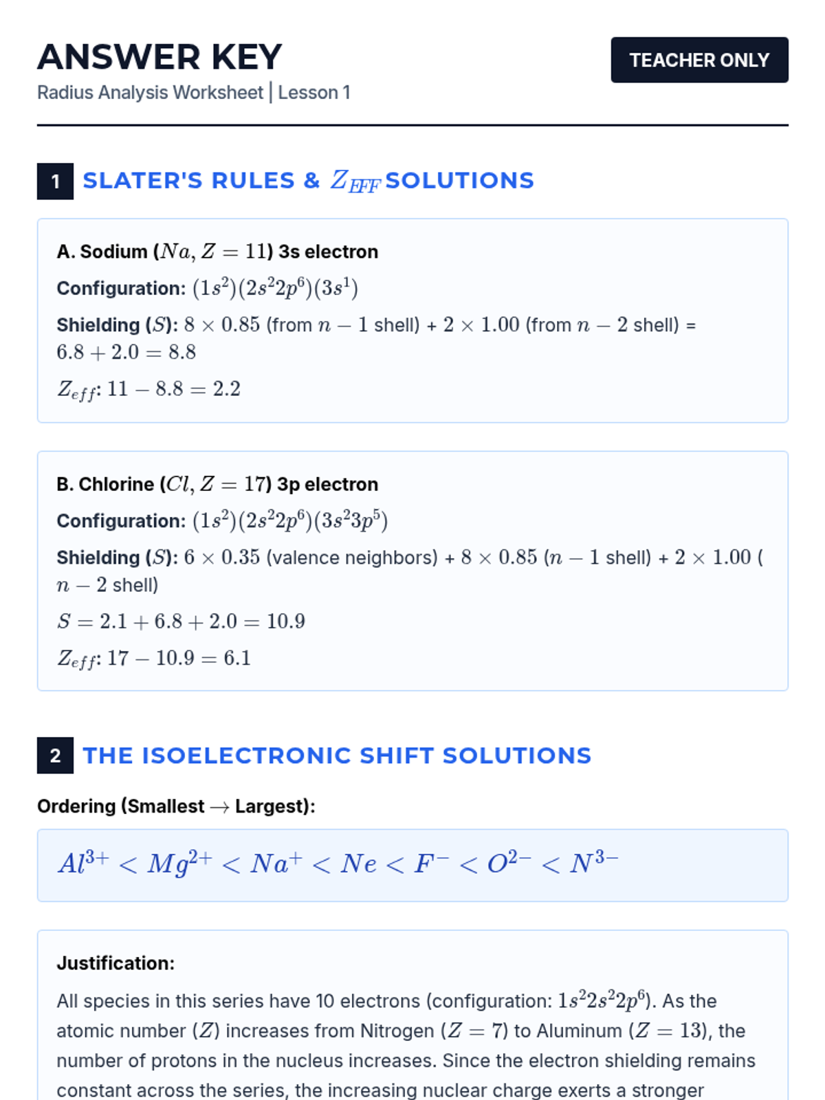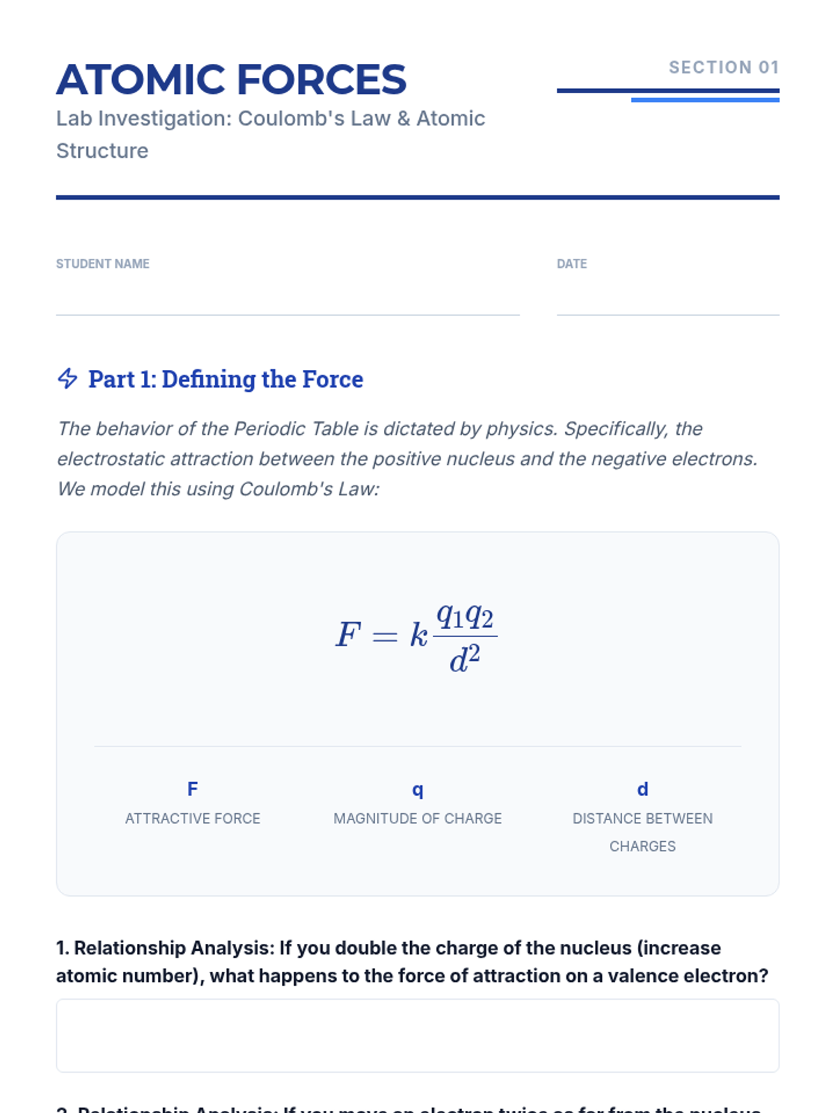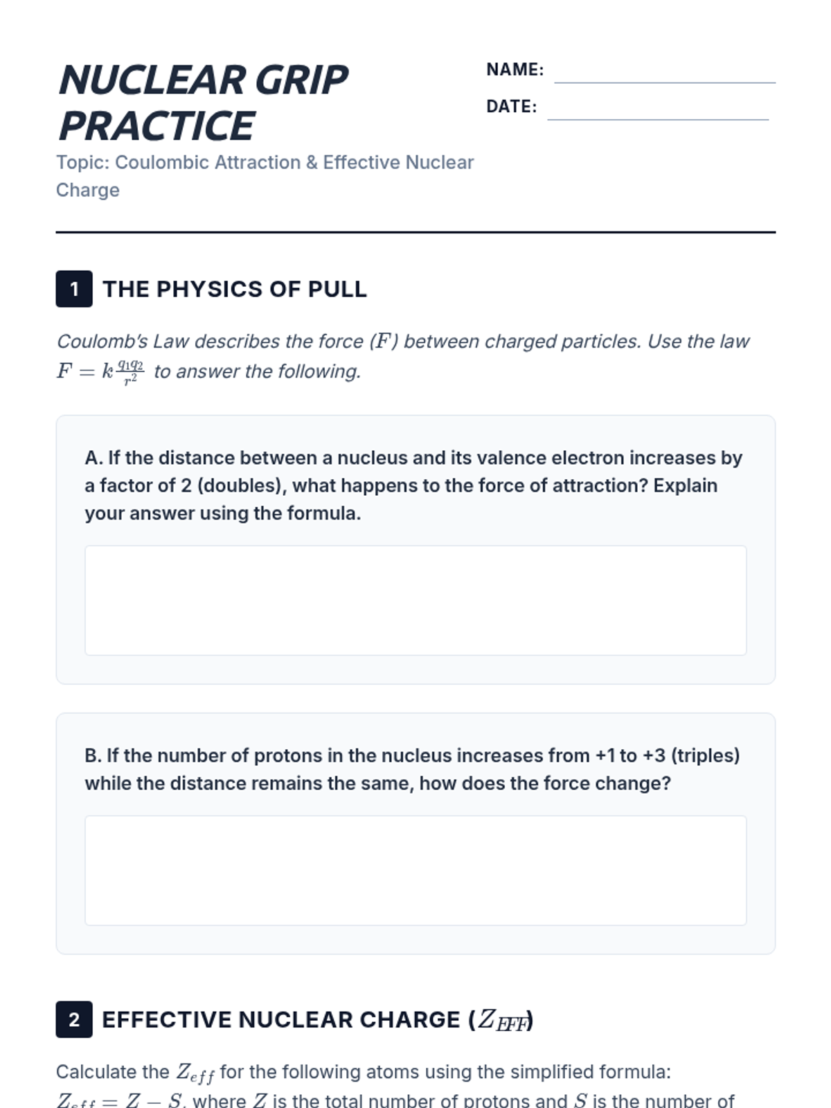This 12th-grade physics sequence explores how Coulomb's Law and electrostatic forces govern periodic trends. Students analyze Effective Nuclear Charge (Zeff), atomic radii, ionization energies, and electronegativity to understand the underlying physical principles of chemical behavior.