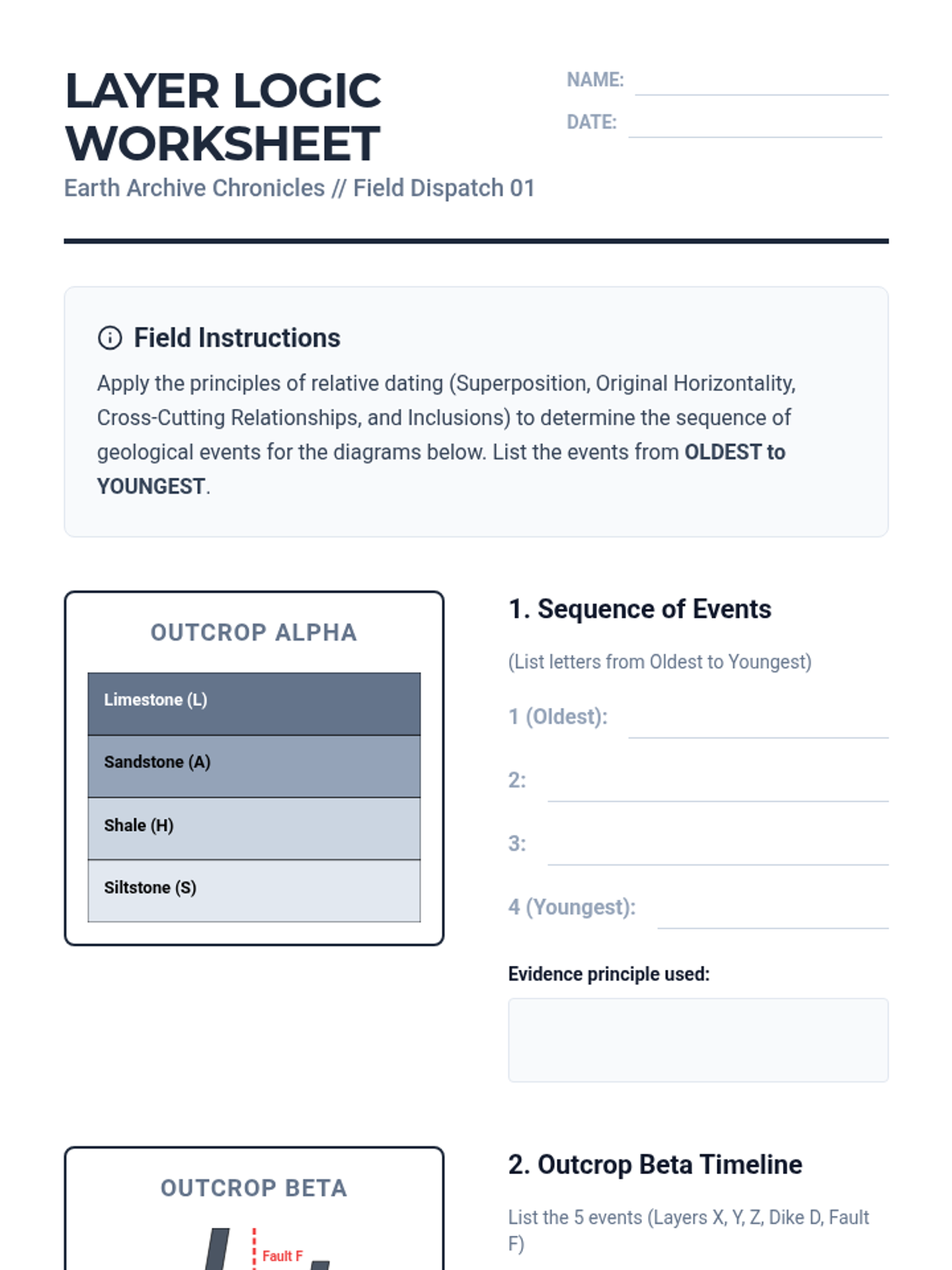 A quantitative sequence for 11th-grade students focusing on the rigorous methods of geochronology. Students progress from qualitative relative dating principles to complex radiometric calculations, culminating in a multi-data stratigraphic correlation simulation.