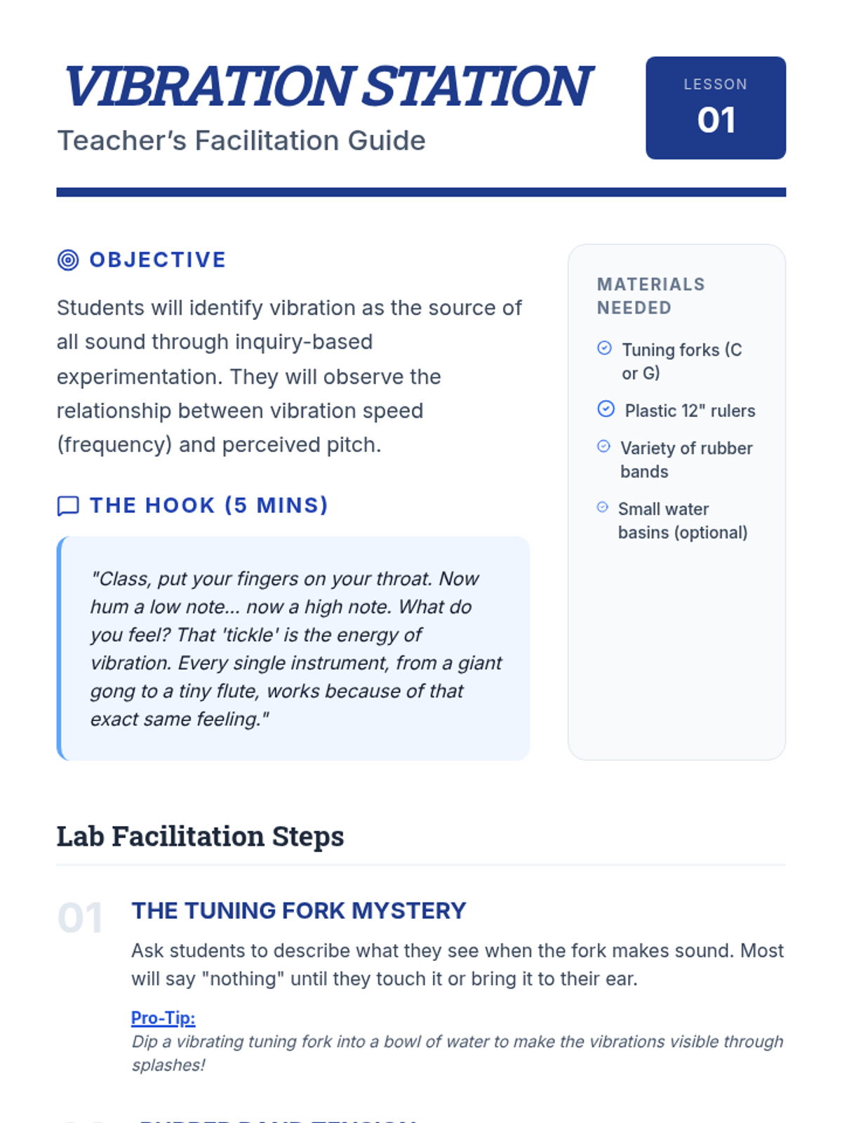 A scientific exploration of how instruments produce sound, categorized by vibration mechanics and physical properties. Students investigate the four main instrument families through the lens of acoustics and physics.